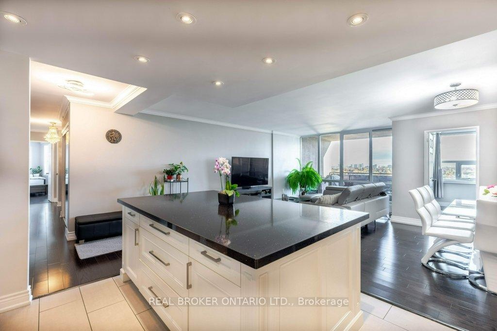 Welcome to Suite 1612 at 716 The West Mall, a beautifully updated unit condo in Etobicoke that combines luxury, comfort, and effortless living. Offering a spacious and well-designed open floor plan, this three-bedroom and den with window, two full bath residence delivers a rare sense of space and sophistication, enhanced by sweeping views of green spaces that create a penthouse-like feeling of exclusivity and tranquility. Inside, modern finishes flow throughout the home, including contemporary flooring, a well-maintained kitchen with ample storage. The primary bedroom is a standout retreat featuring a luxurious modern ensuite with walk-in shower and a walk-in closet-a serene space to begin and end your days. With in-suite laundry and abundant storage, this home has been thoughtfully designed for both convenience and style. The spacious living area, filled with natural light, is perfect for hosting guests or winding down in comfort. Step out onto private balcony with downtown view four-season haven. Residents enjoy truly stress-free living, with all-inclusive maintenance fees covering utilities, high-speed internet, and cable TV. The building offers a remarkable array of amenities: indoor and outdoor pools, tennis and basketball courts, a fitness center, sauna, BBQ areas, party rooms, guest suite, children's playground, underground car wash, and meticulously maintained gardens. Perfectly situated just minutes from Pearson Airport, Centennial Park, Sherway Gardens, top-rated schools, public transit, and major highways including 427, 401, and the QEW, this location ensures convenience without compromise.