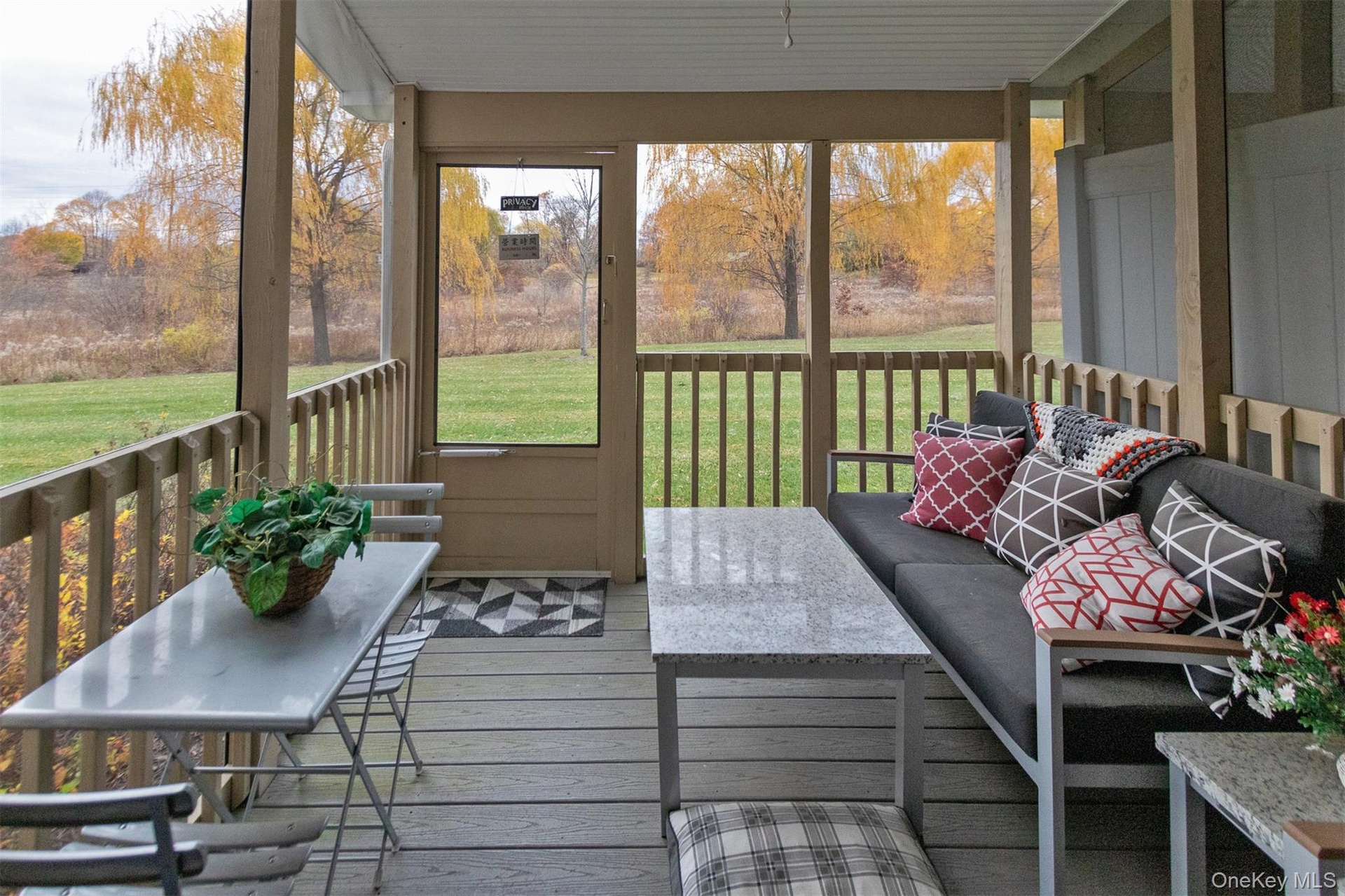 This is a wonderful opportunity to live and enjoy community living at The Gardens at Rhinebeck. Relax outdoors in your charming screened-in porch while overlooking an expansive natural landscape. The exceptionally long driveway provides ample parking for guests, making this home ideal for both everyday living and entertaining.