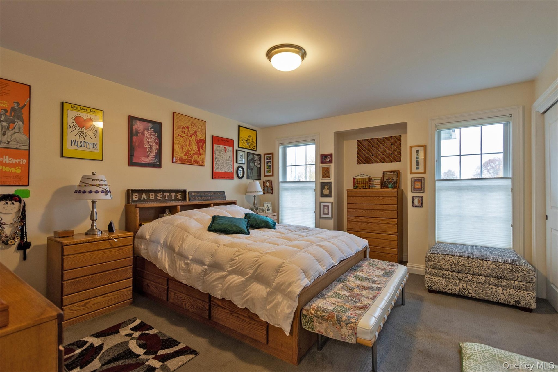 Upstairs, the primary bedroom adjoins an oversized den that can easily function as a guest room. The second-floor bathroom has been fully renovated with a new low-access tub/shower, a new rectangular sink, updated vanity, and safety grab bars. An enormous walk-in closet provides exceptional storage space.