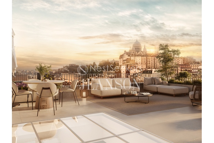The luminous facades are enhanced by fine materials and the presence of terraces, offering residents breathtaking views of the Parisian rooftops and the Sacré-Cœur Basilica.