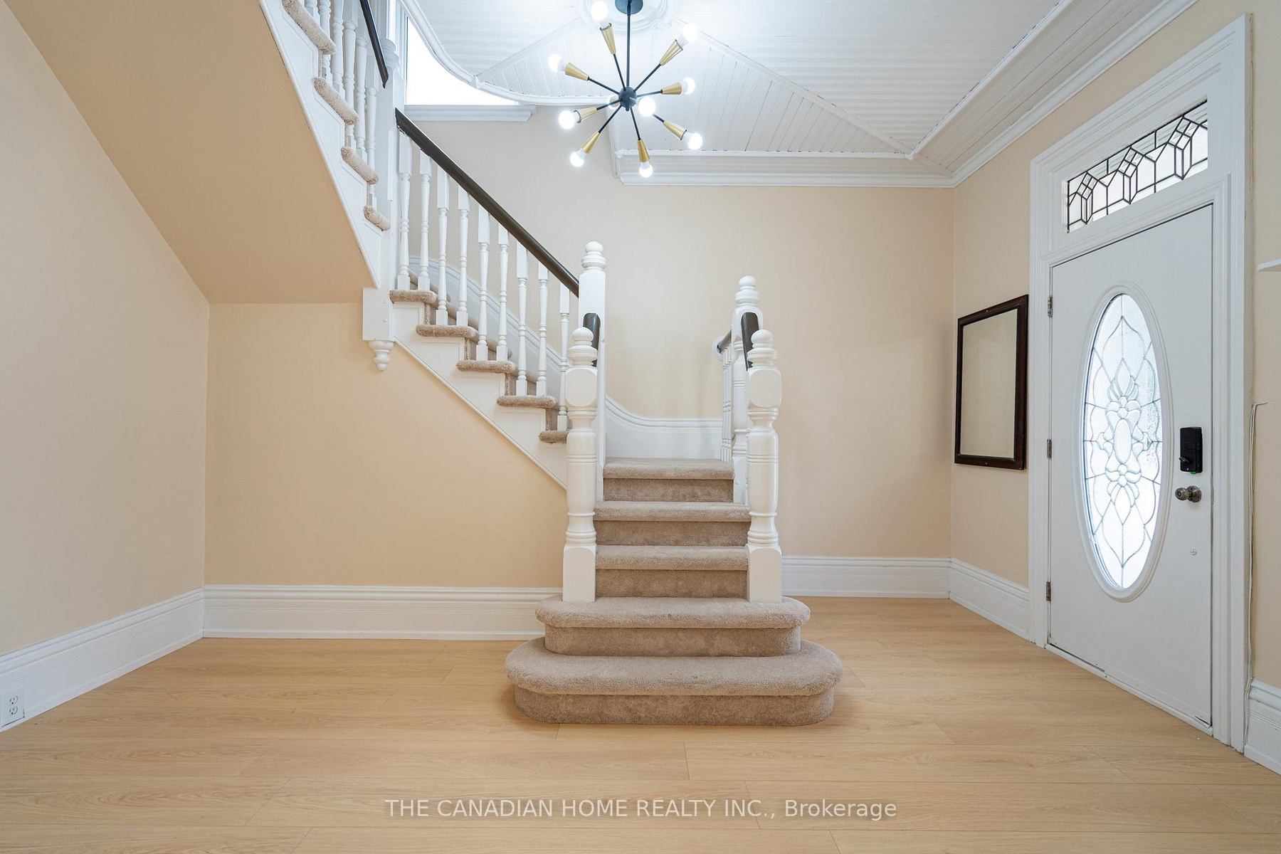 This stunning 2.5-storey century home is a rare gem, brimming with incredible potential to be restored further to its original grandeur and timeless elegance. While it retains its historic charm, the home has been thoughtfully updated with modern conveniences, including brand-new flooring, fresh paint, brand new light fictures, POT lights, energy-efficient windows, updated electrical systems, a high-efficiency furnace (2020) and stylish exterior finishes. The main floor welcomes you with a spacious living room featuring a cozy fireplace, an expansive formal dining/family room perfect for entertaining, a bright eat-in kitchen with updated appliances (stove and fridge), a convenient main-floor laundry, and a 2-piece powder room. Upstairs, the second floor boasts four generously sized bedrooms, including a luxurious primary retreat. The third-floor attic offers even more versatility with a fifth bedroom and an additional office/den spaceideal for a home workspace or guest suite. Nestled in a prime location, this property is just moments from top amenities, public transit, shopping, parks, the casino, and quick access to Highway 403. What makes this opportunity truly exceptional is its potential for future developmentmany neighboring properties on the same road have already been converted to commercial/mixed use, making this an excellent candidate for rezoning or redevelopment. Dont miss your chance to own a piece of history with endless possibilitiesschedule your private viewing today before this one-of-a-kind opportunity slips away!