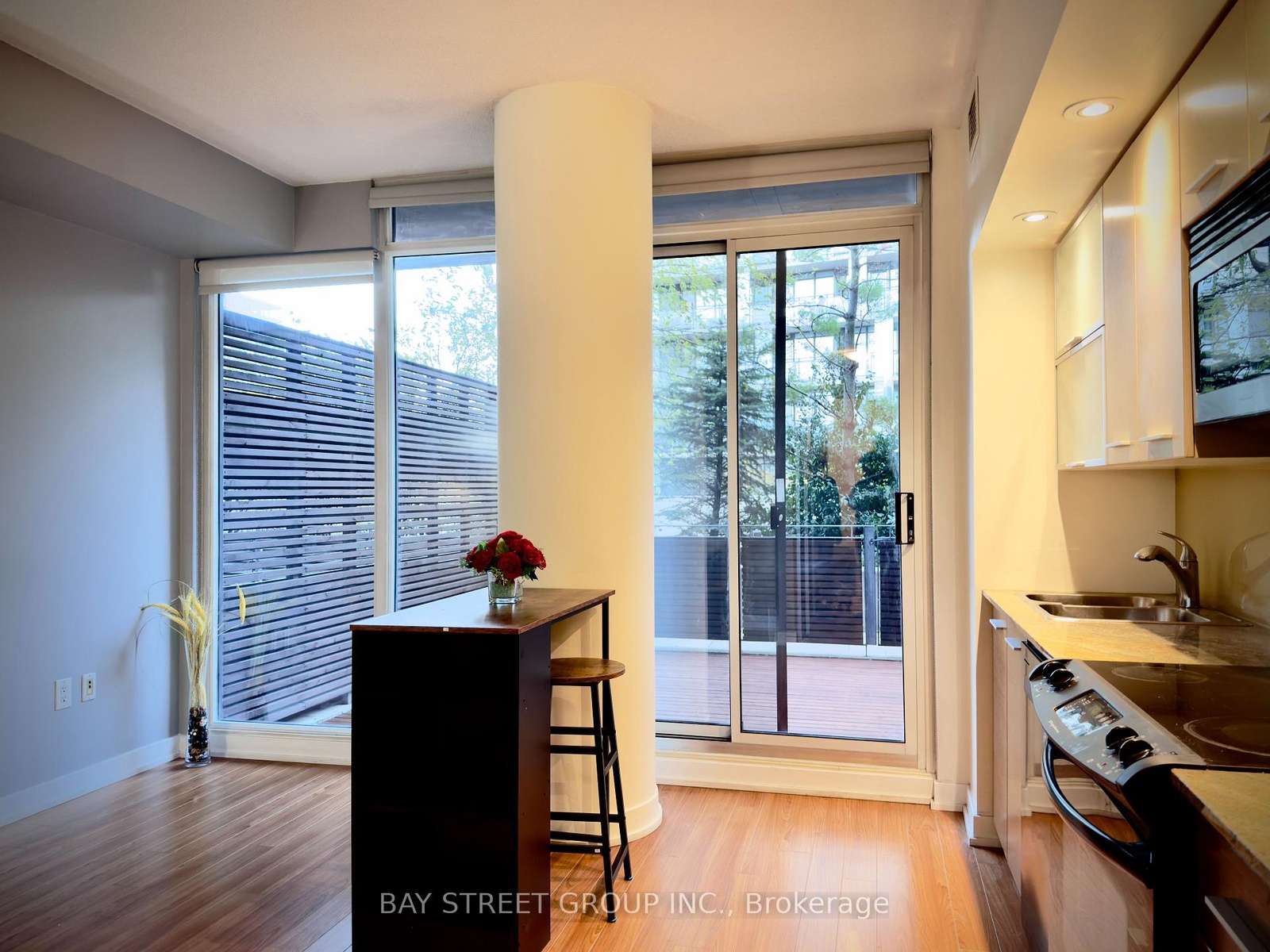 This Stylish One-Bedroom Condo is located in the Heart of Downtown Offering an Urban Lifestyle with Convenient Access to Restaurants, Transit, Shopping and Entertainment. This Unit Features Sliding Bedroom Doors, Stainless Steel Fridge, Full Size Stove, Quartz Kitchen Counter Top, Laminate Flooring & Private 188 Sq. Ft. Terrace. The Bedroom Has Comfort and Tranquility With Generous Closet Space.