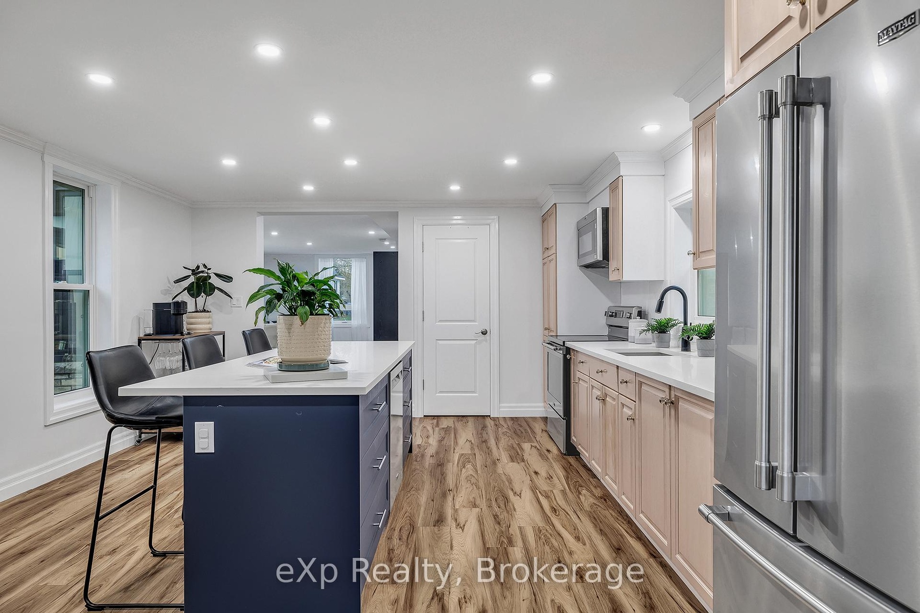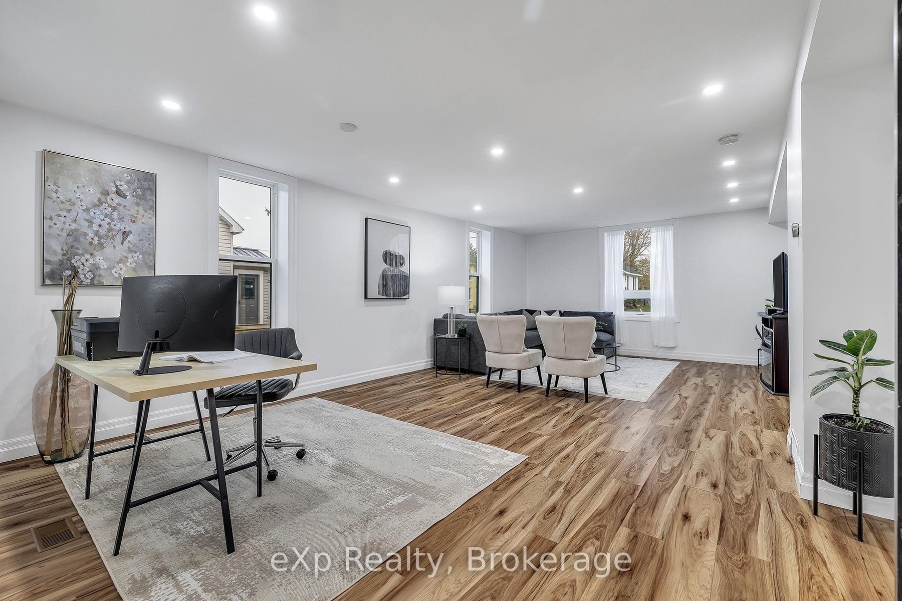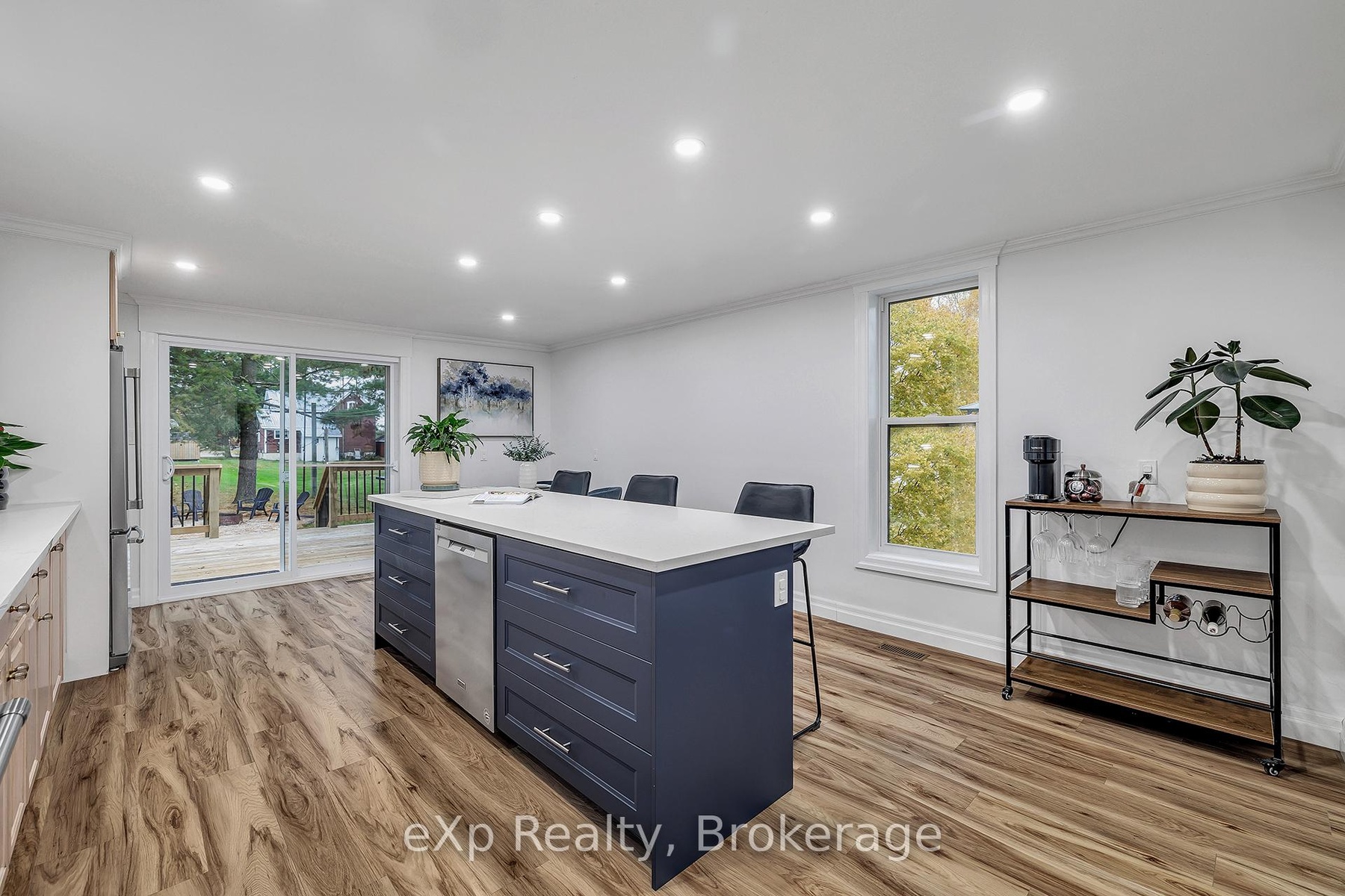 Welcome to this charming and fully renovated brick family home in the heart of Brussels. Fresh, bright, and thoughtfully designed for comfort and everyday living, this home combines modern style with timeless character. COMPLETELY RENOVATED FROM TOP TO BOTTOM, it features all-newelectrical and plumbing systems (2021), updated ductwork with added vents upstairs, and new insulation in key areas, including spray foam around thefoundation and in the attic (2021). The main floor has been completely gutted and rebuilt with new joists, leveled subfloors, and new flooring throughout the kitchen, bathroom (2025), entryway, and living room (2021). The spacious eat-in kitchen showcases brand-new cabinetry, stainless steelappliances, and quality finishes, with a large island that's perfect for cooking and gathering (2021). A new patio door leads to the newly built deck (2025) with apoured foundation around the kitchen addition (2021), ideal for entertaining, summer BBQs, or relaxed evenings outdoors. Also on the main level, you'llfind a convenient bathroom with laundry, a versatile family room or formal dining area, and a cozy living room filled with natural light and plentyof pot lights to keep things bright and welcoming. Following the renovated stairs (2025), you'll be met with two comfortable bedrooms and an updated bathroom (2021) (with plumbing readyfor a future shower if desired), plus additional storage to suit a growing family's needs. Step outside to a large private backyard featuring a shedand firepit area-a perfect retreat for relaxation and play. The home's exterior has been refreshed with all the windows being replaced (2021), a new black frontdoor and awning, and repointed brickwork completed in (2023), giving it stylish curb appeal that complements its modern interior. Located in afriendly small-town community close to schools, parks, and amenities, this move-in-ready home offers a perfect blend of character, function, and value.