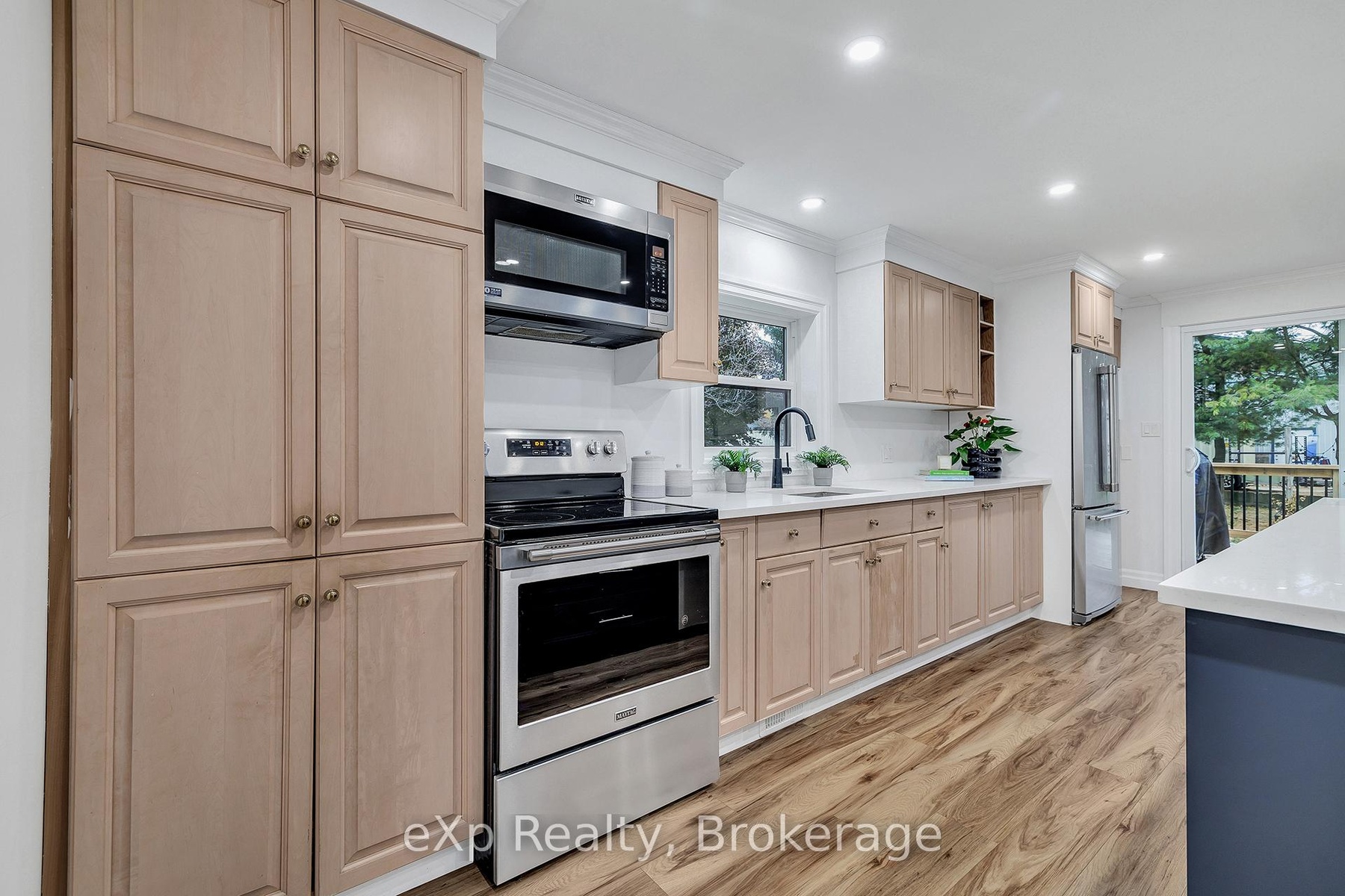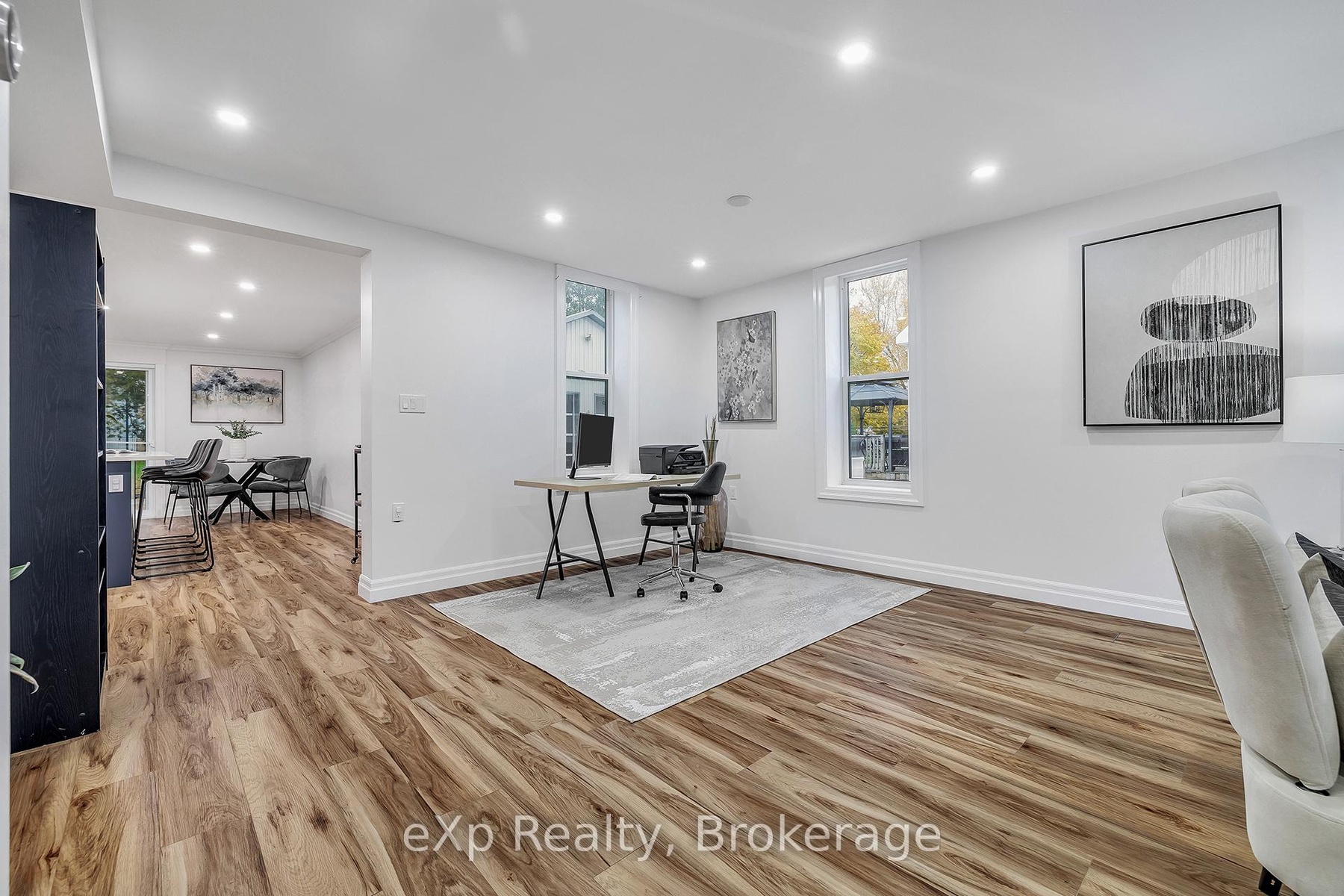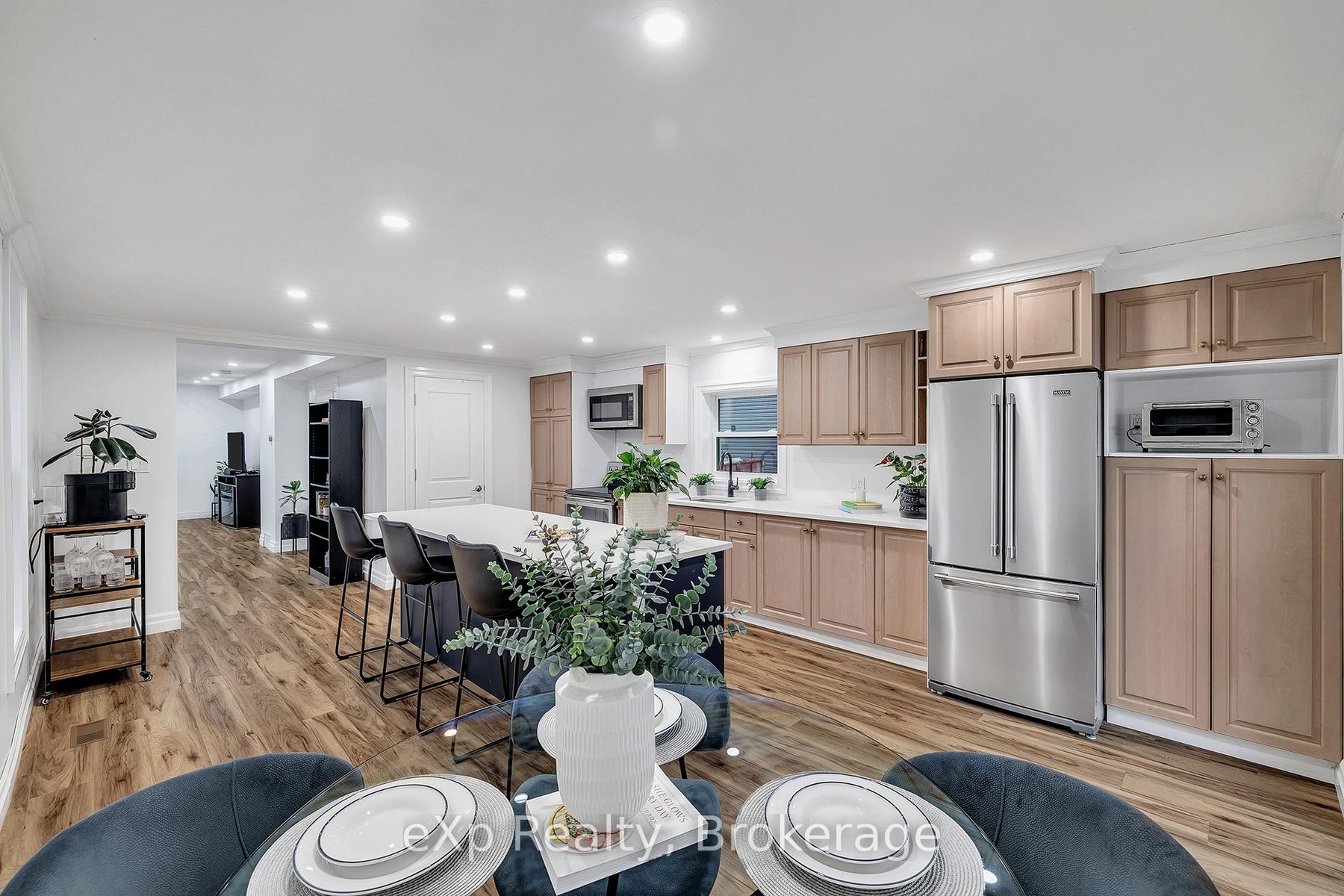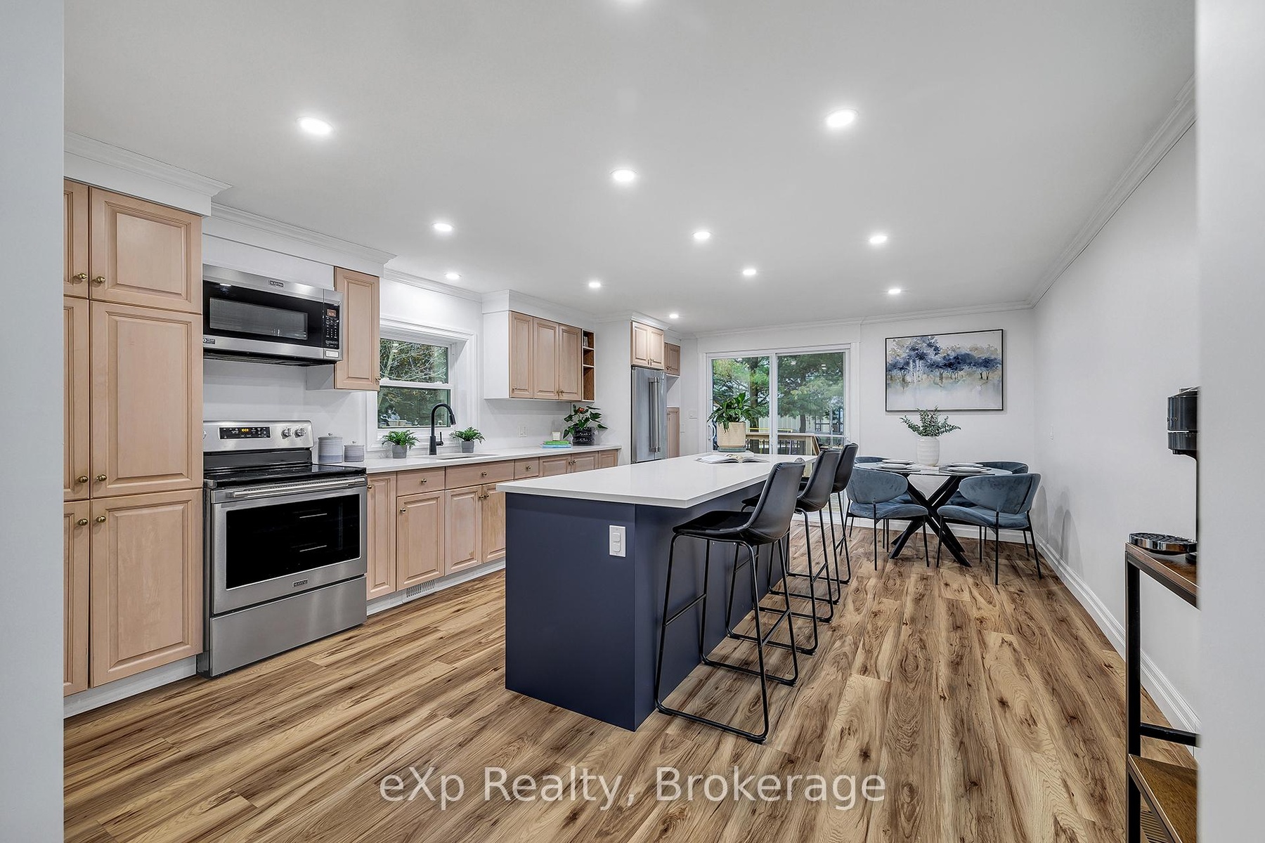 Welcome to this charming and fully renovated brick family home in the heart of Brussels. Fresh, bright, and thoughtfully designed for comfort and everyday living, this home combines modern style with timeless character. COMPLETELY RENOVATED FROM TOP TO BOTTOM, it features all-newelectrical and plumbing systems (2021), updated ductwork with added vents upstairs, and new insulation in key areas, including spray foam around thefoundation and in the attic (2021). The main floor has been completely gutted and rebuilt with new joists, leveled subfloors, and new flooring throughout the kitchen, bathroom (2025), entryway, and living room (2021). The spacious eat-in kitchen showcases brand-new cabinetry, stainless steelappliances, and quality finishes, with a large island that's perfect for cooking and gathering (2021). A new patio door leads to the newly built deck (2025) with apoured foundation around the kitchen addition (2021), ideal for entertaining, summer BBQs, or relaxed evenings outdoors. Also on the main level, you'llfind a convenient bathroom with laundry, a versatile family room or formal dining area, and a cozy living room filled with natural light and plentyof pot lights to keep things bright and welcoming. Following the renovated stairs (2025), you'll be met with two comfortable bedrooms and an updated bathroom (2021) (with plumbing readyfor a future shower if desired), plus additional storage to suit a growing family's needs. Step outside to a large private backyard featuring a shedand firepit area-a perfect retreat for relaxation and play. The home's exterior has been refreshed with all the windows being replaced (2021), a new black frontdoor and awning, and repointed brickwork completed in (2023), giving it stylish curb appeal that complements its modern interior. Located in afriendly small-town community close to schools, parks, and amenities, this move-in-ready home offers a perfect blend of character, function, and value.