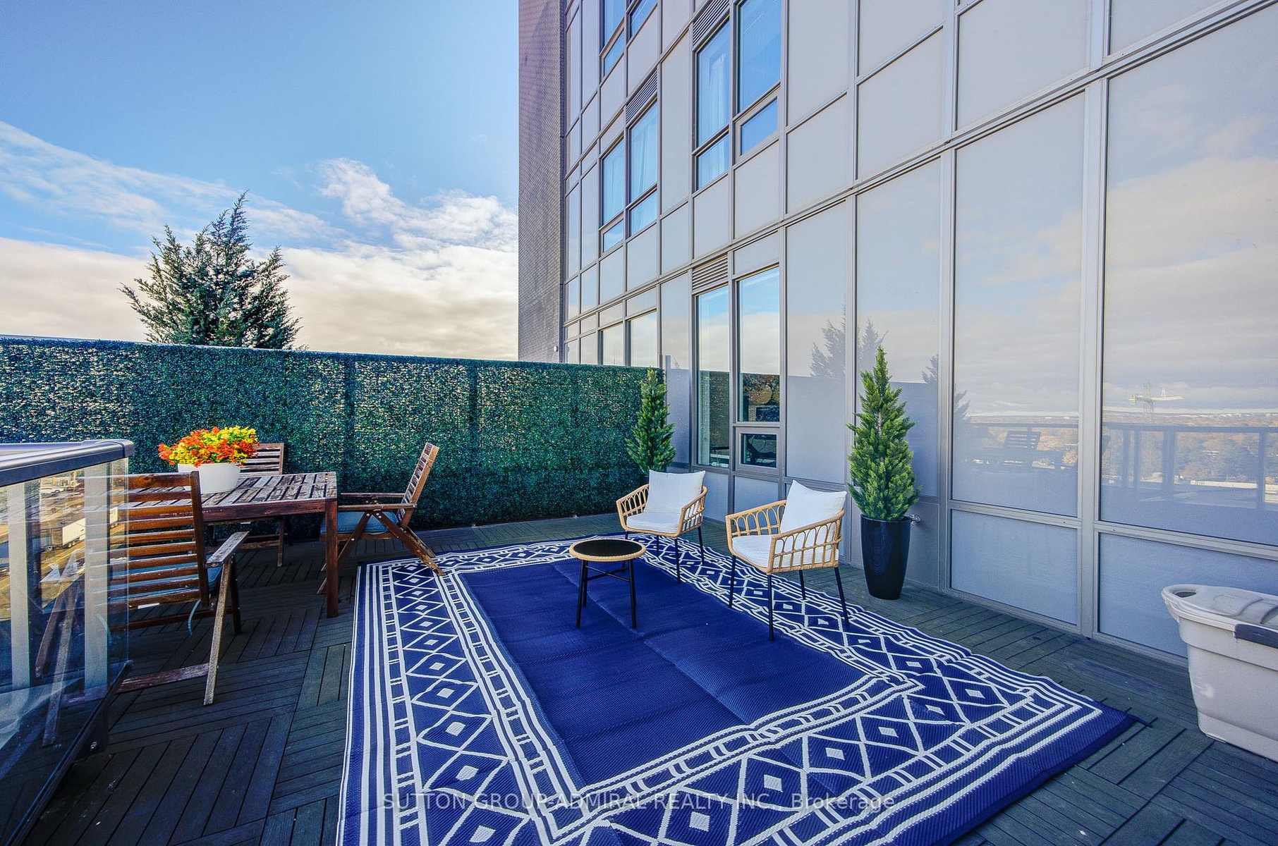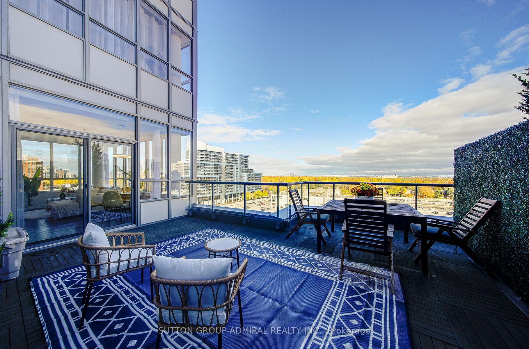 One-of-a-Kind Corner Suite in the Heart of Bayview Village!This rare 2 Bed, 2 Bath corner unit offers 1543 sg.ft. of total stylish living space including an expansive 400+ sqft private rooftop terrace - a true luxury in the city.The bright and modern layout features 9-ft ceilings, floor-to-ceiling windows, and two filling the home with natural light and unobstructed views.The open-concept living, dining, and kitchen area is perfect for both daily living and entertaining.Over $50,000 in recent upgrades include marble countertops, stainless steel built-in appliances, marble backsplash, and a functional centre island. Both bedrooms offer large closets with custom organizers,and the primary bedroom includes a spa-like ensuite with glass Shower. Wood flooring through-out with designer lighting fixtures.1 parking space (convenient location in P1 close to exit and elevator) and 1 locker included.Don't miss this rare chance to own a truly unique urban retreat with unmatched indoor-outdoor living!Prime location directly across from Bayview Subway Station, Bayview Village Mall, grocery stores, and a wide variety of dining options. Just minutes to HWY 401 and 404. The building features 24-hour concierge service, a fitness center, party room, guest suites, and more.