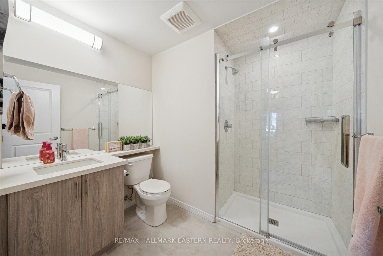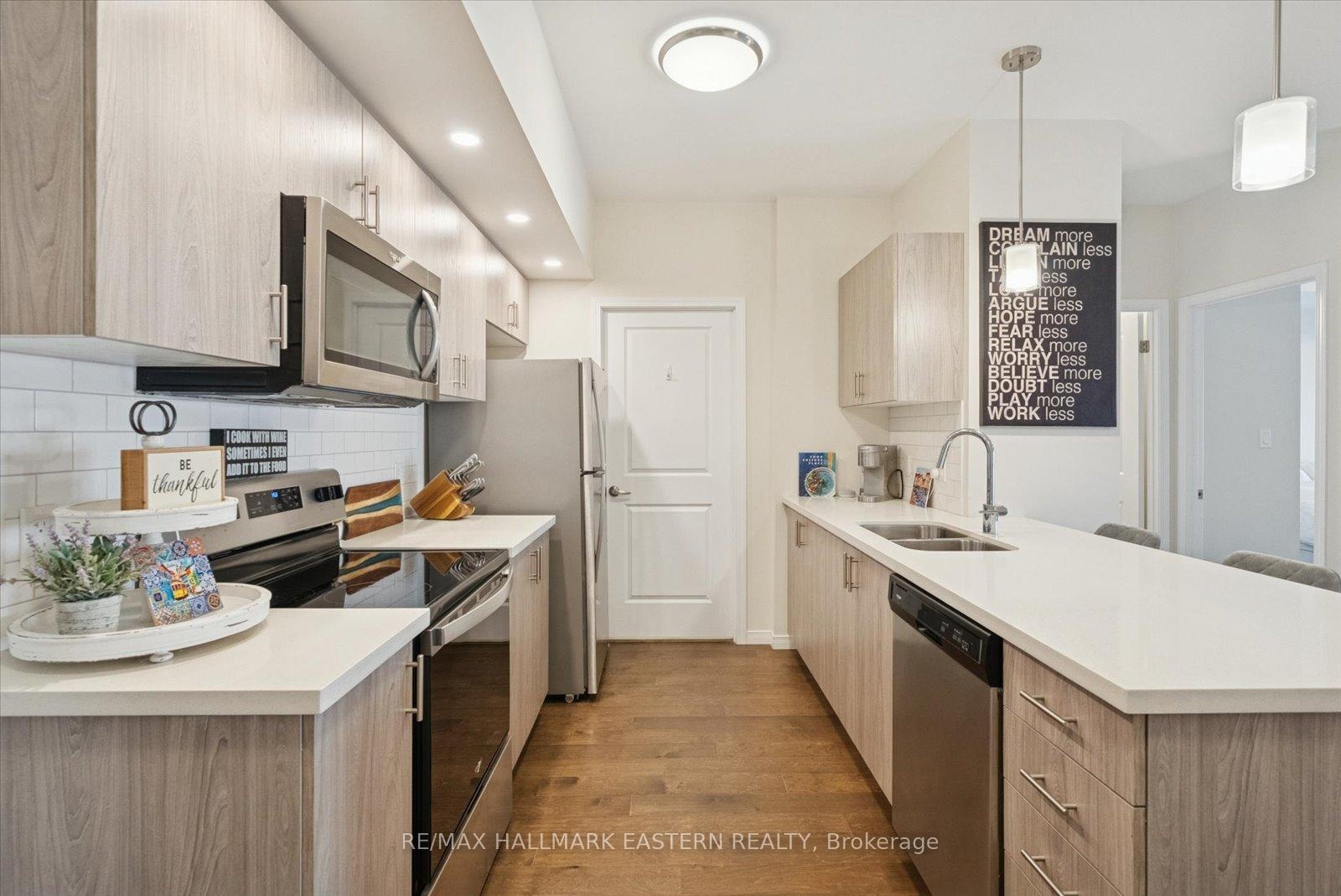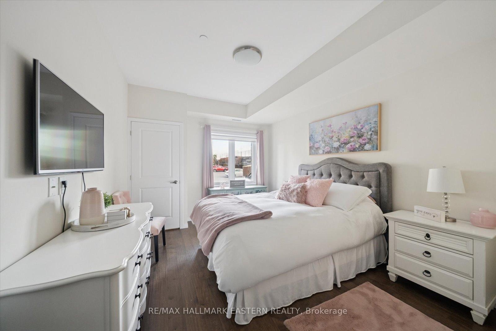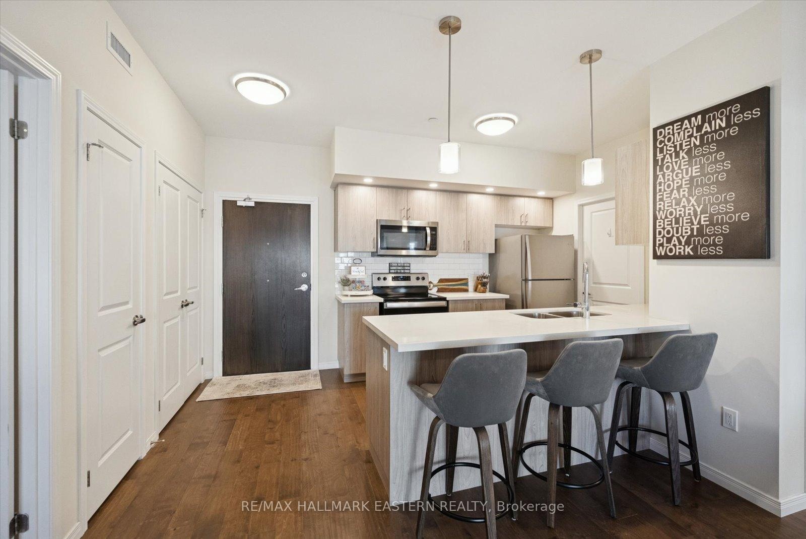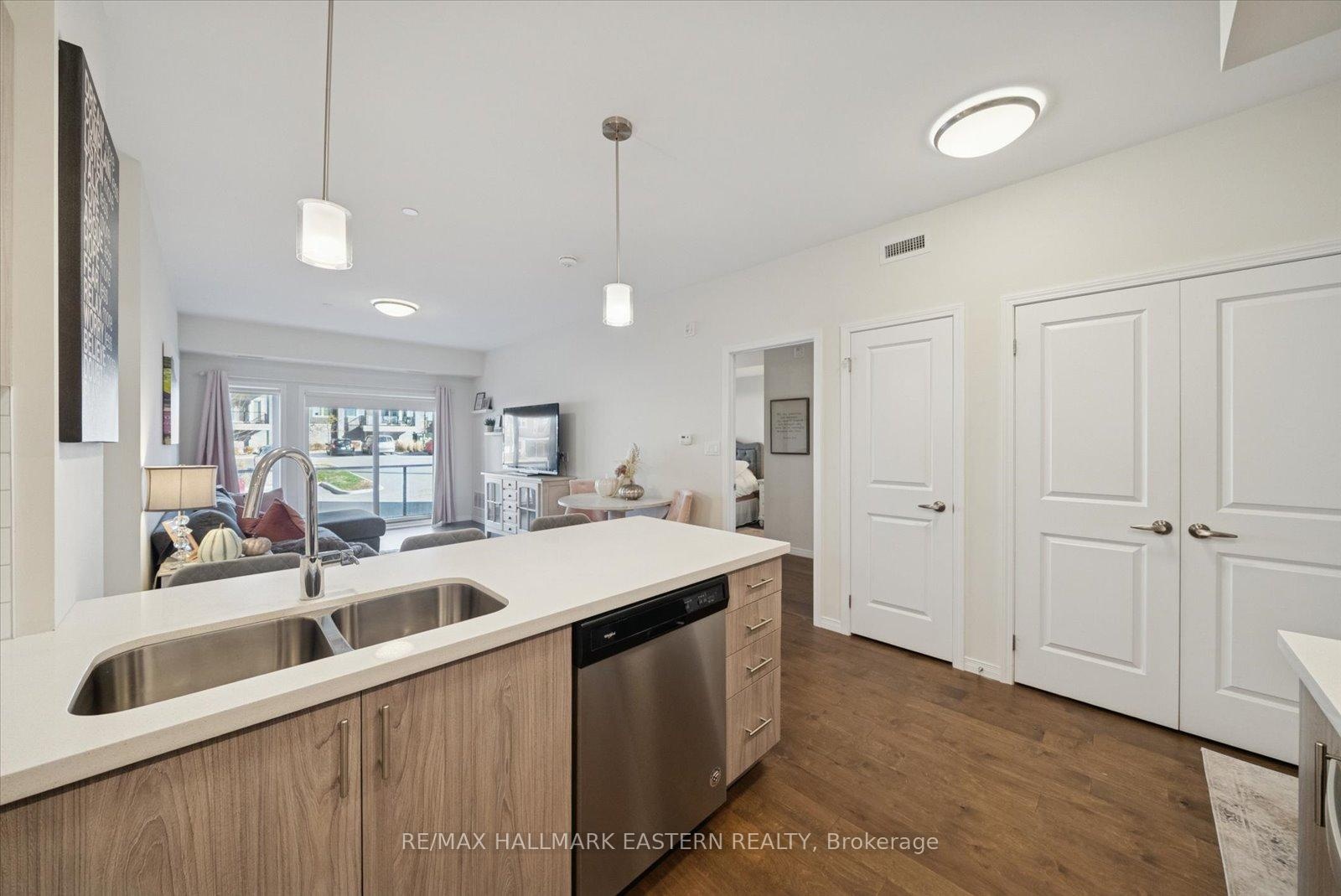 **Watch The Reel - Press Play & Fall in Love!!** This Condo Has It All - Peterborough's Premier West-End Community! Located in the prestigious Jackson Creek Meadows neighbourhood on the edge of the city, this modern condominium offers the perfect blend of convenience and style. Situated on the first level, this 2-bedroom, 2-bathroom unit comes with 1 parking space and visitor parking. Inside, you'll find an open-concept layout designed for comfort and entertaining. The kitchen features quartz countertops, modern lighting, pot lights throughout, an island with seating, and a pantry for extra storage. The living room walks out to an oversized balcony. The primary bedroom includes a walk-in closet and a private ensuite with a glass shower. A separate laundry room adds practicality and convenience. Additional highlights include: gas furnace, central air, Bell Fibe internet, and so much more! Don't miss this move-in-ready condo in one of Peterborough's most sought-after locations! Come take a look and make this beautiful space yours today.