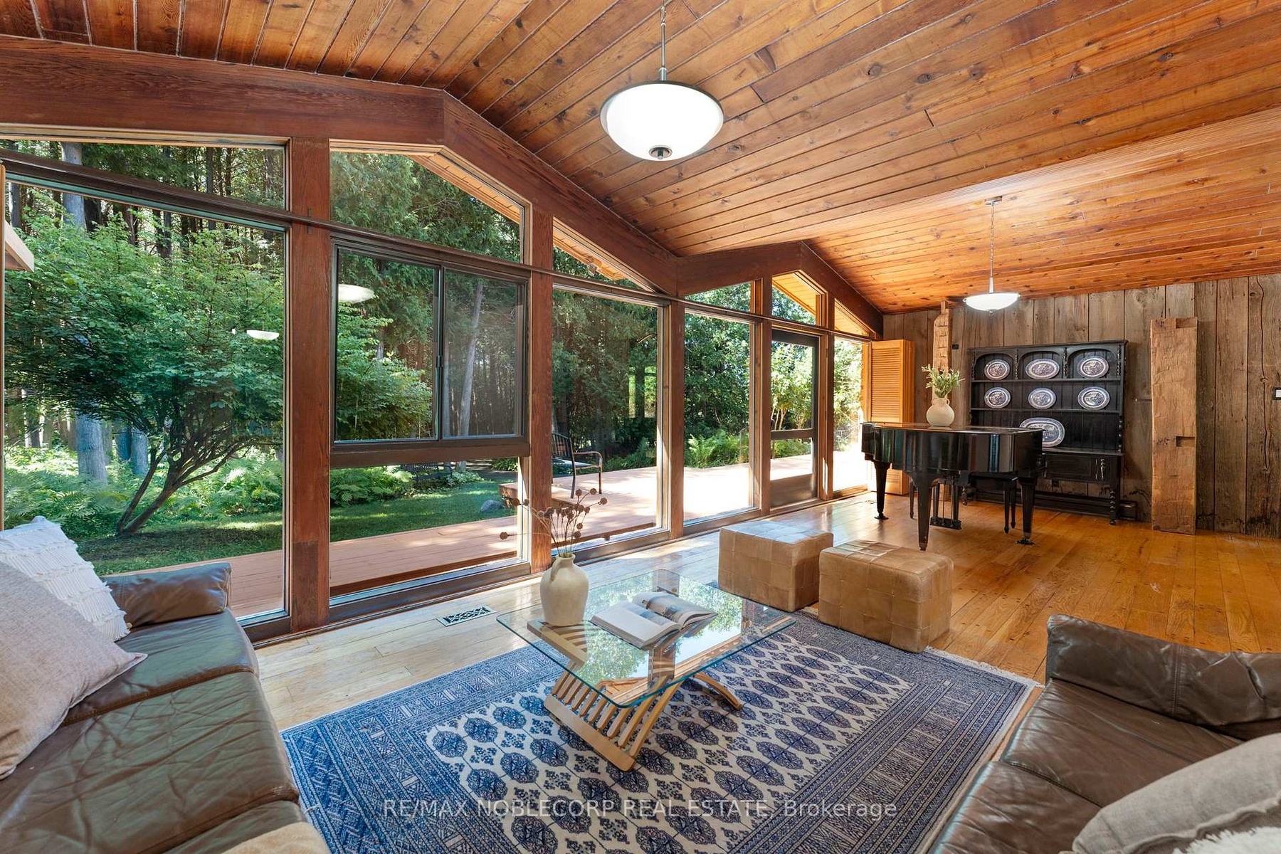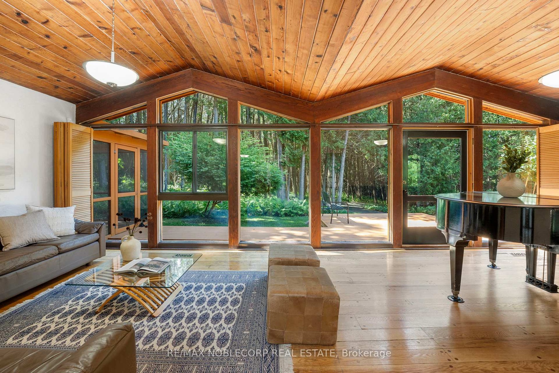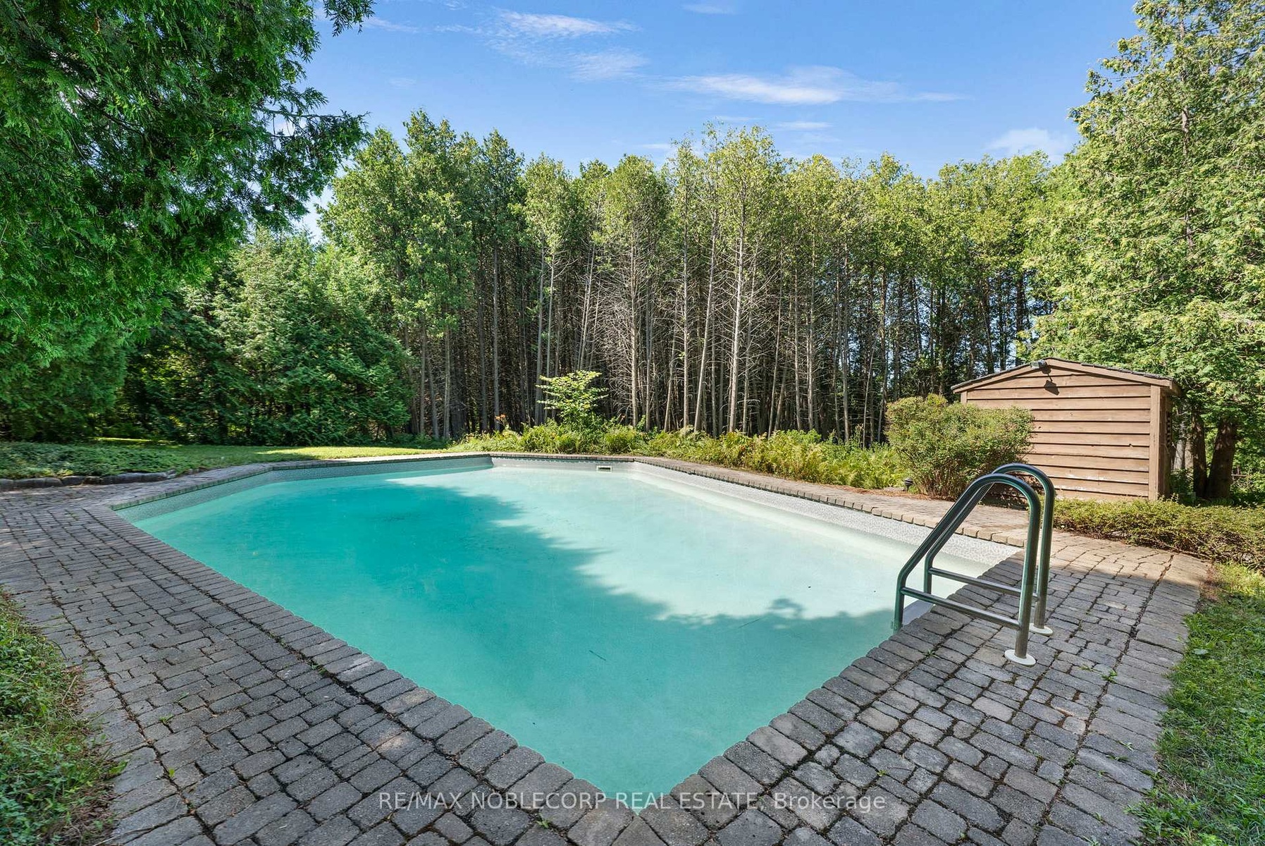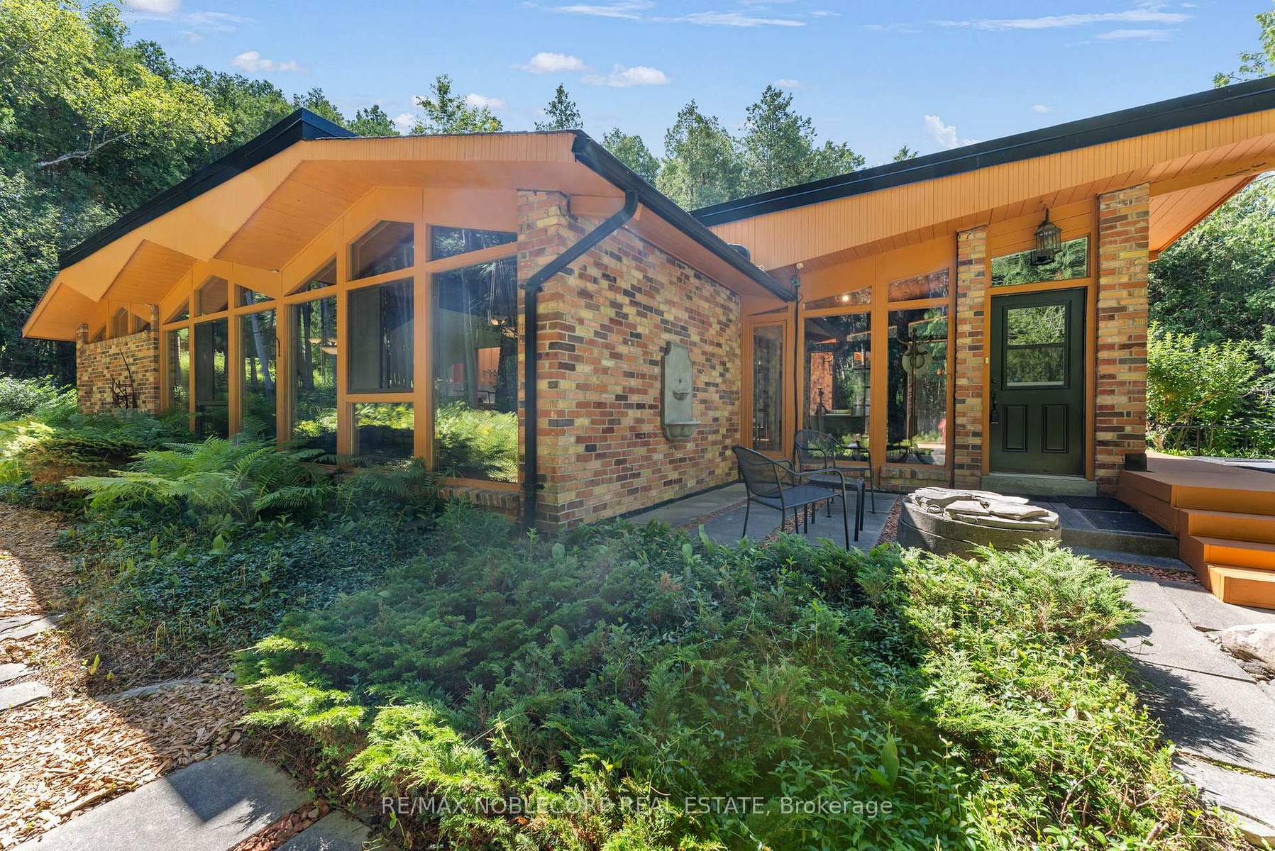3435 Greenwood Rd - Sold As Is Set on a private 2.01 acre lot in the peaceful village of Greenwood lies this unique opportunity in the market. This custom designed mid-century home blends timeless architectural design with natural beauty. Offering 2,505 sq.ft of finished living space, the home features floor to ceiling windows, solid cedar ceilings, a sunken living area with a gas fireplace and historic pegged hardwood floors from Casa Loma. The main level includes 3 bedrooms, with a private fourth bedroom on the lower level - ideal for guests or in-laws. Outdoor living shines with extensive decking, a screened gazebo, a large patio, a 30' x 40' pool with screen gazebo and mature natural forest landscape. Additional highlights include a circular double driveway (repaved in 2023), attached and detached garages/workshop with hydro, newer roof on house (2015 flat / 2023 angled), updated mechanicals, and a second well for unlimited water. Steps to Greenwood Conservation area, Valley View P.S, and minutes to HWY 407/401 and local amenities, this rare property offers unmatched privacy with lots of potential in one of Pickering's most desirable natural settings.