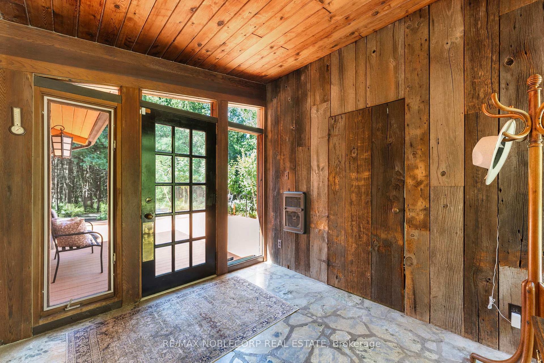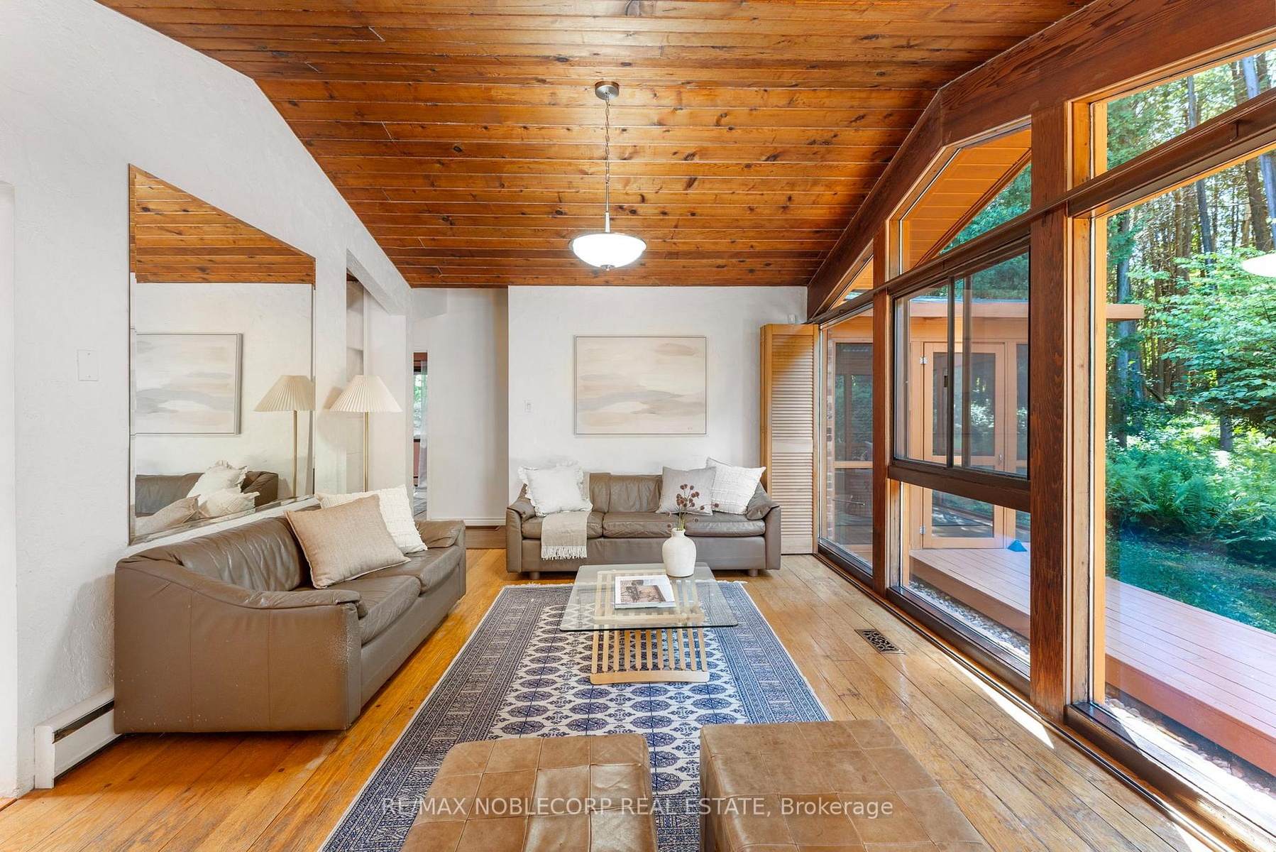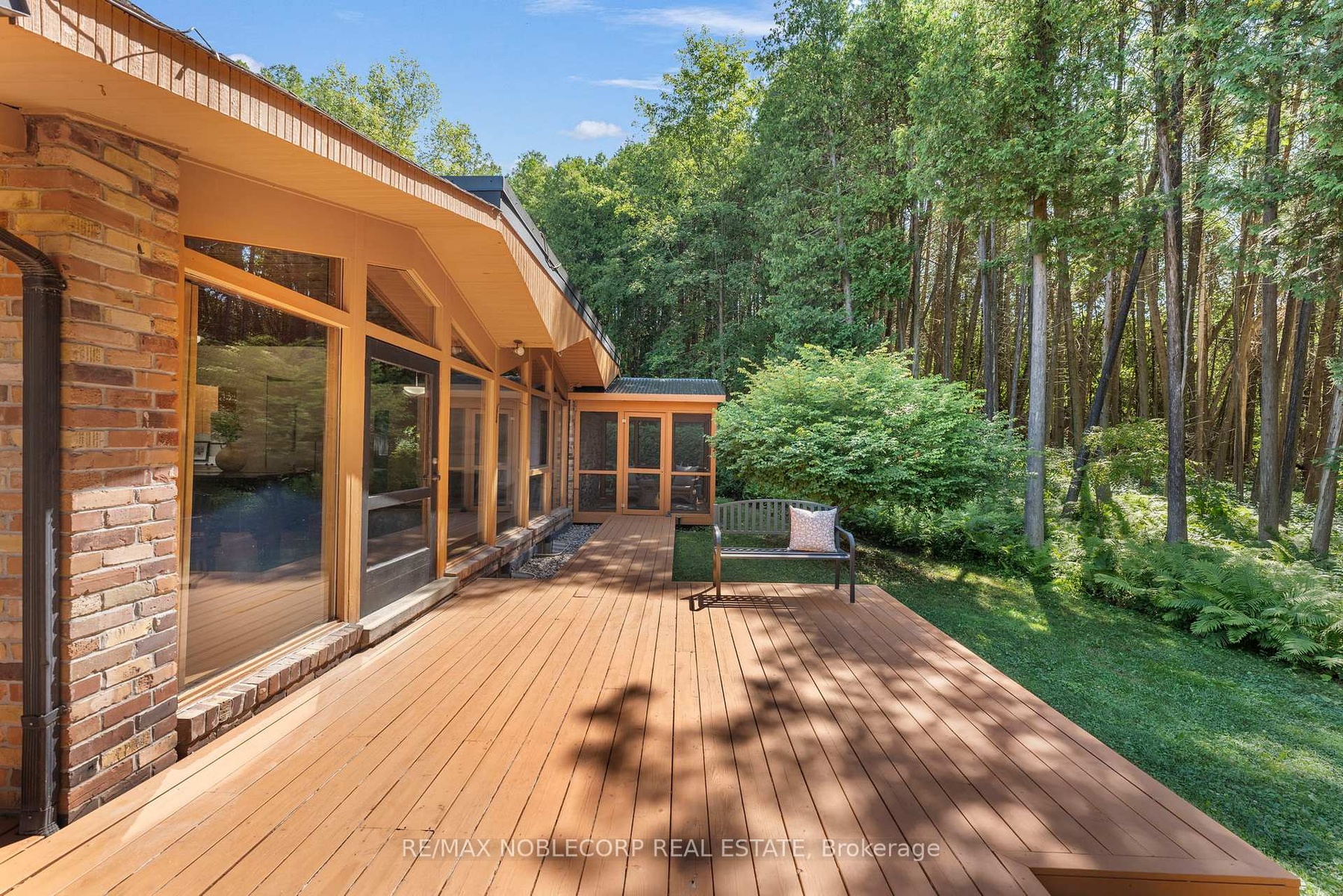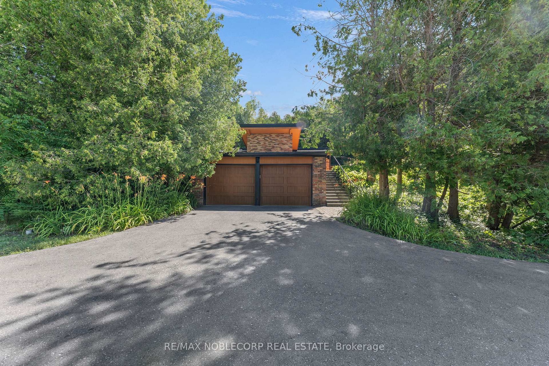 3435 Greenwood Rd - Sold As Is Set on a private 2.01 acre lot in the peaceful village of Greenwood lies this unique opportunity in the market. This custom designed mid-century home blends timeless architectural design with natural beauty. Offering 2,505 sq.ft of finished living space, the home features floor to ceiling windows, solid cedar ceilings, a sunken living area with a gas fireplace and historic pegged hardwood floors from Casa Loma. The main level includes 3 bedrooms, with a private fourth bedroom on the lower level - ideal for guests or in-laws. Outdoor living shines with extensive decking, a screened gazebo, a large patio, a 30' x 40' pool with screen gazebo and mature natural forest landscape. Additional highlights include a circular double driveway (repaved in 2023), attached and detached garages/workshop with hydro, newer roof on house (2015 flat / 2023 angled), updated mechanicals, and a second well for unlimited water. Steps to Greenwood Conservation area, Valley View P.S, and minutes to HWY 407/401 and local amenities, this rare property offers unmatched privacy with lots of potential in one of Pickering's most desirable natural settings.