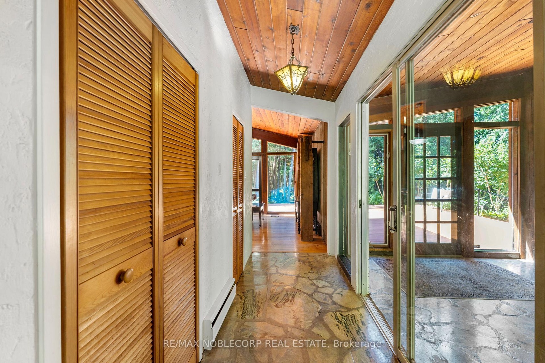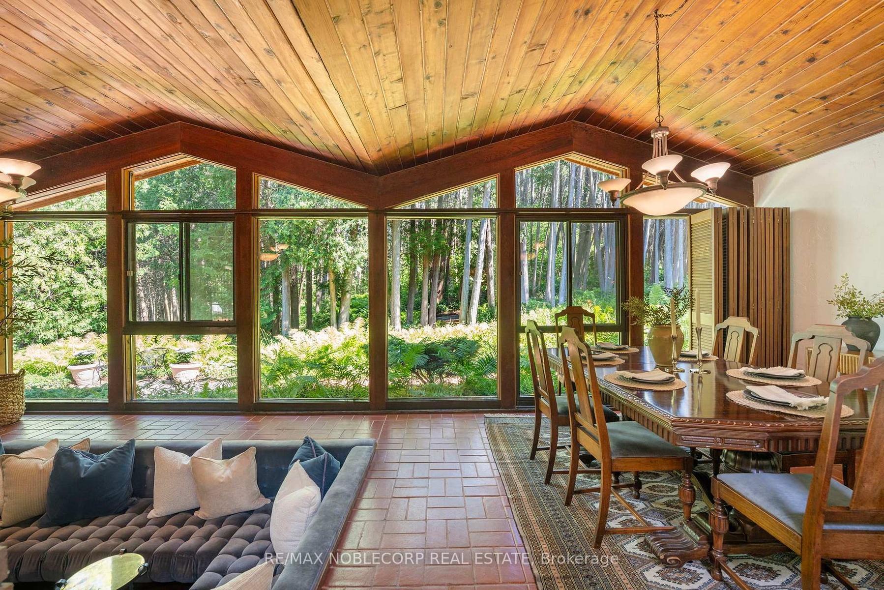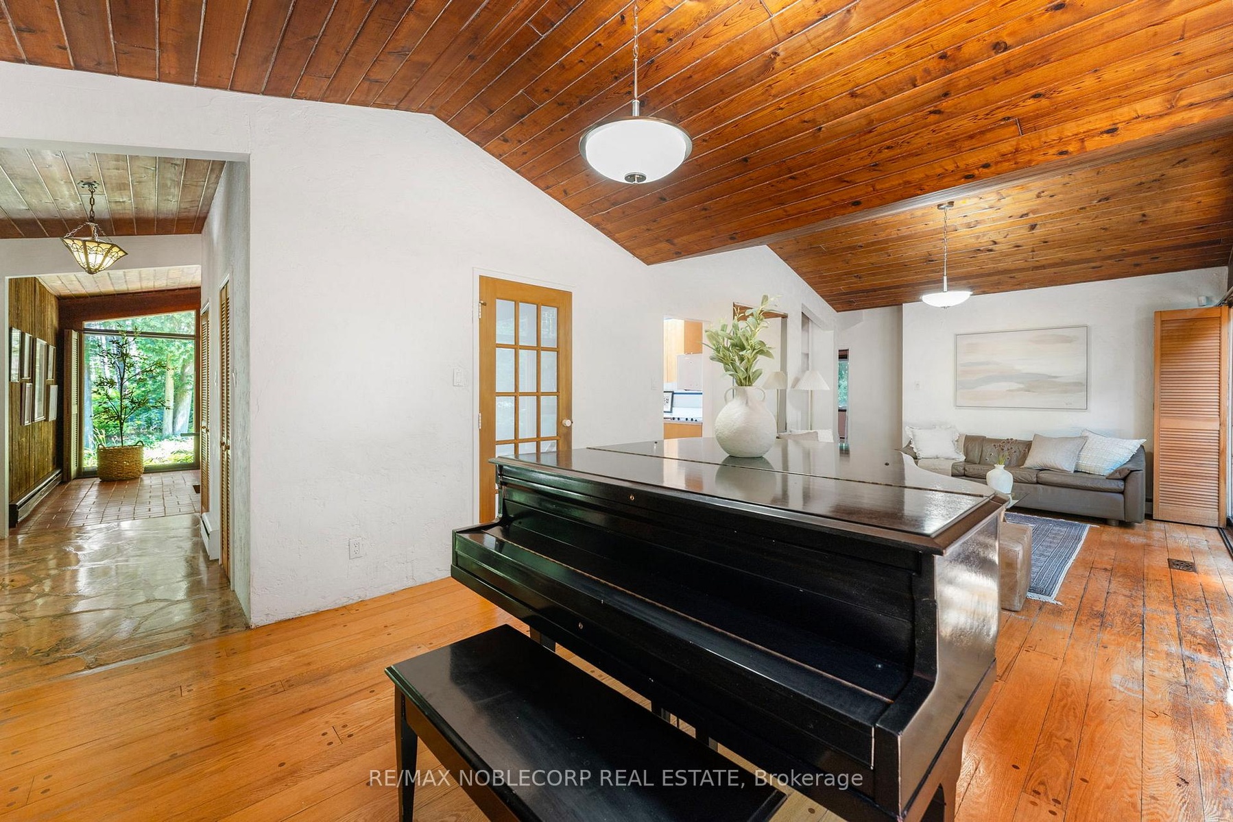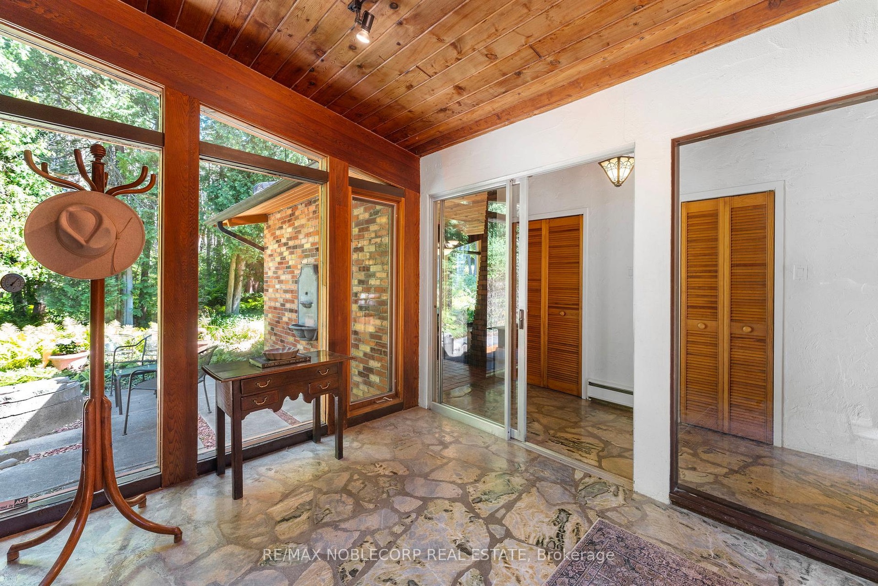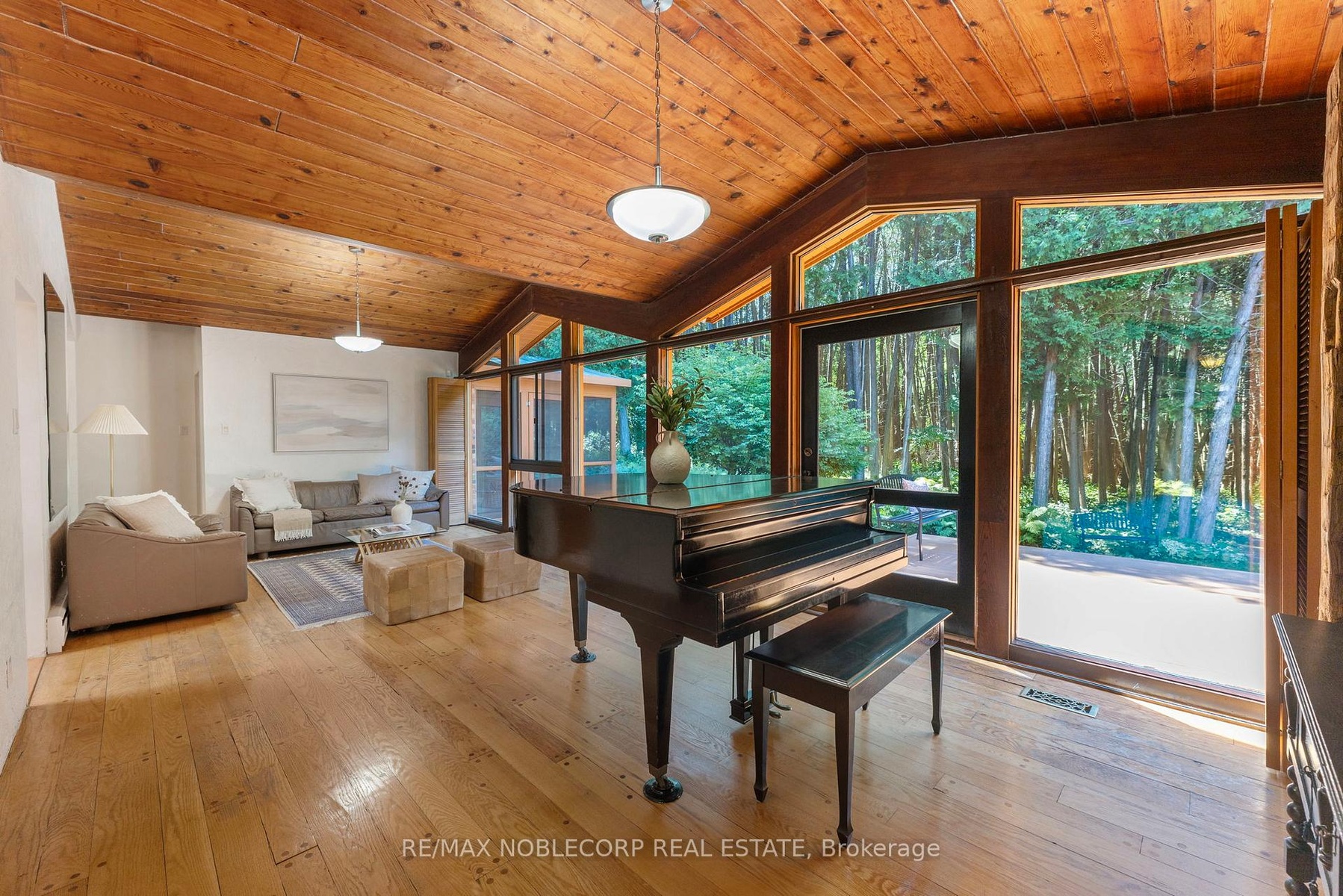 3435 Greenwood Rd - Sold As Is Set on a private 2.01 acre lot in the peaceful village of Greenwood lies this unique opportunity in the market. This custom designed mid-century home blends timeless architectural design with natural beauty. Offering 2,505 sq.ft of finished living space, the home features floor to ceiling windows, solid cedar ceilings, a sunken living area with a gas fireplace and historic pegged hardwood floors from Casa Loma. The main level includes 3 bedrooms, with a private fourth bedroom on the lower level - ideal for guests or in-laws. Outdoor living shines with extensive decking, a screened gazebo, a large patio, a 30' x 40' pool with screen gazebo and mature natural forest landscape. Additional highlights include a circular double driveway (repaved in 2023), attached and detached garages/workshop with hydro, newer roof on house (2015 flat / 2023 angled), updated mechanicals, and a second well for unlimited water. Steps to Greenwood Conservation area, Valley View P.S, and minutes to HWY 407/401 and local amenities, this rare property offers unmatched privacy with lots of potential in one of Pickering's most desirable natural settings.