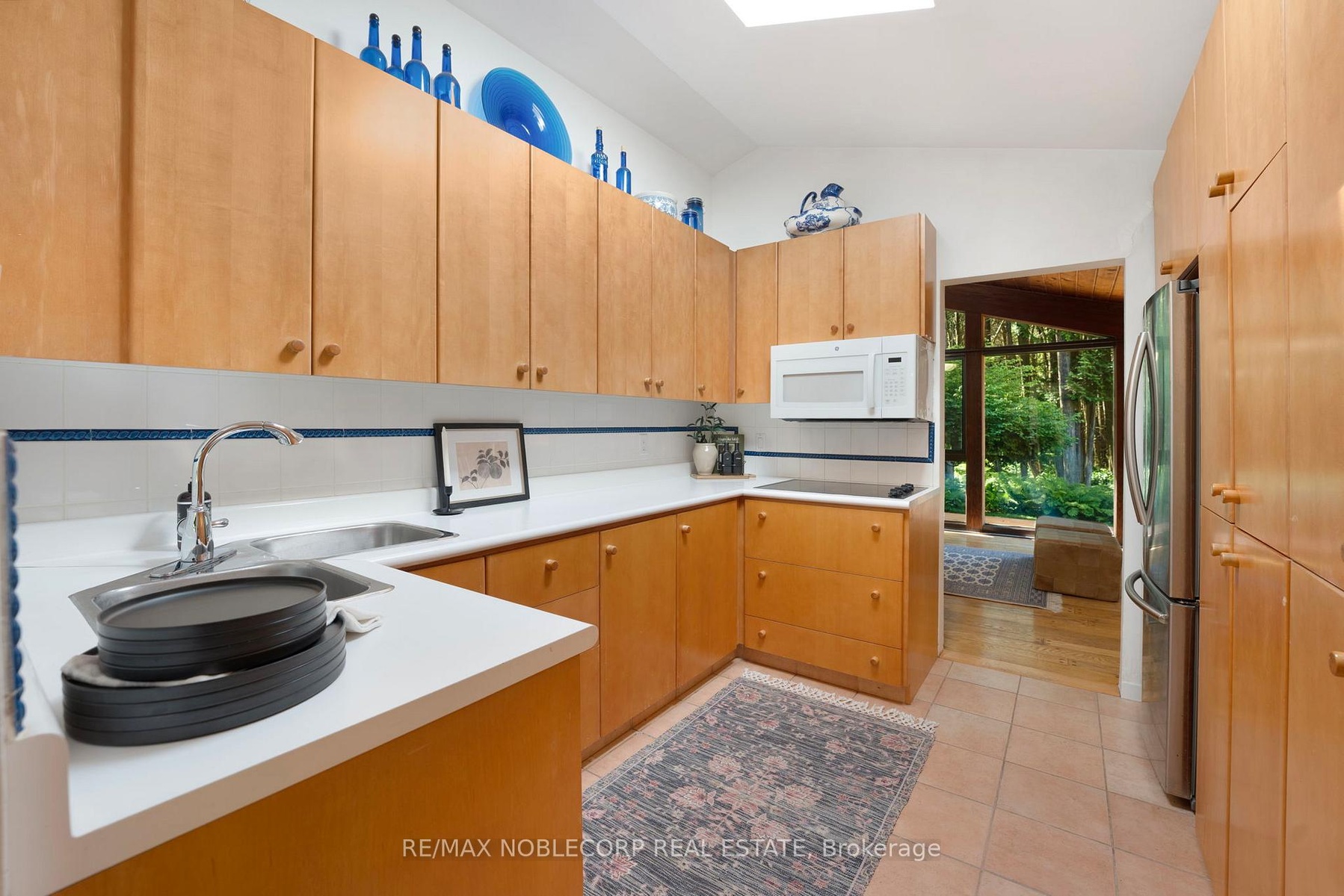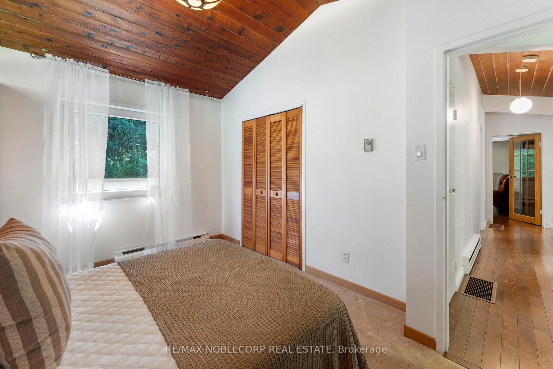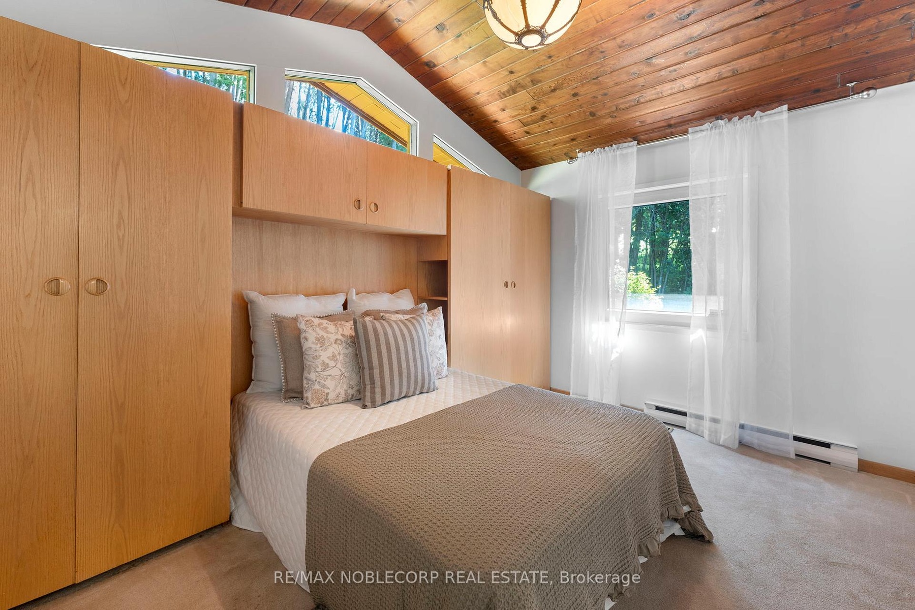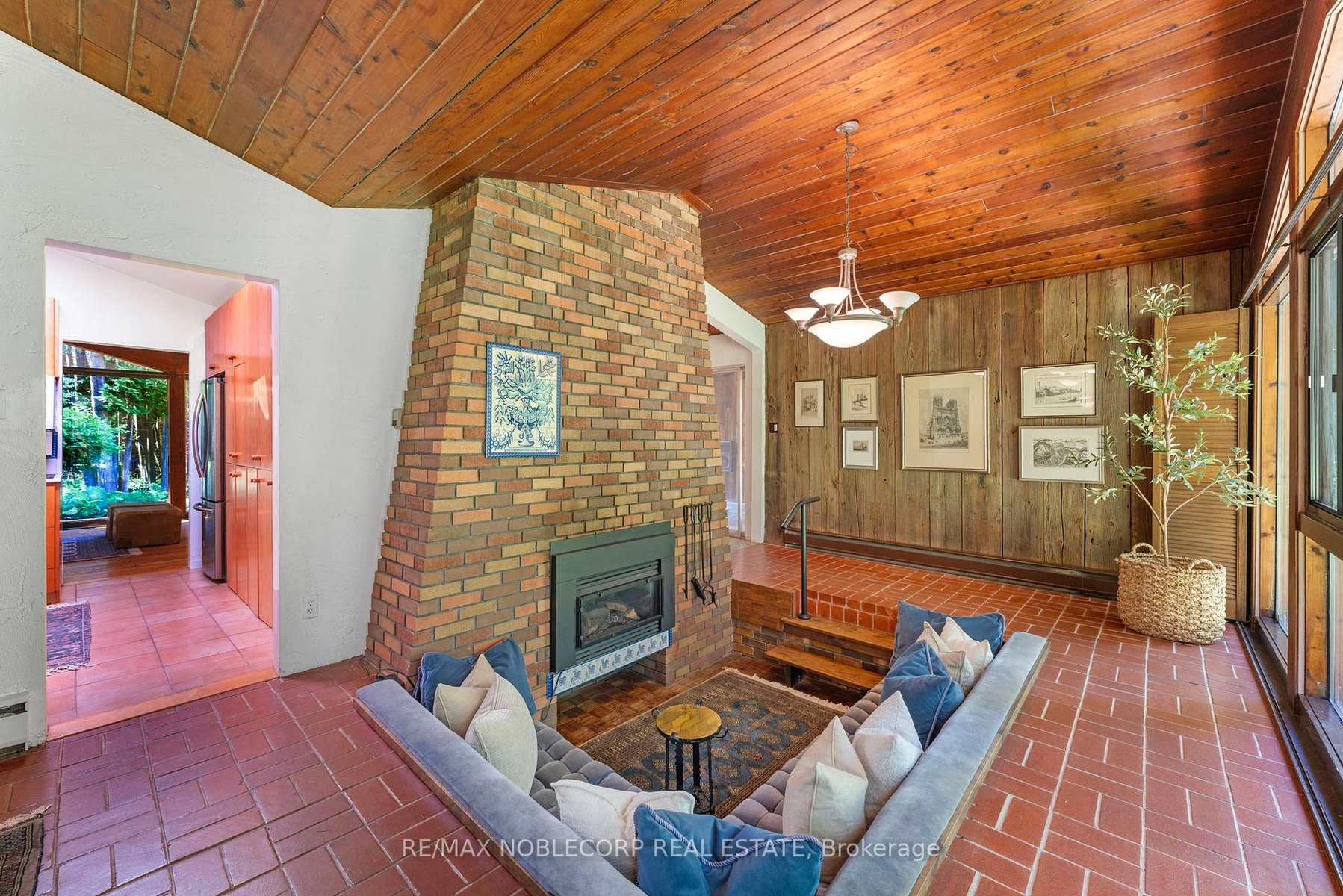3435 Greenwood Rd - Sold As Is Set on a private 2.01 acre lot in the peaceful village of Greenwood lies this unique opportunity in the market. This custom designed mid-century home blends timeless architectural design with natural beauty. Offering 2,505 sq.ft of finished living space, the home features floor to ceiling windows, solid cedar ceilings, a sunken living area with a gas fireplace and historic pegged hardwood floors from Casa Loma. The main level includes 3 bedrooms, with a private fourth bedroom on the lower level - ideal for guests or in-laws. Outdoor living shines with extensive decking, a screened gazebo, a large patio, a 30' x 40' pool with screen gazebo and mature natural forest landscape. Additional highlights include a circular double driveway (repaved in 2023), attached and detached garages/workshop with hydro, newer roof on house (2015 flat / 2023 angled), updated mechanicals, and a second well for unlimited water. Steps to Greenwood Conservation area, Valley View P.S, and minutes to HWY 407/401 and local amenities, this rare property offers unmatched privacy with lots of potential in one of Pickering's most desirable natural settings.
