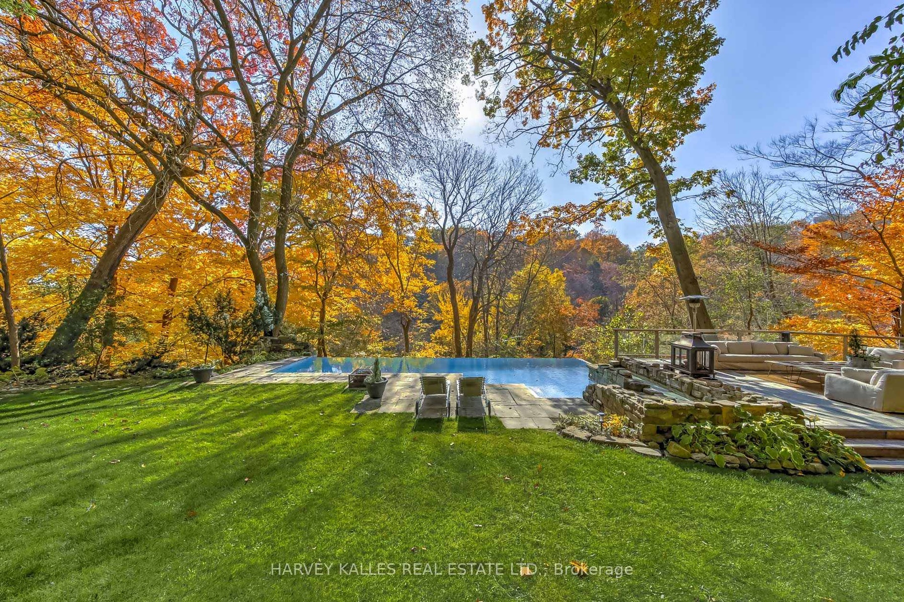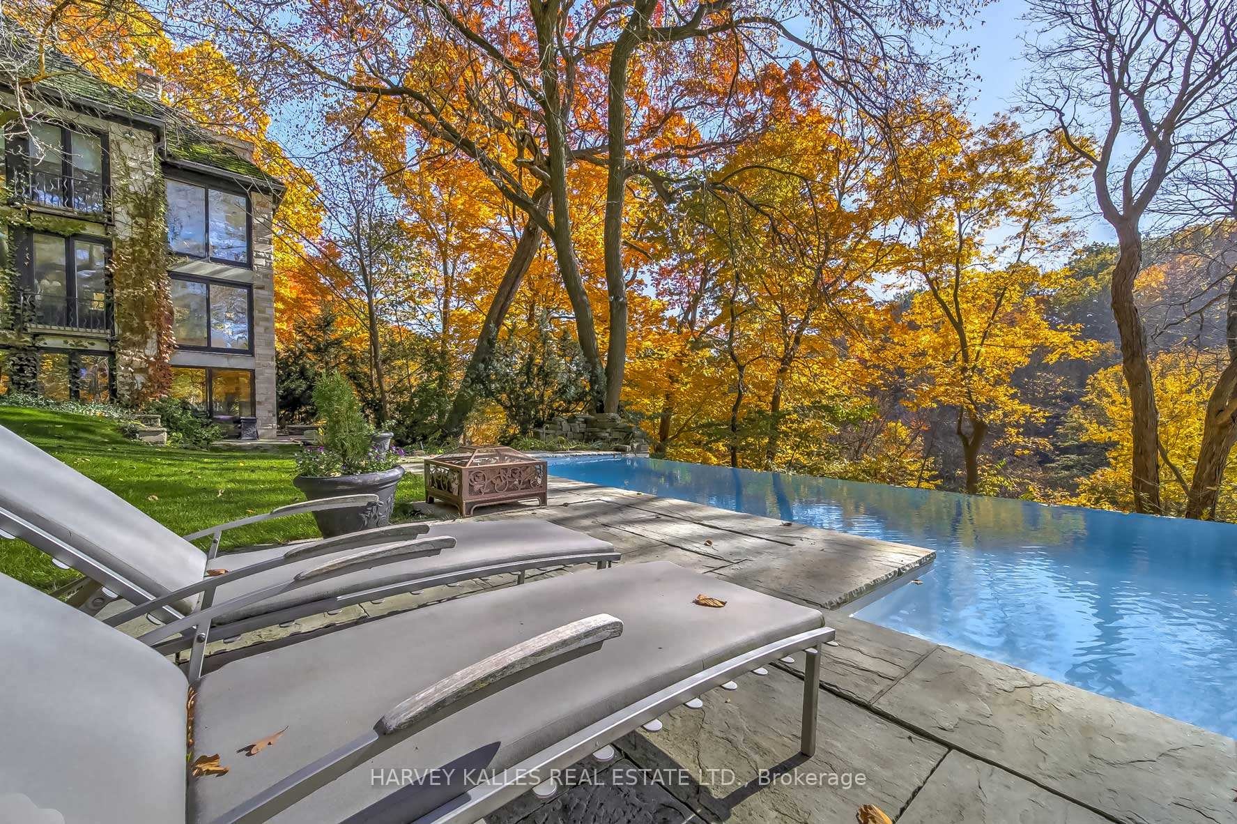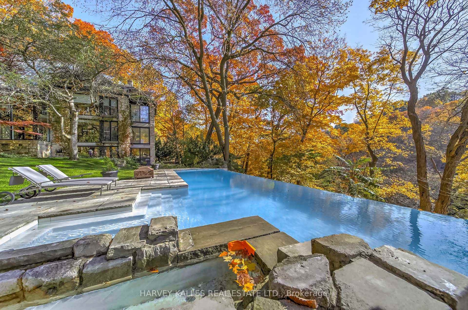 Exceptional Executive Rental Offering Unmatched Privacy & Sophisticated Design In The Heart Of Prestigious Rosedale. A Stately Residence Poised Majestically On A Spectacular Ravine Lot Of Nearly One Acre, Providing An Idyllic Setting With Breathtaking 360 Views Of Nature Through Expansive Windows & Glass Doors. Elegant Principal Rooms With Soaring Ceilings & Natural Light Create Seamless Indoor-Outdoor Living. A Show-Stopping Infinity Pool Appears To Float Above The Ravine, Framed By Multiple Terraces & Manicured Gardens-An Entertainer's Dream. The Main Level Features Spacious Formal & Informal Living Areas, A Gourmet Kitchen With Top-Tier Appliances & Custom Cabinetry, Plus Walkouts To Stunning Outdoor Spaces Perfect For Year-Round Enjoyment. The Primary Suite Offers A Private Retreat With Spa-Inspired Ensuite, Walk-In Dressing Room & Balcony Overlooking The Forest. Additional Bedrooms Are Generously Sized, Each With Ravine Views & Thoughtful Finishes. Lower Level Includes A Home Theatre, Gym, Wine Cellar & Direct Walkouts To The Lush Grounds. Every Detail Reflects Impeccable Craftsmanship, From Custom Millwork & Wide-Plank Floors To Designer Lighting & Stone Accents. The Property's Setting Delivers Ultimate Tranquility While Remaining Steps To Top Schools, Parks, Transit & The Best Of Toronto's Dining & Shopping. A Rare Opportunity To Experience Resort-Style Living In One Of The City's Most Coveted Locations. Perfect For Executives, Diplomats Or Those Seeking An Exclusive Temporary Residence Surrounded By Natural Beauty Yet Minutes From Downtown. This Remarkable Estate Combines Architectural Excellence, Modern Comfort & Unrivaled Privacy-Truly One Of Rosedale's Finest Rentals.