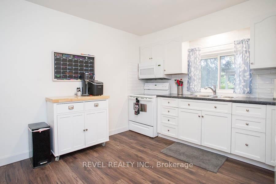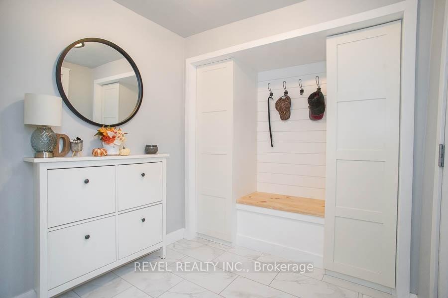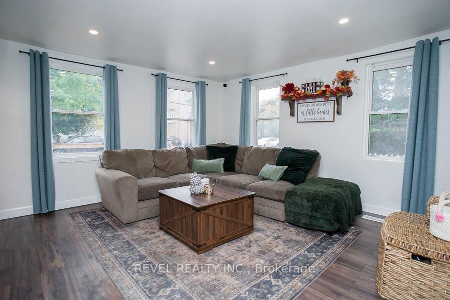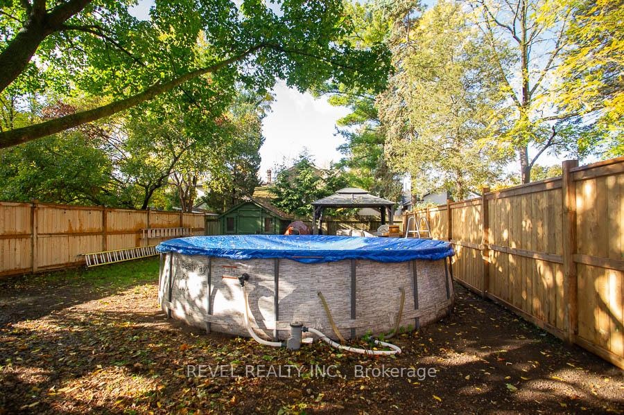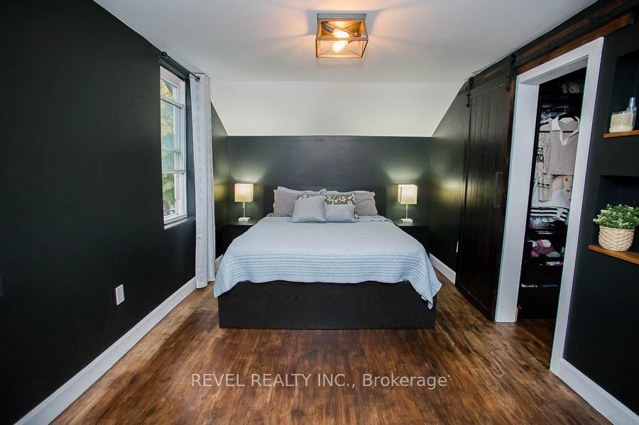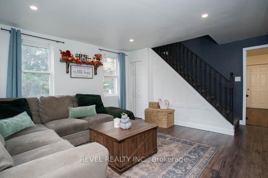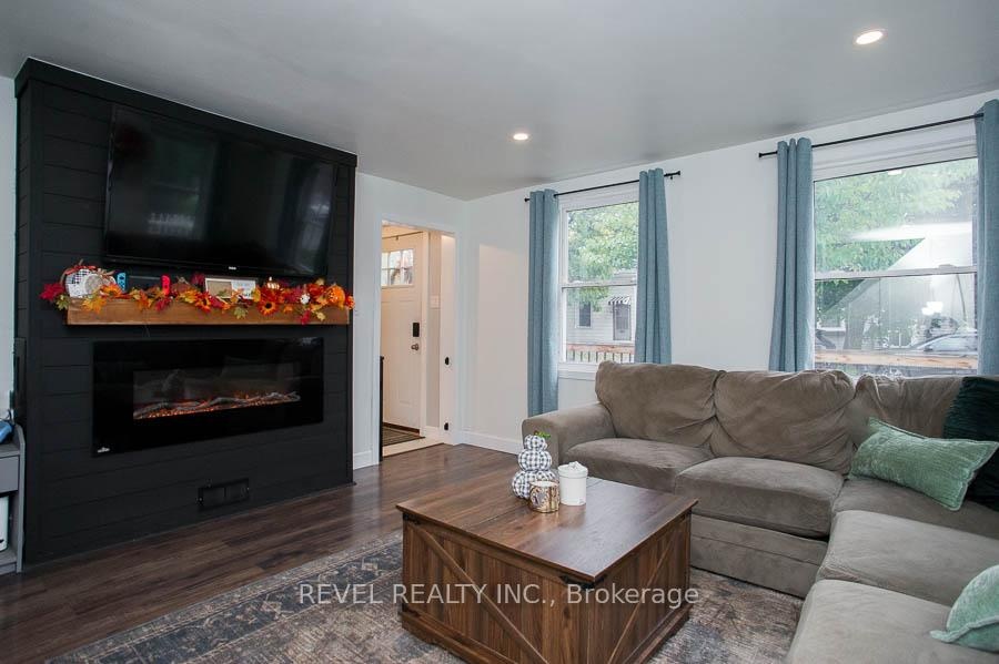 Attention first-time home buyers and investors! Look no further - this detached 1.5-storey home is the perfect opportunity for you! Offering 2 bedrooms plus an office, 1.5 bathrooms, and a spacious backyard, this property blends modern updates with classic charm. Step inside to a bright and open great room featuring LED pot lights, a shiplap electric fireplace with a wood mantel, and laminate flooring throughout. A cozy office or den with shiplap detailing and sconce lighting creates the perfect space for working from home or a playroom. The kitchen offers white cabinetry with plenty of storage and a pantry, along with ample space for a dining table - ideal for family meals or entertaining friends. A functional mud room and laundry area with exterior access provides excellent storage and convenience. A freshly updated 4-piece bathroom with new tile and lighting completes the main level. Upstairs, you'll find a 2-piece bathroom and two spacious bedrooms. The primary bedroom features a sliding barn door with built-in closet organizers and charming wall niches for extra storage, while the second bedroom is bright and roomy - perfect for kids or guests. Outside, enjoy a massive backyard complete with a deck, gazebo, above-ground pool, and newer fencing - ideal for outdoor gatherings. Major updates include new siding (2024-2025), roof (approx. 2015), updated fencing and exterior lights, and a newer deck and front porch. This home is adorable and perfect for the next family to move in and enjoy!