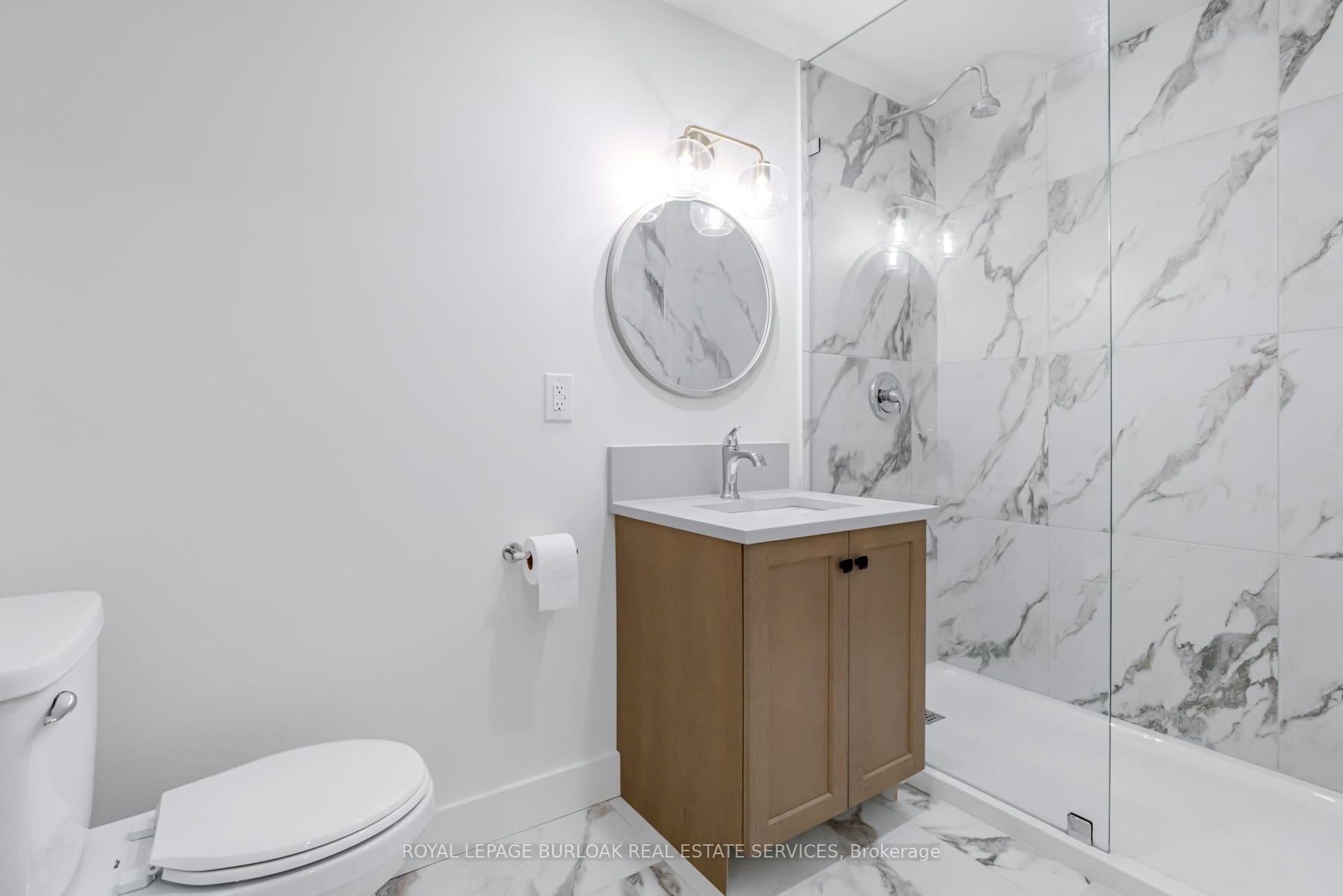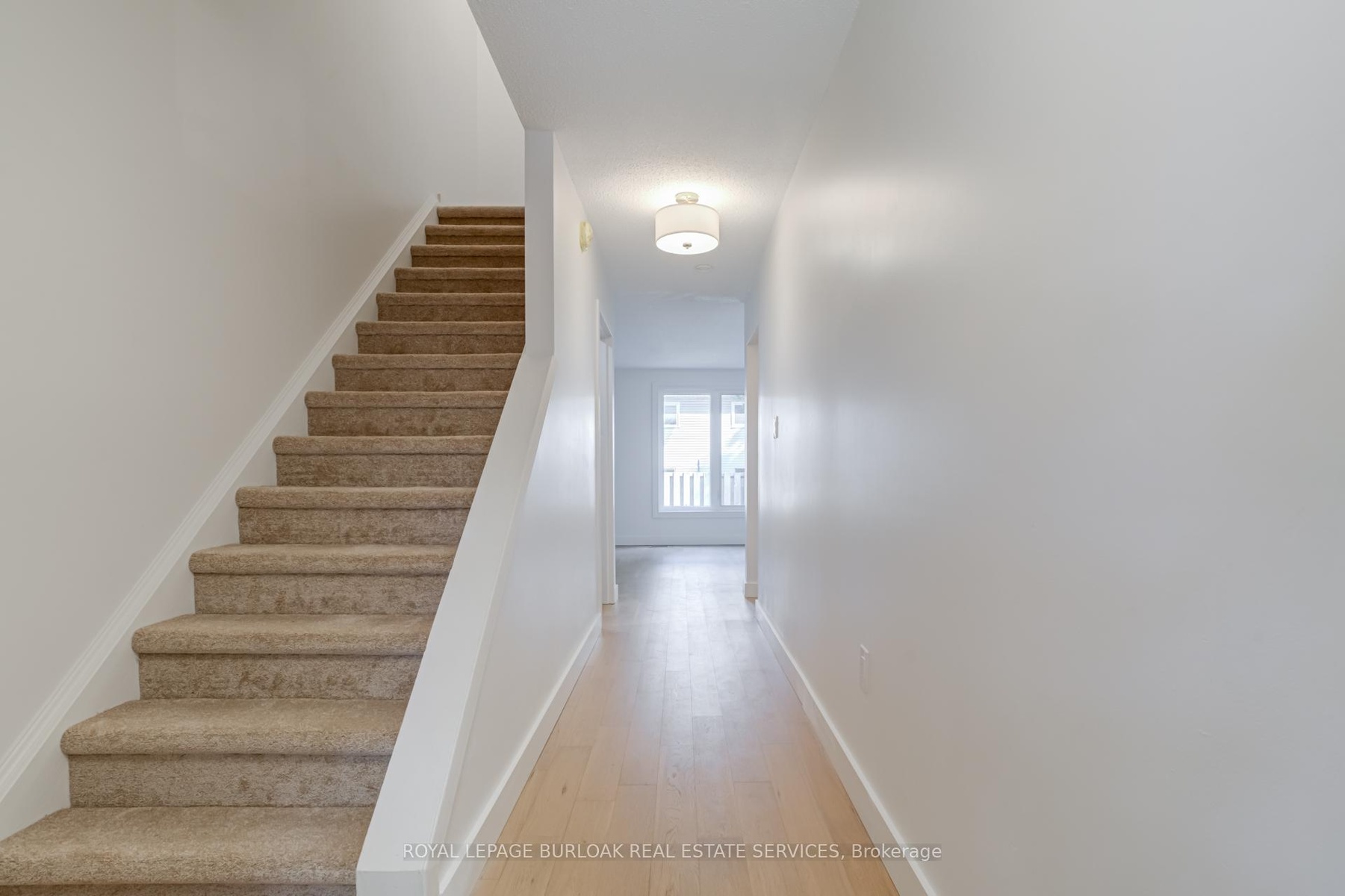 Gorgeously renovated townhome on Hamilton Mountain! This 3 bedroom, 2 bathroom home has over 1400 square feet ofliving space and a beautifully finished backyard deck. This home has been renovated throughout with engineered hardwoodthroughout the main floor, that leads to custom designed kitchen with stainless steel appliances, quartz countertops, subwaytile backsplash, soft-close cupboards. The dining area leads to the south facing walkout to a newly built deck with all daysun and lawn space. The main floor is complete with a spacious living room. New carpet with premium under pad leads tothe upstairs level with 3 great sized bedrooms and a fully renovated 4-piece bathroom, gorgeous tiled bathroom stall,custom vanity and tile flooring. The lower level is complete with a recreation room and an added 3-piece bathroom with acustom vanity, tiled shower stall and tiled flooring. This home has been freshly painted throughout, updated light fixturesthroughout, trim work and baseboards throughout. With an inclusive condo fee and sitting in a quiet complex this home isperfect for those looking to get started in home ownership, close access to all major highways, shopping and public transit