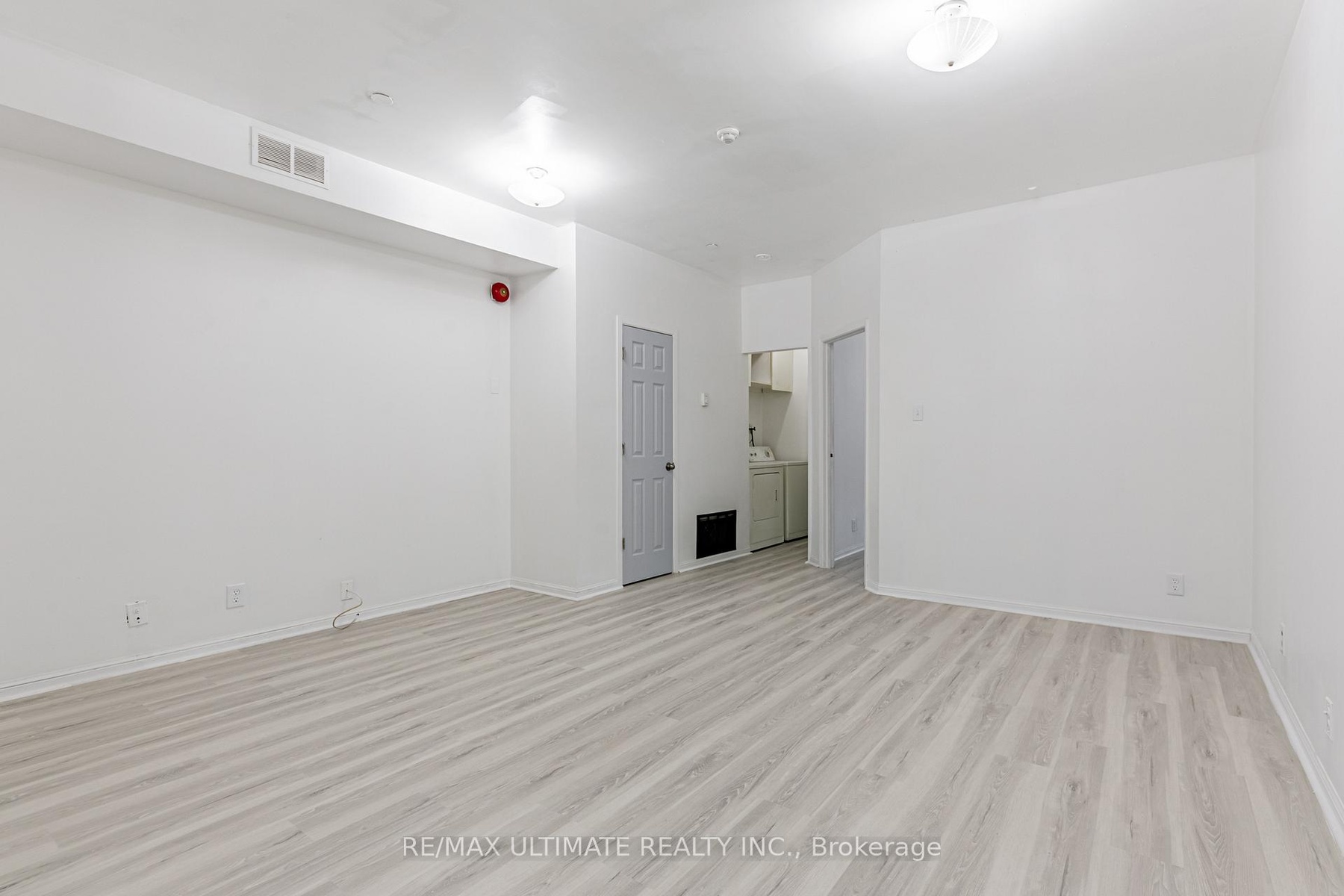 All About the Location! Welcome to this charming cul-de-sac loft-style walk-up apartment on the top floor, situated in the vibrant Leslieville neighborhood. Enjoy the best brunch spots, vintage furniture stores, and coolest bars just steps from your door! This newly renovated and freshly painted one-bedroom apartment features vinyl flooring throughout. Spacious L shape kitchen in a separate room with tons of storage, living and dining area comfortably fits an L-shaped couch and a TV, making it perfect for relaxing or entertaining. Unlike micro condos, it offers a generous primary bedroom with a full-sized closet and a walk-out to your own private balcony with gorgeous views. The modern 4-piece bathroom includes ensuite laundry for added convenience. With the Queen Streetcar right at your doorstep, you can be anywhere in the city within seconds. Located just minutes from Shoppers Drug Mart (open till midnight), cozy cafés, great restaurants, Jimmie Simpson Park, and the beach - everything you need is at your fingertips! Added bonus there's a shared outdoor common space for all tenants to enjoy.