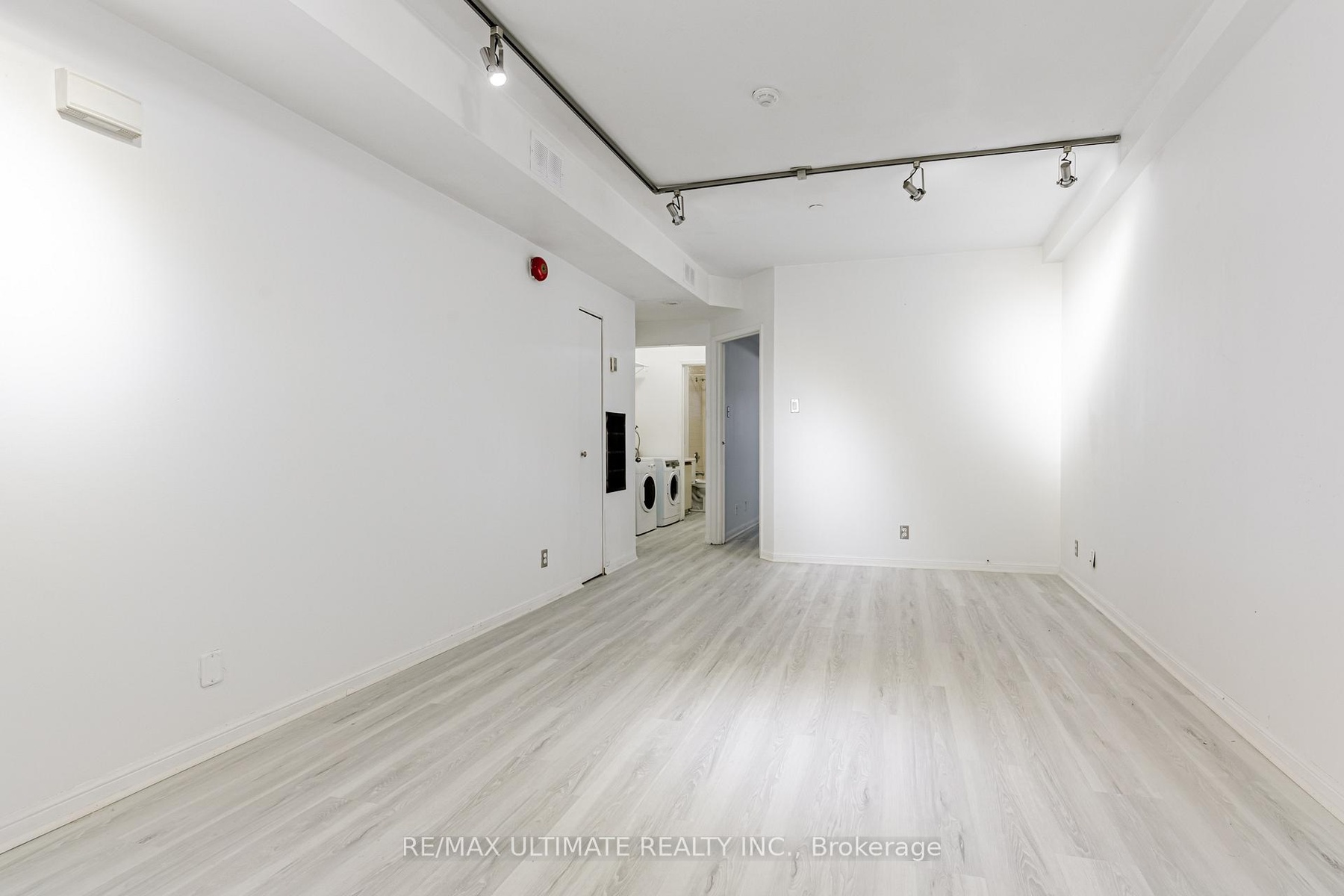All About the Location! Welcome to this charming cul-de-sac loft-style walk-up apartment on the top floor, situated in the vibrant Leslieville neighborhood. Enjoy the best brunch spots, vintage furniture stores, and coolest bars just steps from your door! This newly renovated and freshly painted one-bedroom apartment features vinyl flooring throughout. Spacious L shape kitchen in a separate room with tons of storage, living and dining area comfortably fits an L-shaped couch and a TV, making it perfect for relaxing or entertaining. Unlike micro condos, it offers a generous primary bedroom with a full-sized closet and a walk-out to your own private balcony with gorgeous views. The modern 4-piece bathroom includes ensuite laundry for added convenience. With the Queen Streetcar right at your doorstep, you can be anywhere in the city within seconds. Located just minutes from Shoppers Drug Mart (open till midnight), cozy cafés, great restaurants, Jimmie Simpson Park, and the beach - everything you need is at your fingertips! Added bonus there's a shared outdoor common space for all tenants to enjoy.