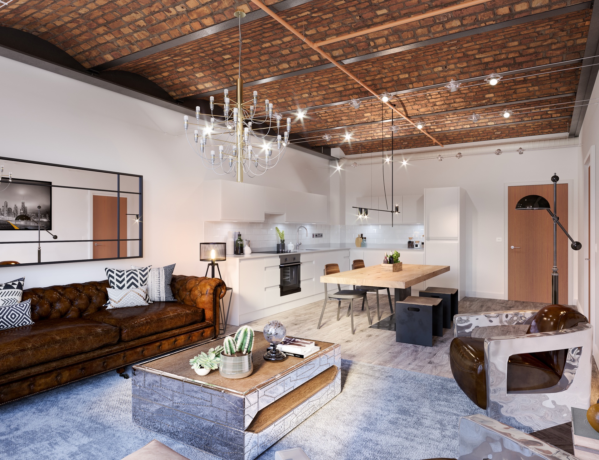 Each apartment has been sympathetically designed to complement the building’s original features, including exposed brickwork, timber detailing, and large multi-paned windows that flood interiors with natural light and showcase panoramic views across Manchester and its suburbs.