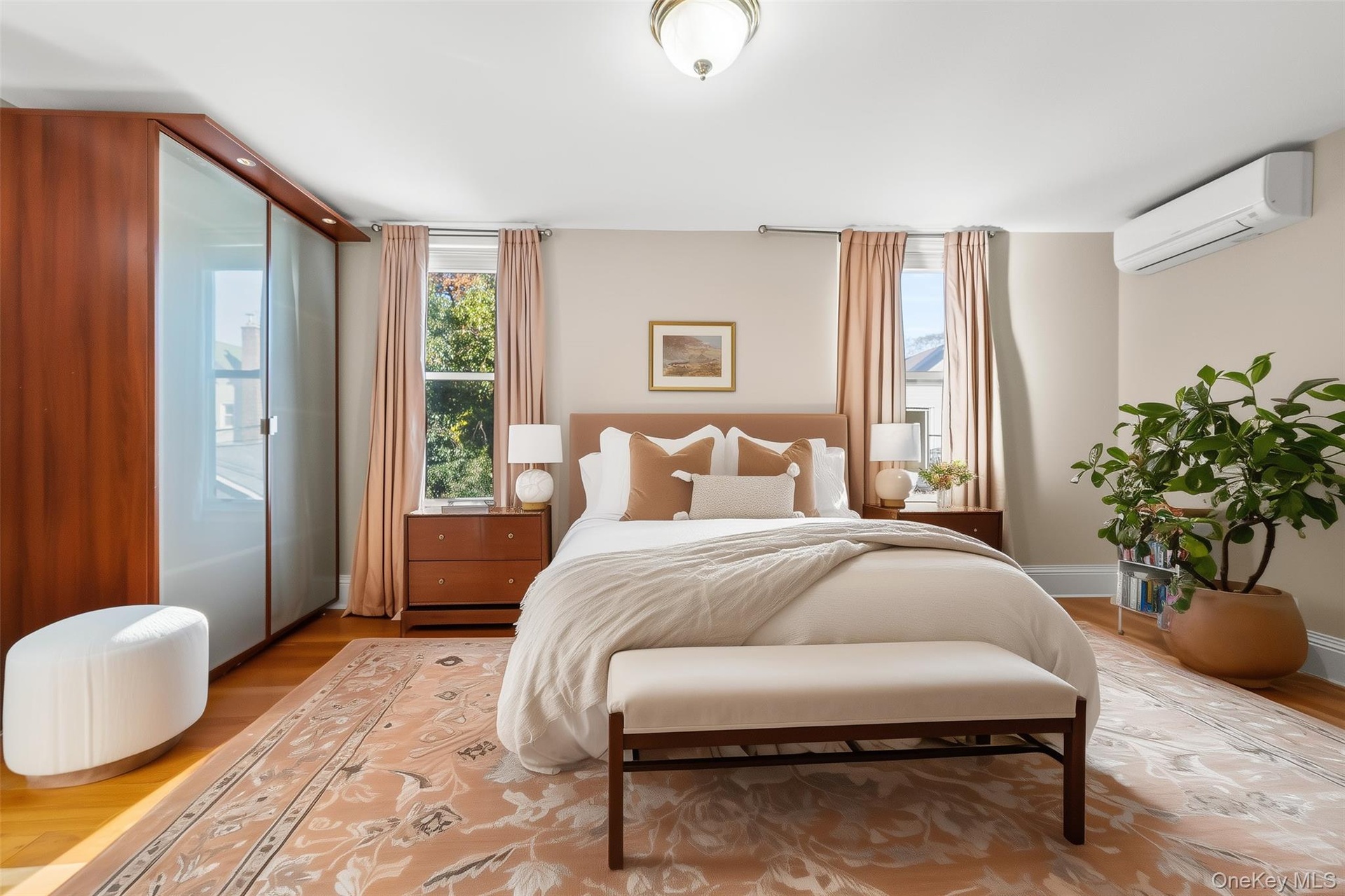 Upstairs, the second level mirrors the home’s bright and airy feel, featuring four well-proportioned bedrooms and a full bath. Each bedroom is individually climate-controlled with brand-new split-system units (5 total), providing quiet, efficient heating and cooling all year. A separate laundry area with washer and dryer adds convenience for modern living while maintaining the property’s classic layout.