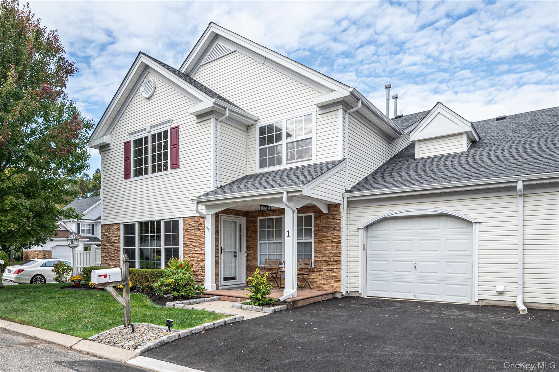 Welcome to Birchwood at Spring Lake, a premier gated community offering resort-style living in the heart of Middle Island. This beautifully updated corner 2-bedroom, 2-bathroom townhouse spans approximately 1,800 sqft (one of the largest townhouses in complex) and features an extended loft and office on second level. Step inside to find an open and airy layout with hi-hat lighting throughout, a modern kitchen with granite countertops, stainless steel appliances, and updated bathrooms designed with style and comfort in mind. Custom fireplace and feature wall with lighting in the living room. Enjoy the convenience of a laundry room and a 1-car garage for added storage and ease. Residents of Birchwood at Spring Lake enjoy luxury amenities including two indoor and two outdoor pools, two modern clubhouses with active social calendars, a golf course (fee included in HOA), tennis courts, new pickle ball courts and beautifully maintained grounds with walking paths. Recent updates - driveway (2025), roof (2024), kitchen, bathrooms, laundry room updated (2024), dishwasher, microwave with air fryer and convection cooking (2023), home office (2025), custom fireplace and feature wall with lighting (2023), new fixtures throughout, recessed lighting throughout upper level, custom window treatments throughout, yard features all new evergreen plantings. Experience maintenance-free living with every comfort and convenience at your fingertips — all within a vibrant, resort-like community.