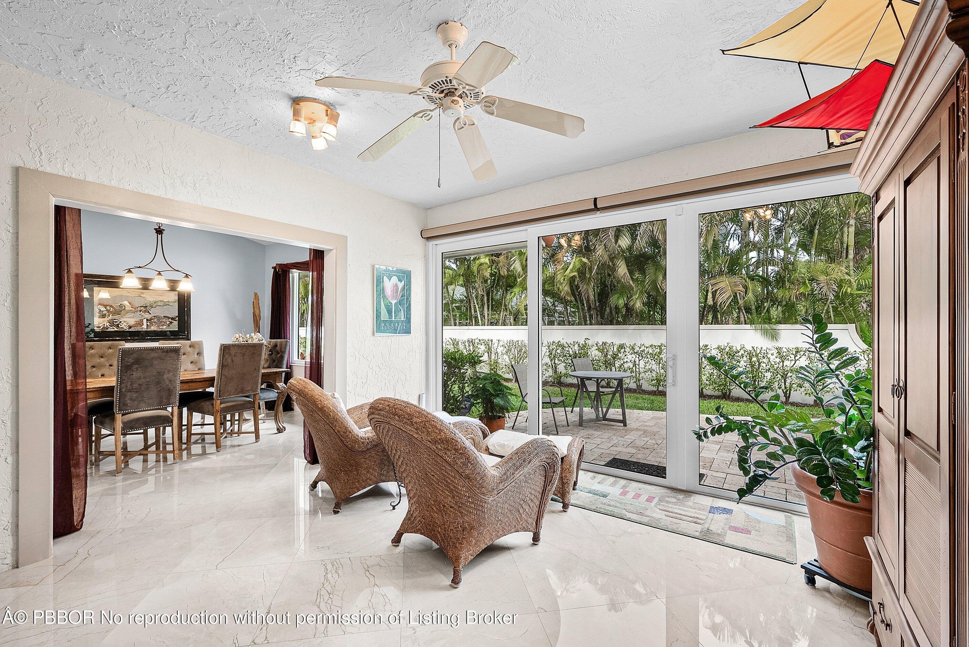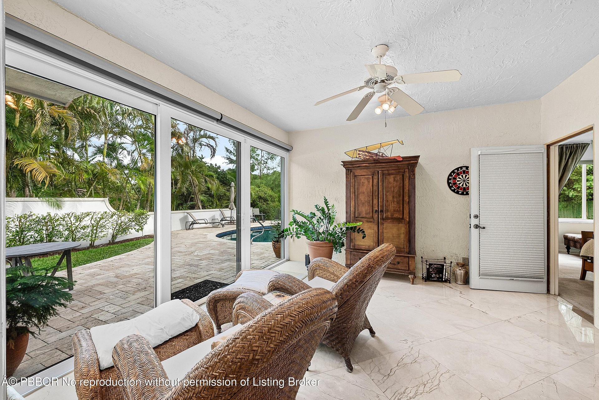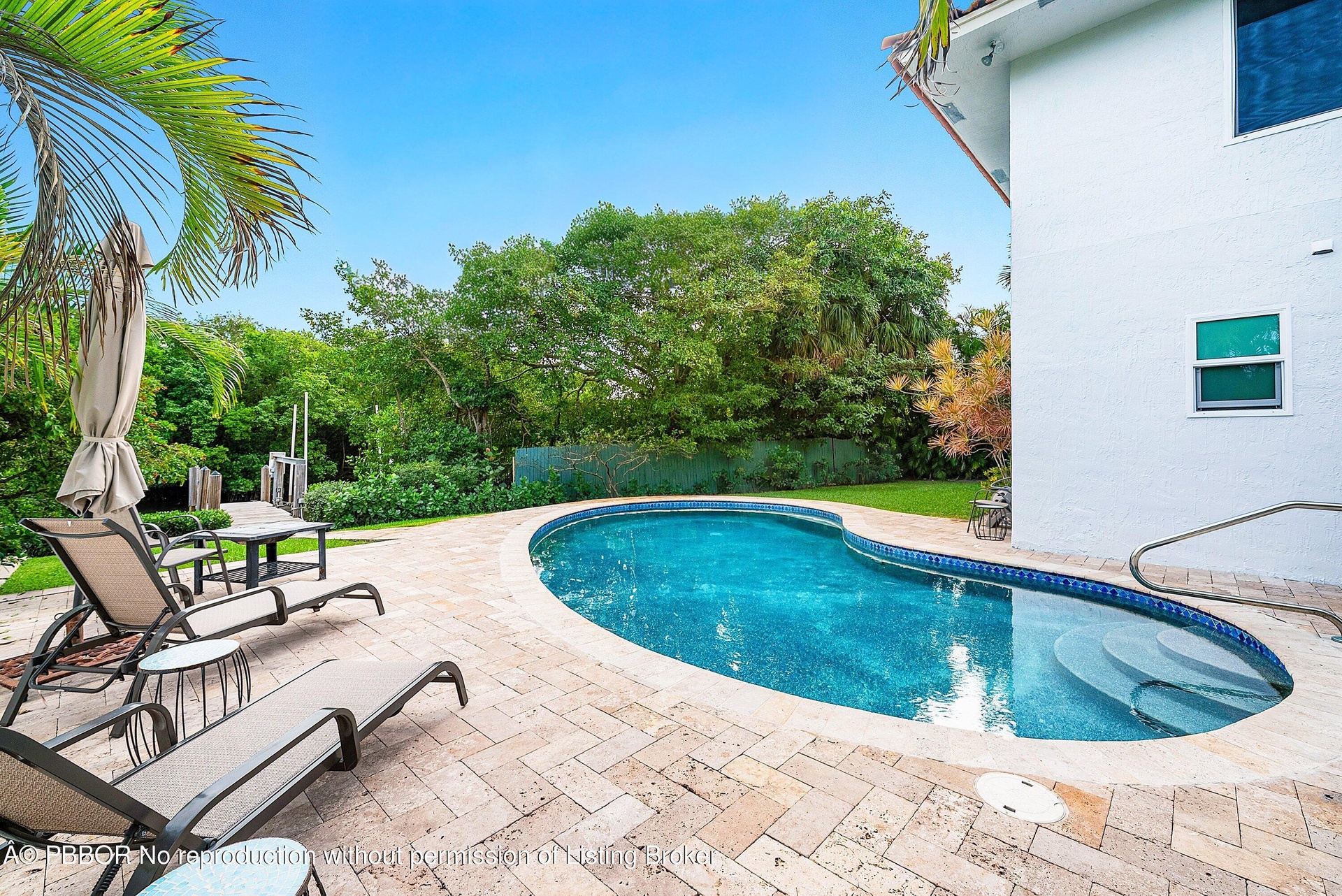 Open-concept living and dining spaces seamlessly transition outdoors to a waterfront oasis. A resort-style saltwater pool with a travertine deck sets the stage for quiet relaxation or hosting unforgettable gatherings. A private dock with a 10,000-pound lift accommodates boats up to 27 feet, providing effortless access to South Florida's iconic waterwaysfrom intracoastal cruising to ocean adventures.