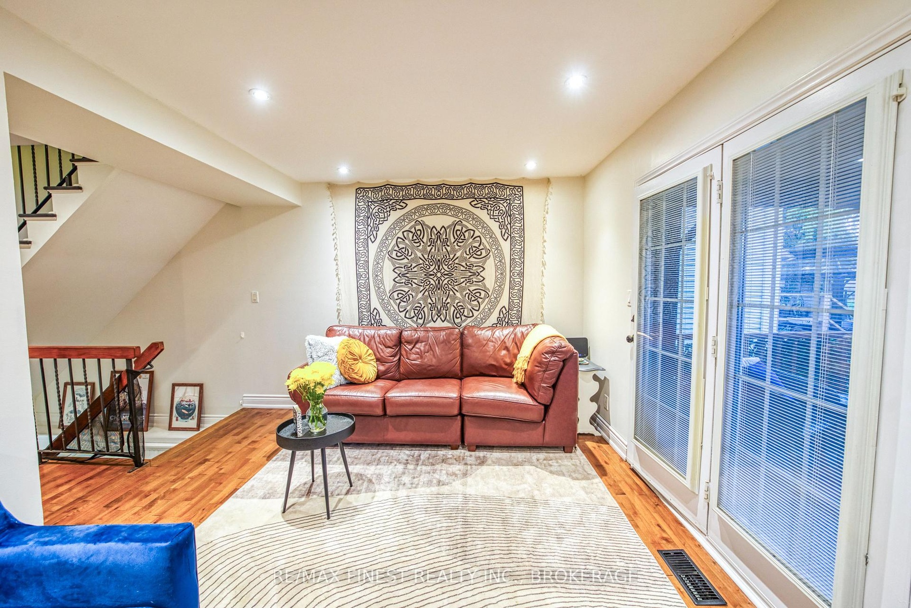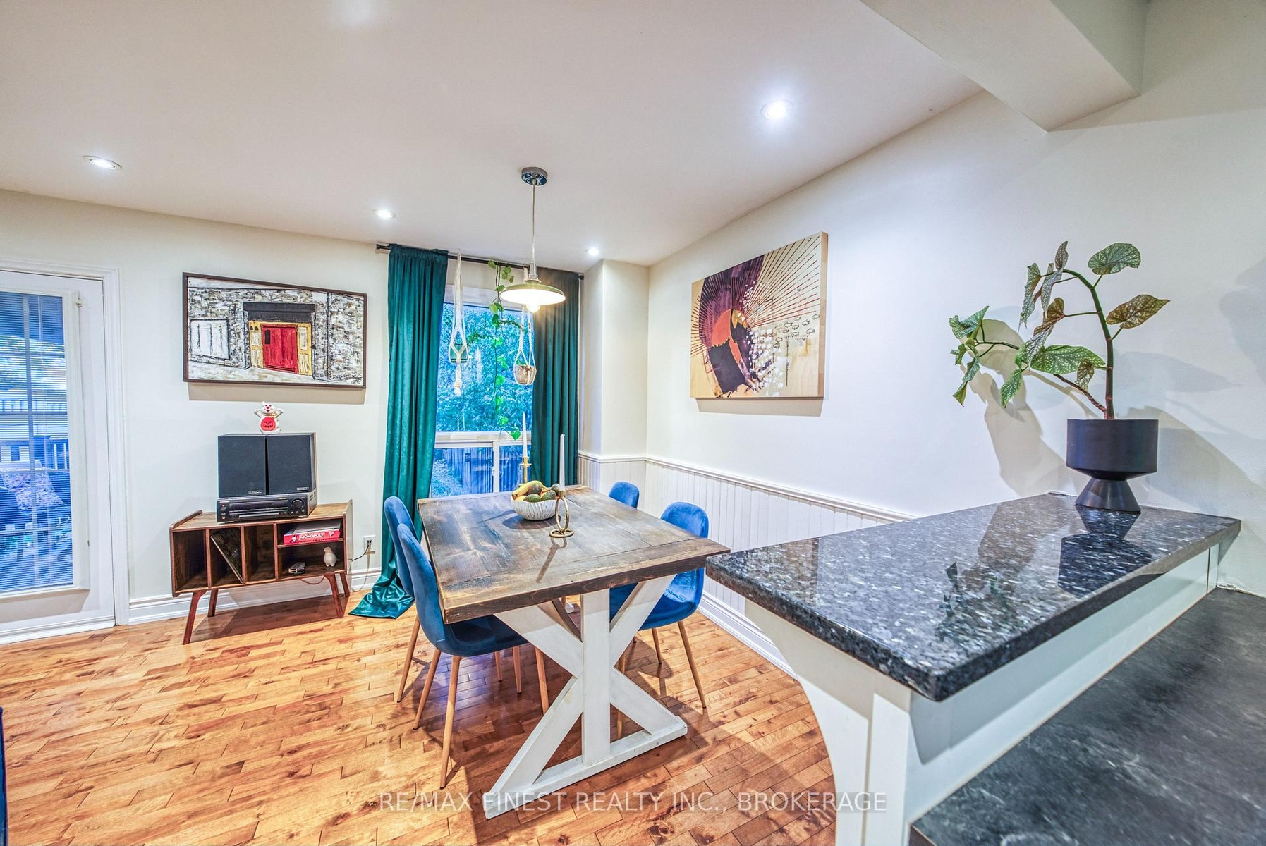 This bright and welcoming home features a modern kitchen with breakfast bar, gleaming hardwood floors throughout, and three spacious bedrooms with 1.