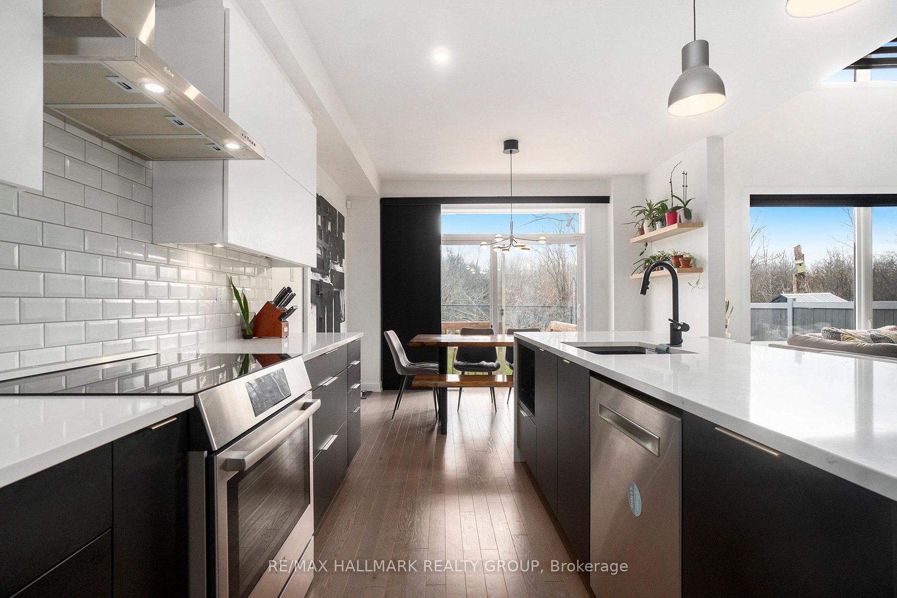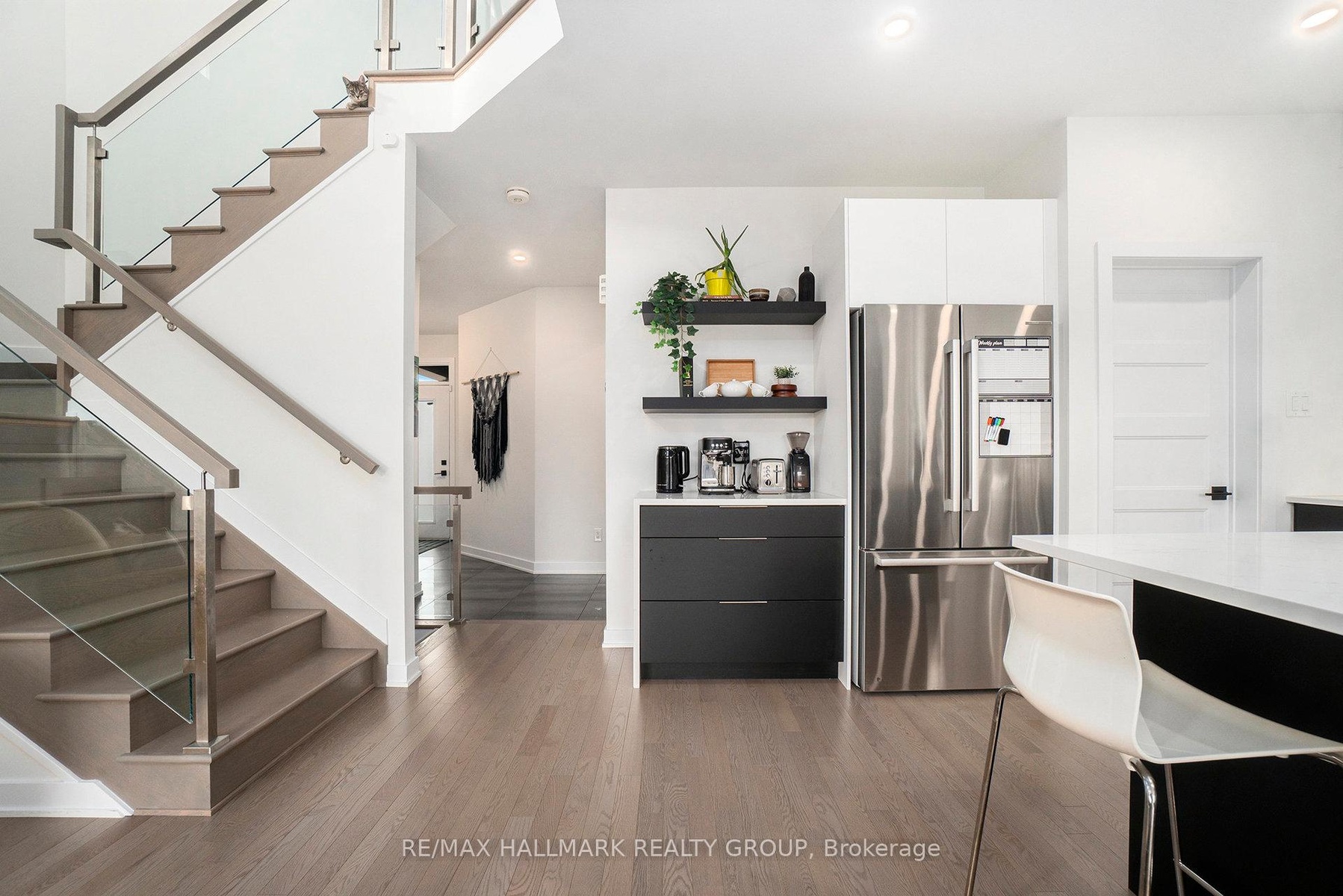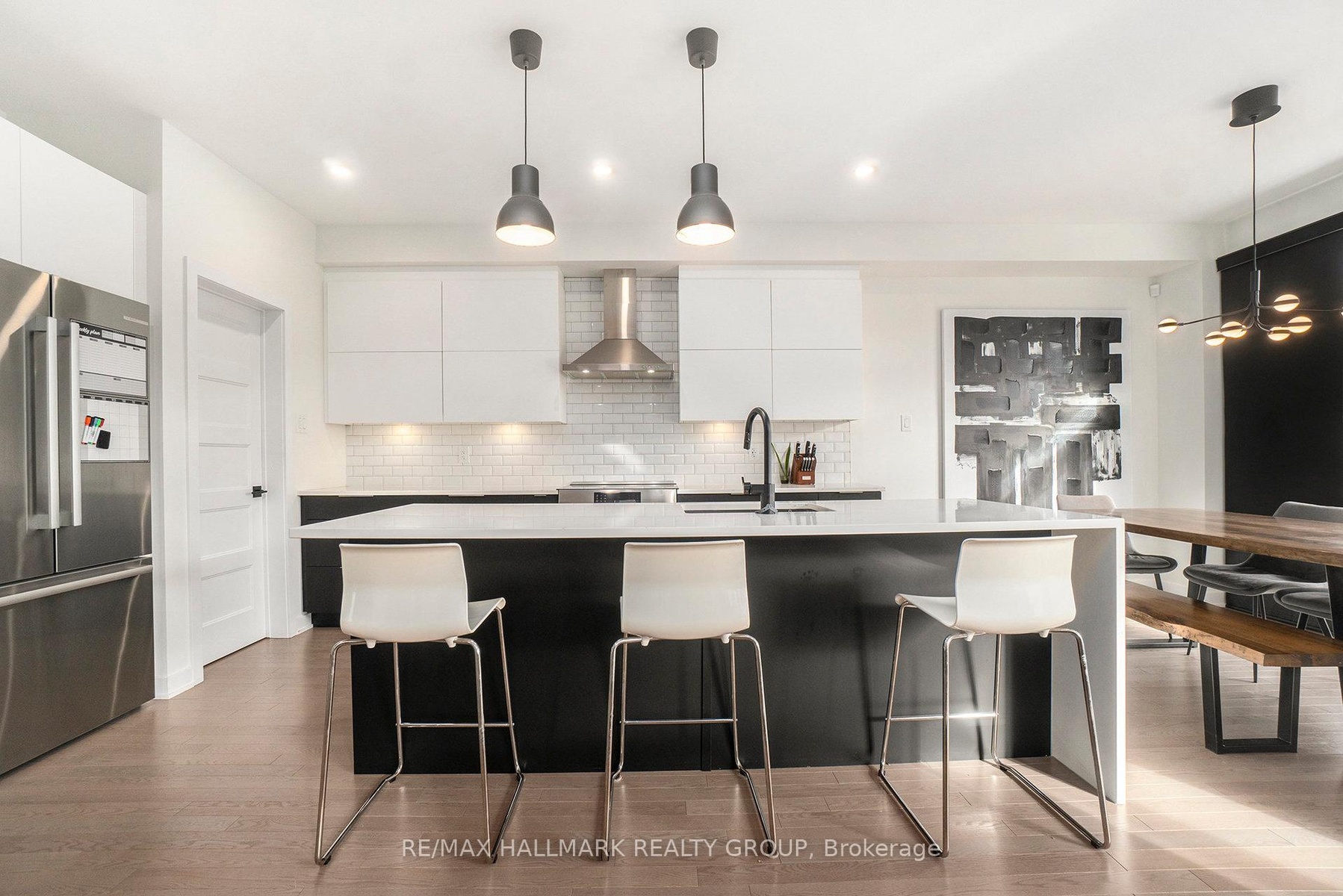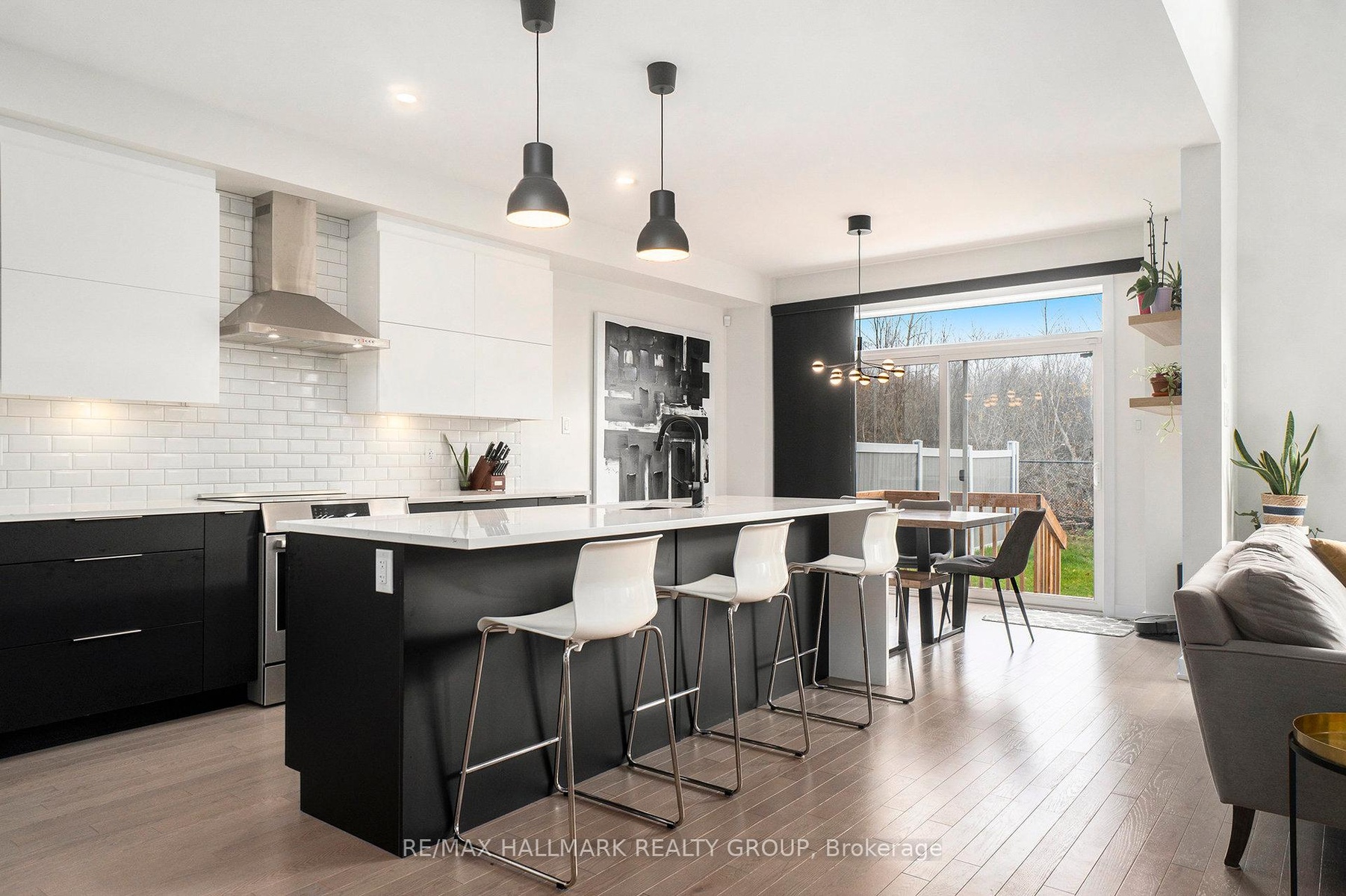 Welcome to an exceptional opportunity to own a truly upgraded single-family home in the highly sought-after Findlay Creek community. This striking 3-bedroom, 3-bathroom residence has been elevated by approximately $100,000 in premium upgrades, offering a level of sophistication rarely found in the area. From the curb, the home makes a commanding impression with its higher exterior elevation, immediately signaling the quality within. Step inside and be greeted by the dramatic entryway, featuring oversized, designer tiles, leading into a space defined by architectural elegance. The main living areas and the entire upper level boast rich, continuous hardwood flooring, connected by sleek hardwood stairs and a modern glass and metal railing. The heart of the home is the chef's kitchen, a true showpiece featuring premium custom cabinetry, a stunning waterfall quartz countertop, and a dedicated full coffee bar-perfect for entertaining. Upstairs, the luxury continues into the primary suite, where the ensuite offers the ultimate comfort with a heated bathroom floor. No detail has been overlooked, including practical luxuries like custom closet systems installed in all three bedrooms. This is a turn-key property where high-end craftsmanship meets contemporary style, offering a privileged lifestyle in a fantastic neighborhood.