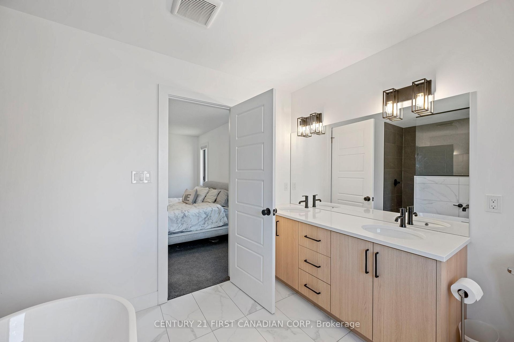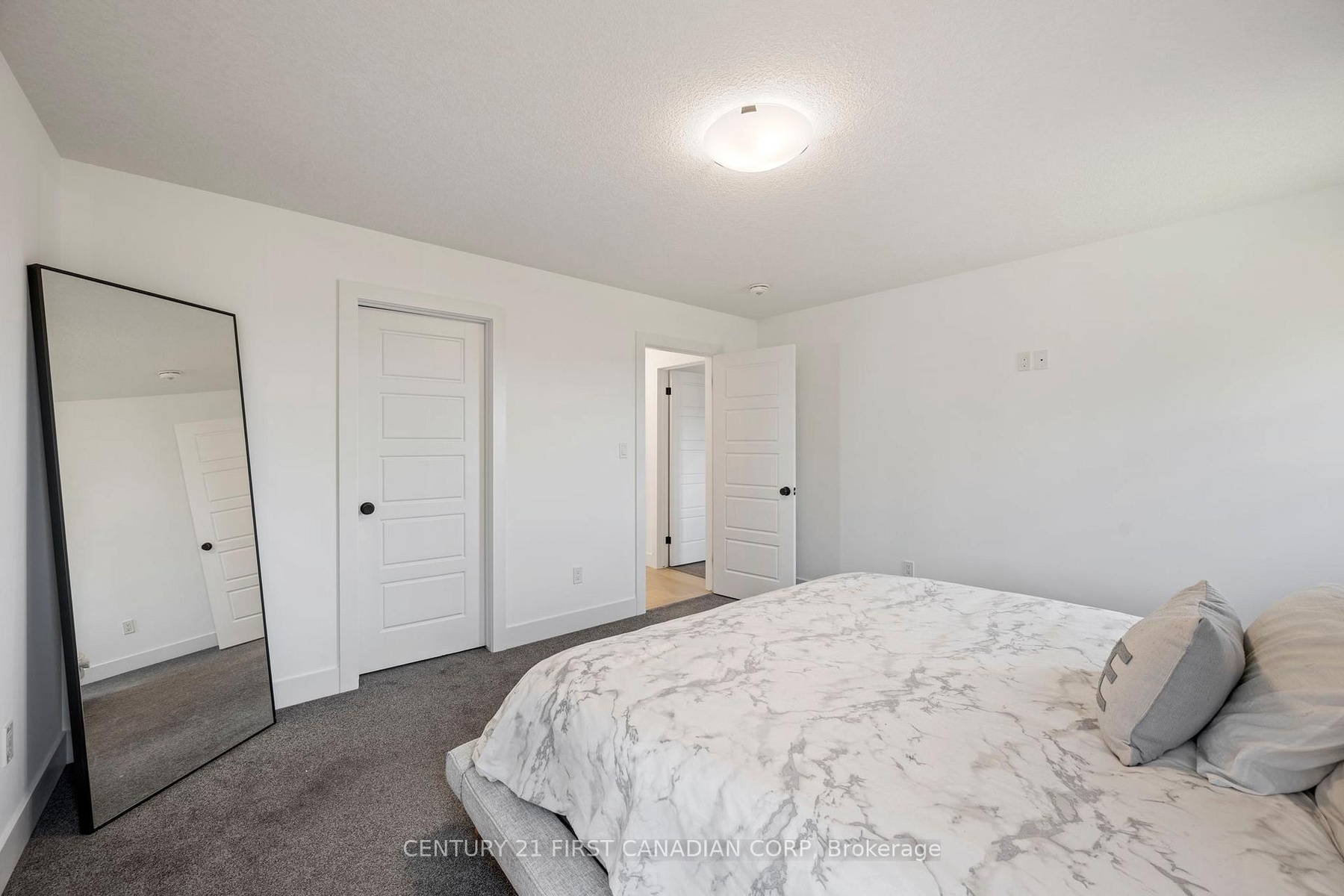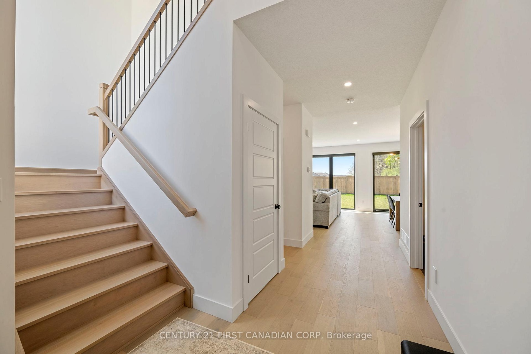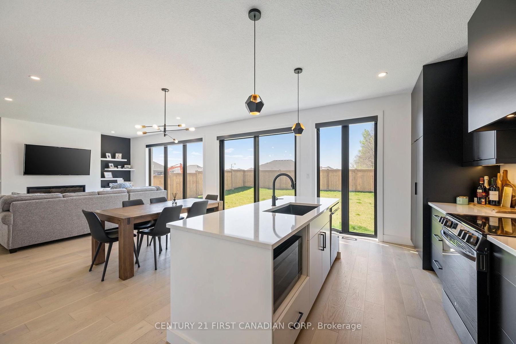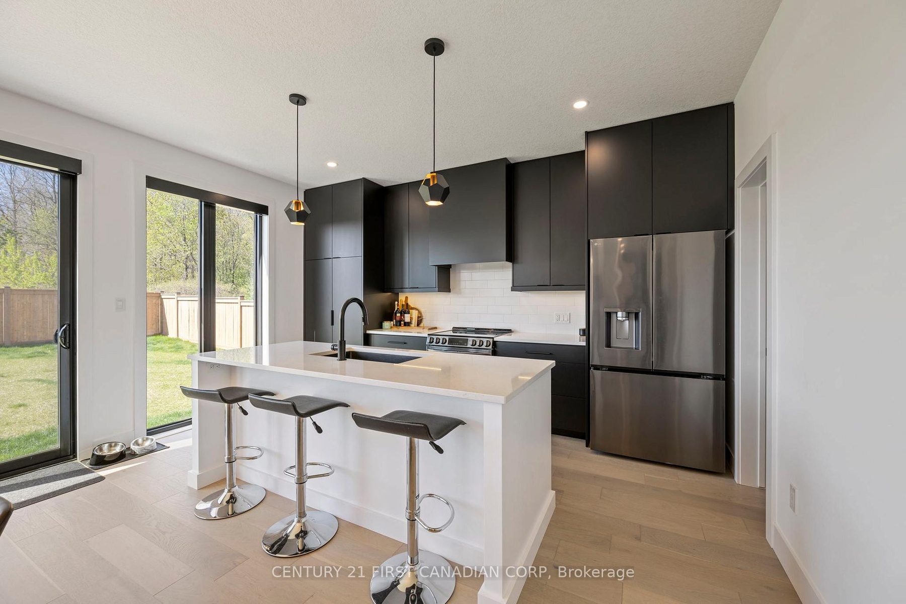 This beautifully designed, modern home is the perfect blend of luxury and function. The sleek chefs kitchen features a large quartz island, contemporary backsplash, a butlers pantry, and high-end cabinetry, perfect for both everyday living and entertaining. The open-concept main floor is bathed in natural light and showcases engineered hardwood, motorized blinds, a striking stone tile stair landing, fireplace, and designer black hardware throughout. A spacious main floor laundry, and stylish 2-piece bath add everyday convenience. Upstairs, the elegant primary suite boasts a spa-like 5-piece ensuite with a glass shower, soaker tub, and walk-in closet. Two additional generously sized bedrooms and a modern family bath complete the upper level. The unfinished basement offers endless potential. A true statement in modern style and sophistication!