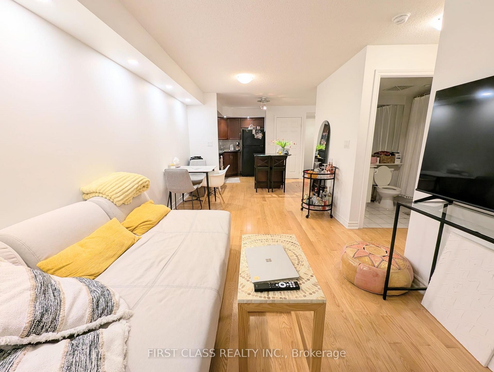 Quality Tridel-Built Icon Condo in Prime Downtown Location!Steps to the Financial & Entertainment Districts, top restaurants, Rogers Centre, CN Tower, TTC, subway, The PATH & more. Walk Score: 99! Spacious 1+Den with no wasted space and an excellent open-concept layout. Custom-installed pot lights and real hardwood flooring throughout add a touch of luxury not found in standard units. The master bedroom fits a king-sized bed and includes a walk-in closet. The den is generously sized and versatile-perfect for a home office, guest room, or workout space. The living area is large enough to accommodate a separate dining area.Bonus: Hydro, A/C, heating, and water are all included!