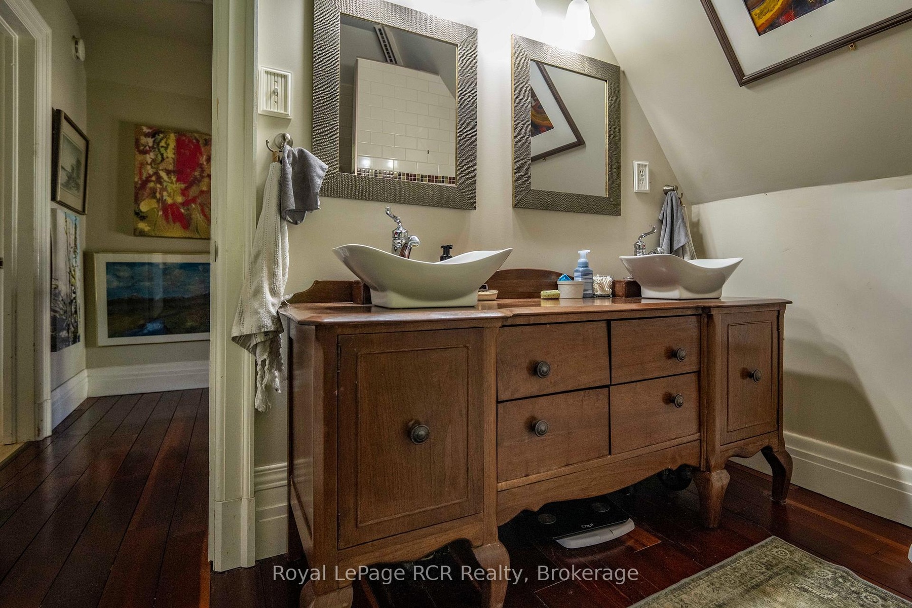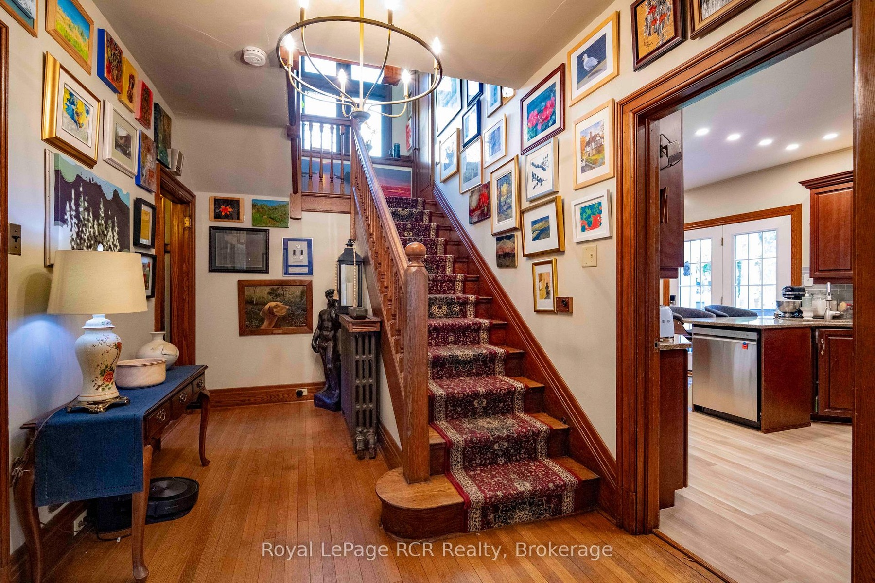 Welcome to 1069 4th Ave W, situated in a well-established downtown neighbourhood where classic charm meets modern convenience. This tudor-style home is designed for both entertaining and everyday family living. The main level features rich hardwood floors and a wood staircase that welcomes you into the heart of the home. The kitchen is equipped with granite countertops, built-in cabinetry, and a walk-out to the multi-level deck, perfect for outdoor gatherings. The living room includes built-in shelving and a cozy gas fireplace, while the formal dining room provides ample space for family gatherings and entertaining. On the second floor, you'll find four bedrooms, including the primary suite with a modern bathroom and rooftop deck. A spacious third-floor bedroom offers a stunning ensuite bath and walk-in closet, ideal for hosting guests or extended family. The carriage house, built in 2008, spans two levels with a second garage and a three-piece bath, making it perfect for an in-law suite or home office. The property is surrounded by beautifully landscaped gardens, complete with an irrigation system to keep every garden bed thriving.