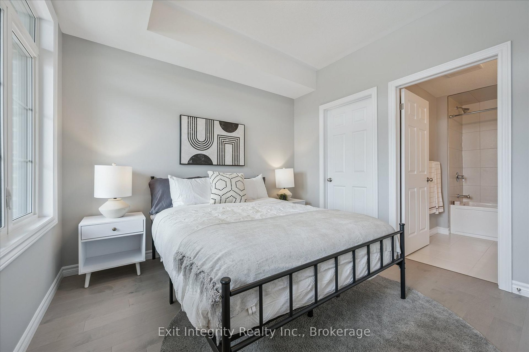 Welcome to 30 Oat Lane, a brand new, never-lived-in bungalow-style townhome offering 950 sq. ft. of thoughtfully designed, single-level living with private entries. Perfect for first-time buyers, downsizers, or anyone seeking the comfort of stair-free living and low-maintenance, fully carpet-free ownership. Expertly crafted by Fusion Homes, this residence reflects the builder's hallmark commitment to quality, craftsmanship, and lasting value. Fusion is known for pairing modern aesthetics with functional layouts, built using premium materials and a checklist that ensures precision and consistency from foundation to finish. Fusion's industry-leading warranty program offers twice the coverage of the industry standard, providing exceptional peace of mind. To build trust and reduce stress, homeowners also benefit from two Pre-Delivery Inspections. Step inside to an airy, open concept layout featuring 9' ceilings and oversized windows that fill the home with natural light. The contemporary kitchen flows seamlessly into the dining and living areas, creating an inviting space for both everyday living and entertaining. The primary suite offers generous closet space with extra shelving for added functionality and thoughtfully designed ensuite. The second bedroom is versatile, ideal as a guest room, home office, or hobby space. Extend your living outdoors with a private balcony, perfect for morning coffee or evening relaxation. Situated in the desirable Wallaceton community, you'll enjoy access to trails, parks, schools, shopping, and quick highway connections - everything just minutes from home. Experience the Fusion Difference - all Tarion fees are covered, there are no development fees, and no hidden costs. What you see is what you pay, with exceptional transparency, craftsmanship, and long-term value built into every home. Don't miss your chance to own in one of Kitchener's most vibrant new neighbourhoods, where modern design meets unmatched peace of mind.