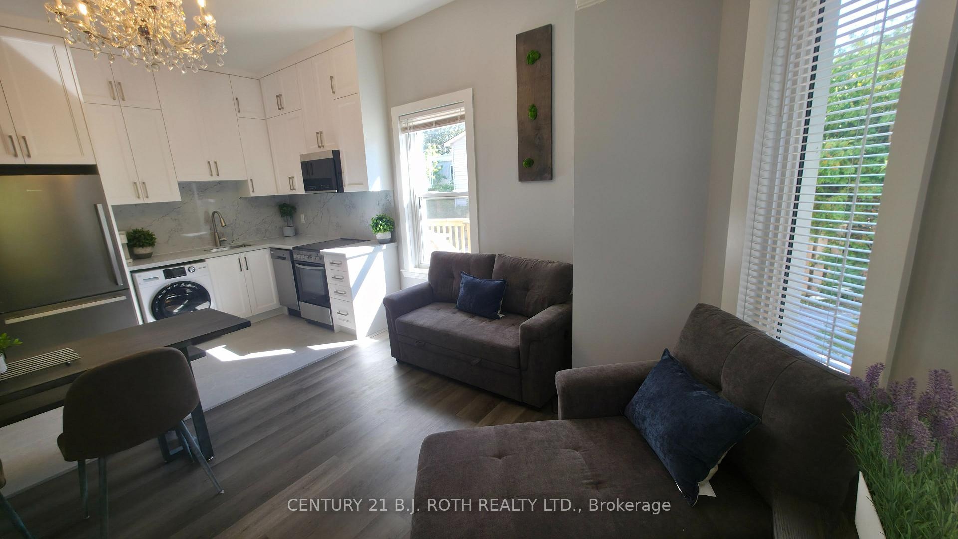 Never lived in, new everything, bright, fully furnished, modern 1-bedrrom apartment (no bed door) with high end luxury finishes. 3GB Fiber Wifi included. Stainless steel appliances including Dishwasher and Washer/Dryer Combo. The bathroom and entrance have in-floor heating for your comfort. Air Conditioner. Huge, fully equipped kitchen with all dishes and cookware, including a kettle, toaster, etc. Elegant Quartz countertops & backsplash with undermount sink. Queen bed with never used sheets/linens and huge under bed storage drawers. The couch pulls out to a double size bed. Wall mounted 4k smart TV with Netflix & Prime included, HDMI in your devices. Parking available if required. Located north of Coldwater in a beautiful family friendly neighbourhood. Perfect location, just steps from downtown, 600 metres from Memorial Hospital, walking distance to Couchiching Beach. Main transit line on Coldwater makes getting around quick & easy. Why fully furnish an apartment yourself when you can move in here and save 10s of thousands. If you're looking for simplicity, high end comfort in a great location, this could be the place for you. Host / owner has vast experience working with Professional, Corporate, and senior clients. The building has 6 apartments in total which could be packaged together for a client looking for multiple units. Please note appliances will be maintained for the entire tenancy. All other furnishings will not be replaced as they age out of their useful life. Please ask for specific details. Rent plus electric plus parking if needed.