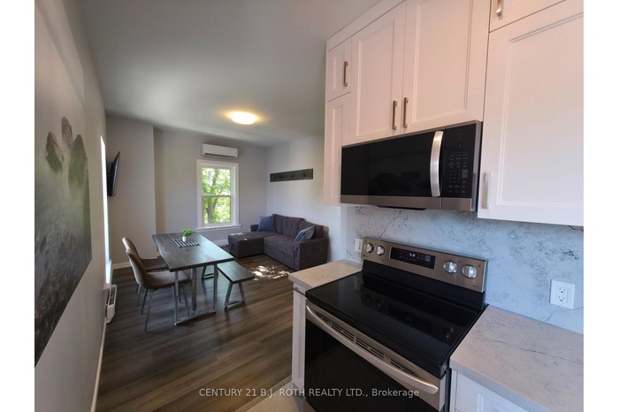 Never lived in, new everything, bright, fully furnished, 1-bedrrom apartment with high end luxury finishes. 3GB Fiber Wifi included. Stainless steel appliances including Dishwasher and Washer/Dryer Combo. The bathroom and entrance have in-floor heating for your comfort. Air Conditioning. Huge, fully equipped kitchen with all dishes and cookware, including a kettle, toaster, etc. Elegant Quartz countertops & backsplash with large undermount sink. Queen bed with never used sheets/linens and huge under bed storage drawers. The couch pulls out to a double size bed. Wall mounted 4k smart TV with Netflix & Prime included, HDMI in your devices. Parking available if required. Located north of Coldwater in a beautiful family friendly neighbourhood. Perfect location, just steps from downtown, 600 metres from Memorial Hospital, walking distance to Couchiching Beach. Main transit line on Coldwater makes getting around quick & easy. Why fully furnish an apartment yourself when you can move in here and save 10s of thousands. If you're looking for simplicity and high end comfort in a great location, this could be the place for you. Host / owner has vast experience working with Professional, Corporate, and senior clients. The building has 6 apartments in total which could be packaged together to a client looking for multiple units. Please note appliances will be maintained for the entire tenancy. All other furnishings will not be replaced as they age out of their useful life. Please ask for specific details. Rent plus electric and parking if needed.