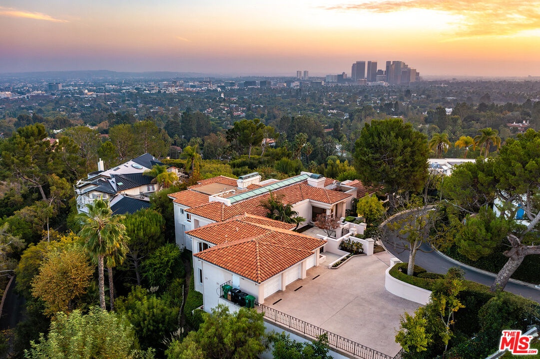 Commanding a premier position atop a coveted promontory on "Billionaire's Row," this private nearly acre estate, designed by the esteemed architectural firm Benton, Park & Candreva, is a warm contemporary villa showcasing extraordinary panoramic views from Century City to the Pacific Ocean. A gated front courtyard leads to a grand entrance with soaring ceilings that opens to a luminous living room framed by walls of glass, seamlessly blending indoor elegance with outdoor splendor. The step-down media lounge, complete with a refined wet bar and curated art display, flows effortlessly into the formal dining room crowned by a radiant skylight. The primary suite serves as a serene retreat with a spa-inspired bath, dual walk-in closets, and direct access to tranquil outdoor terraces. The expansive dine-in kitchen balances form and function, while the lower level offers a mini kitchen, additional living areas, four guest suites, a temperature-controlled wine cellar, and ample storage. Outside, the resort-style pool, al fresco dining areas, and the signature "Summer Entrance" create a dramatic yet inviting atmosphere for grand-scale gatherings. Moments from The Beverly Hills Hotel and Rodeo Drive, this exceptional property presents a rare opportunity to reimagine and update a timeless architectural estate into a bespoke dream home, set against one of the most spectacular backdrops in Los Angeles.
