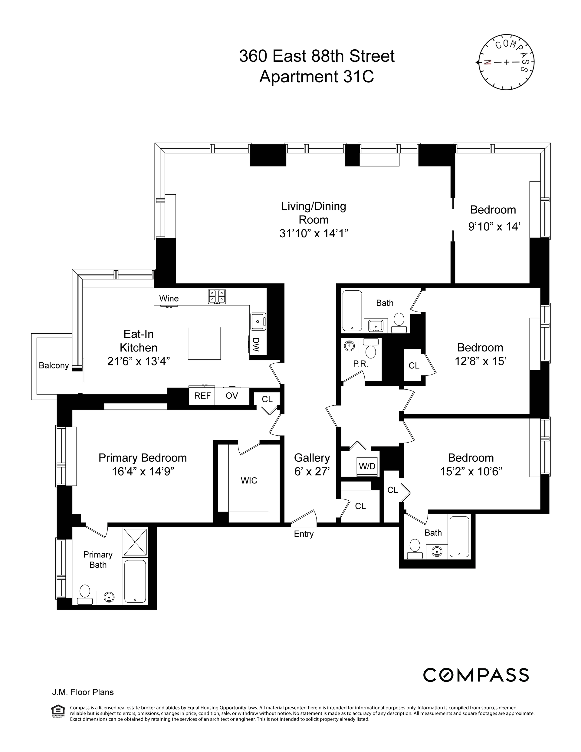 The extra large eat-in kitchen faces east and north. The balcony off the kitchen allows you to bask in sunrises or sunsets, with views that stretch from the river to the west side. This is truly a suburban kitchen, with grand dimensions and featuring two ovens, an island, and fantastic storage. The top-of-the-line appliances include a Viking range, stovetop, hood, two ovens, and a microwave. There is also a Subzero wine cooler and refrigerator.