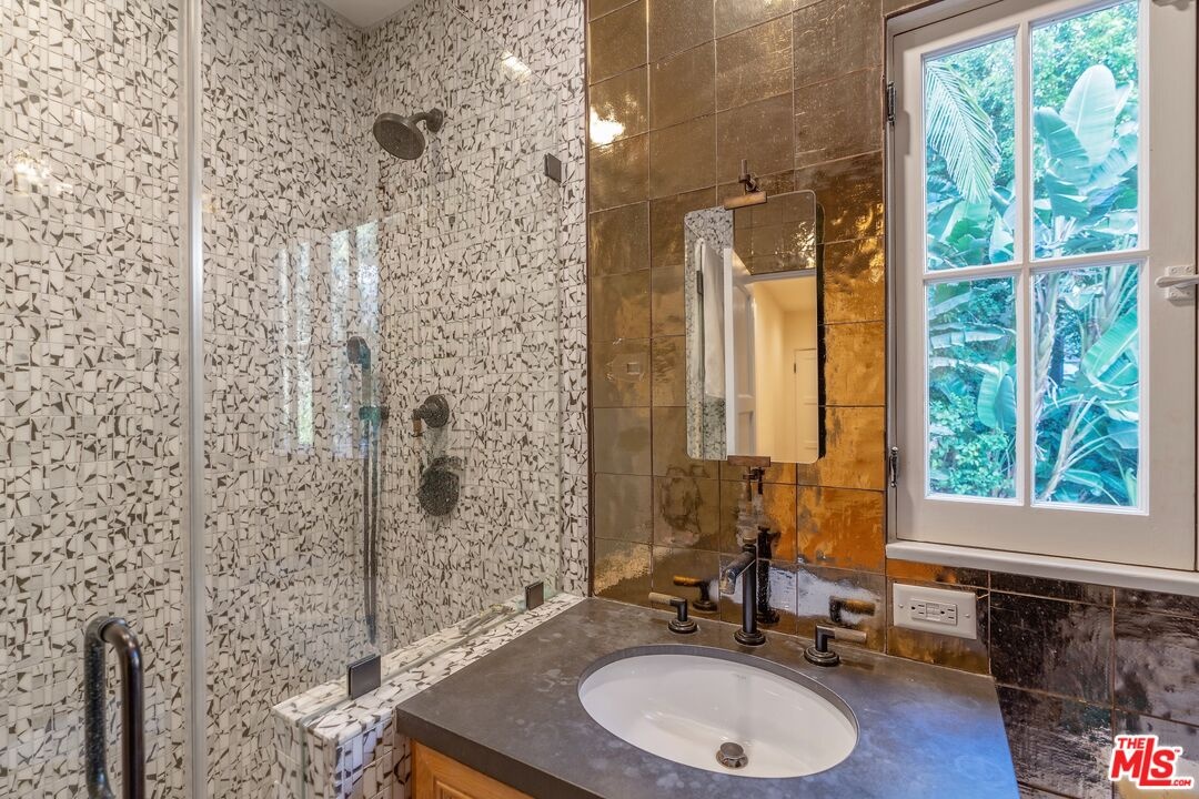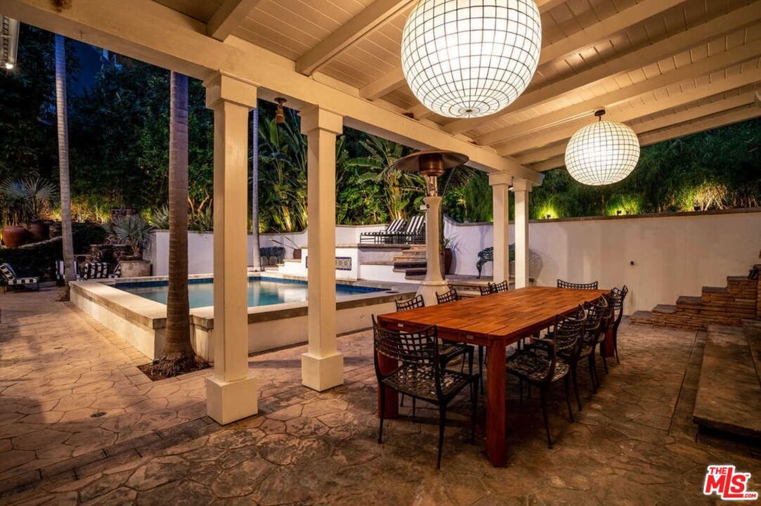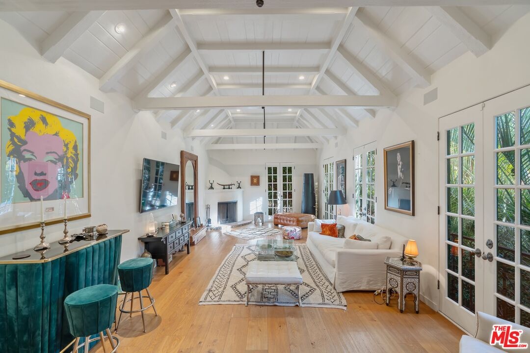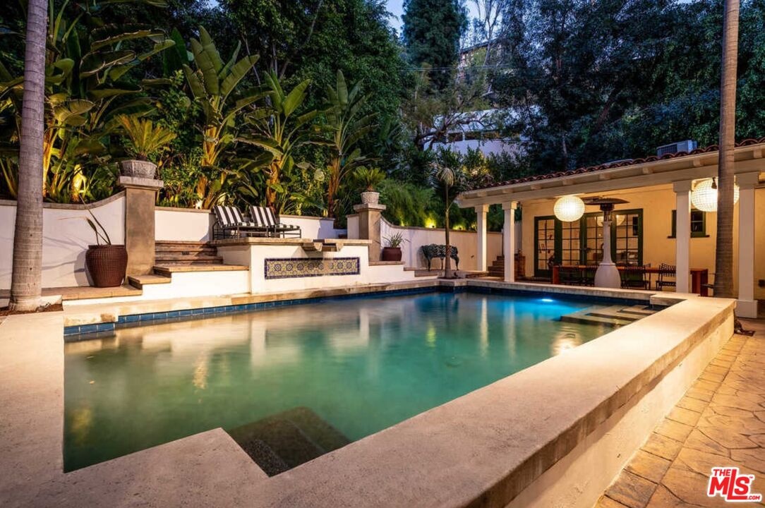 Featured in Architectural Digest and rich with Hollywood history, this reimagined gated and tastefully FURNISHED (unfurnished optional) Spanish villa seamlessly blends modern amenities with timeless old-world charm. Nestled in the hills above the Sunset Strip, the 3-bedroom + Office (4th bedroom), 4-bathroom home is thoughtfully positioned at the heart of the property, offering lush greenery views from every window and French door. The separate 1-bedroom, 1-bathroom guest studio ensures privacy and tranquility for visitors. Set back from the street, the home welcomes you into a formal entryway, leading to an elegant dining room and a living room adorned with beamed vaulted ceilings, a wood-burning fireplace, and an abundance of natural light. The chef's kitchen boasts Caesarstone countertops, a breakfast bar, and a cozy dining area overlooking the backyard, complete with a sparkling pool and spa. Outdoor patios and a covered dining area with heaters create the perfect setting for entertaining. Upstairs, the luxurious owner's suite features Romeo and Juliet balconies, an oversized dressing room, and a spa-inspired bathroom with designer tiles and fixtures. Beautifully designed secondary bedrooms and bathrooms highlight meticulous attention to detail throughout. Additional features include premium fixtures by Waterworks, Lefroy Brooks, and Kallista, Ann Sacks tiles, an outdoor fireplace, surround sound, security cameras, and Nest technology. Parking is a breeze thanks to the 2-car garage and additional off-street parking for 2 cars. This home is an entertainer's dream, offering both sophistication and serenity in a highly coveted location. Minimum Lease term to be 13 months.