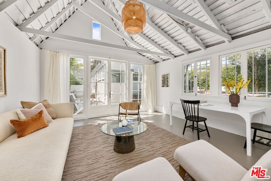 The Edwin L. Stanton Residence by Stanton, Reed & Hibbard (Hotel Figueroa DTLA). Located on a quiet, tree-lined street in the Windsor Square area (geohublacity.org) of Hancock Park, this gated English Cottage is steeped in charm. The home is nicely framed by a landscaped front garden and is surrounded by tall hedges offering privacy from the street.Abundant light throughout the house is one of its most endearing features. A formal living room with hardwood floors, a decorative fireplace, and French doors that open to a front patio with rose garden views add to its easy flow. A den is located just off the living room, providing additional space for daily living or entertaining. This could easily be enclosed to form 3rd bedroom or office. Bathed in natural light, the kitchen includes a classic built in breakfast nook, Sub-Zero and Wolf stainless steel appliances, ample cabinetry, and a conveniently adjacent laundry room. The hedged backyard is private and landscaped, with a large sun deck suited for relaxing or outdoor dining. A detached air conditioned flex space is entered thru French doors has been used as an office, gym, or studio.Experience some of L.A.'s best architecture as you make your way thru this idyllic neighborhood to Larchmont Village, a picture perfect street lined with local restaurants and shops. And, don't forgot about the local farmer's market on Wednesdays and Sundays. This home presents a great opportunity to live in a well-established neighborhood with classic architectural character. Square footage of the home is 1,472 and the bonus space is 288.