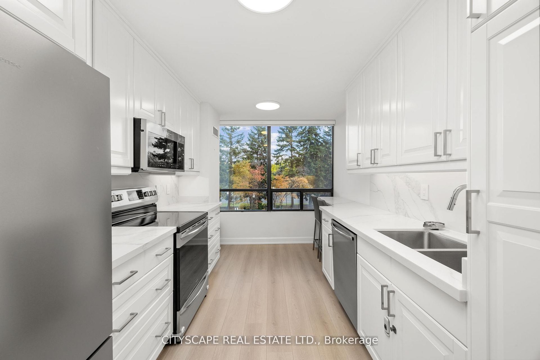 Step into luxury with this rarely offered split-bedroom suite, perfectly combining style, comfort, and functionality. Designed with thoughtful flow, the home features a formal dining room, a bright eat-in kitchen, and an open concept living area ideal for relaxing or entertaining guests. Renovated from top to bottom, every detail has been elevated - from the designer kitchen with stainless steel appliances to the modernized bathrooms, new flooring, and potlights throughout. Extra conveniences include an in-suite storage room AND an additional locker near your parking spot. With all utilities included, enjoy truly carefree living. This highly desirable building also offers top-tier amenities, including an outdoor pool, tennis court, Shabbat elevator and 24-hour gatehouse security. A beautifully updated home in a prime location - this one has it all!