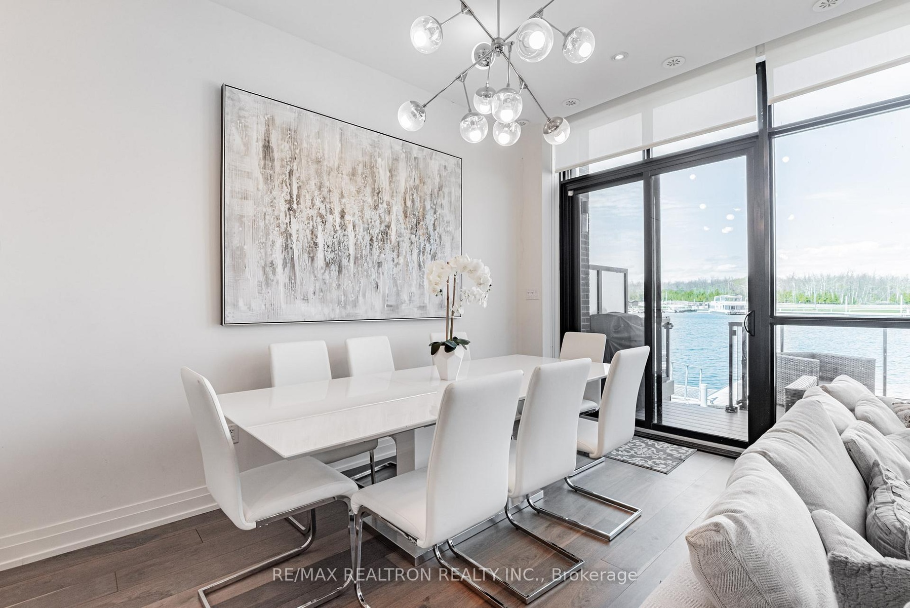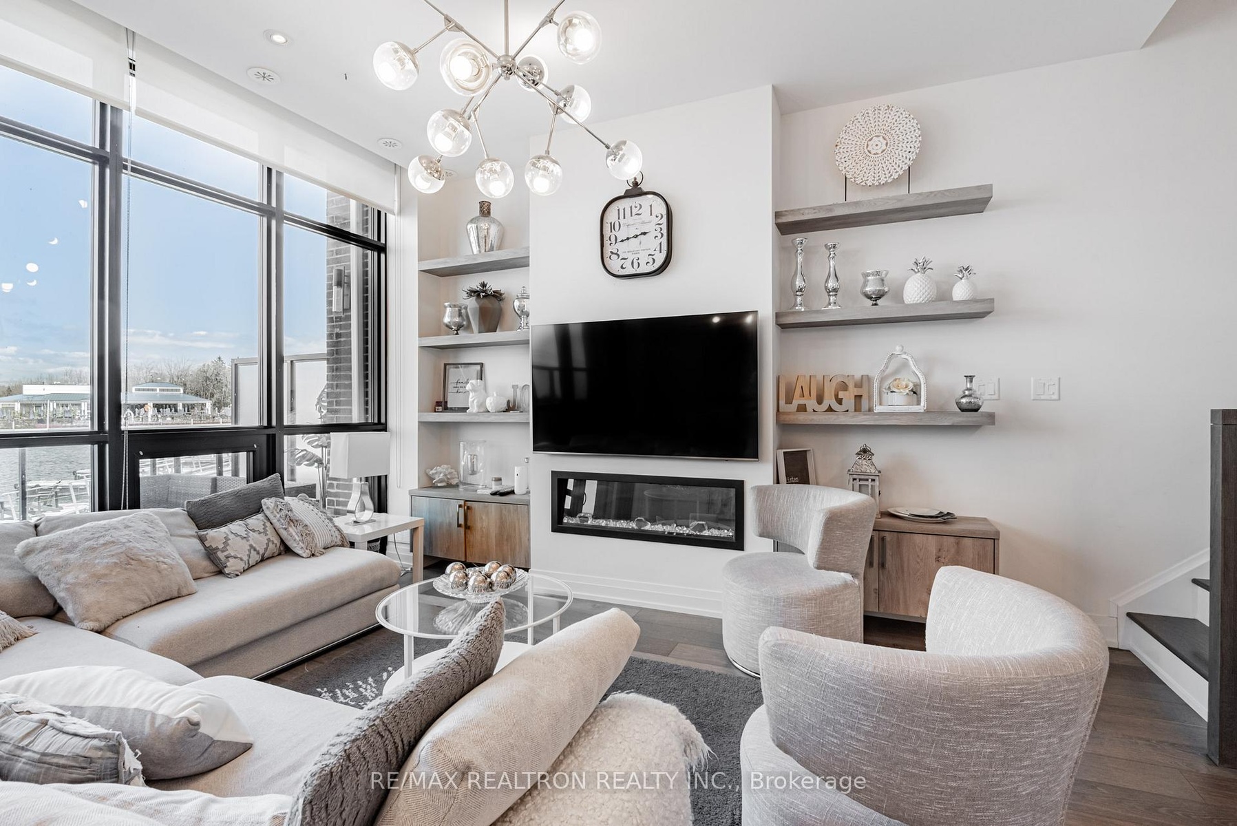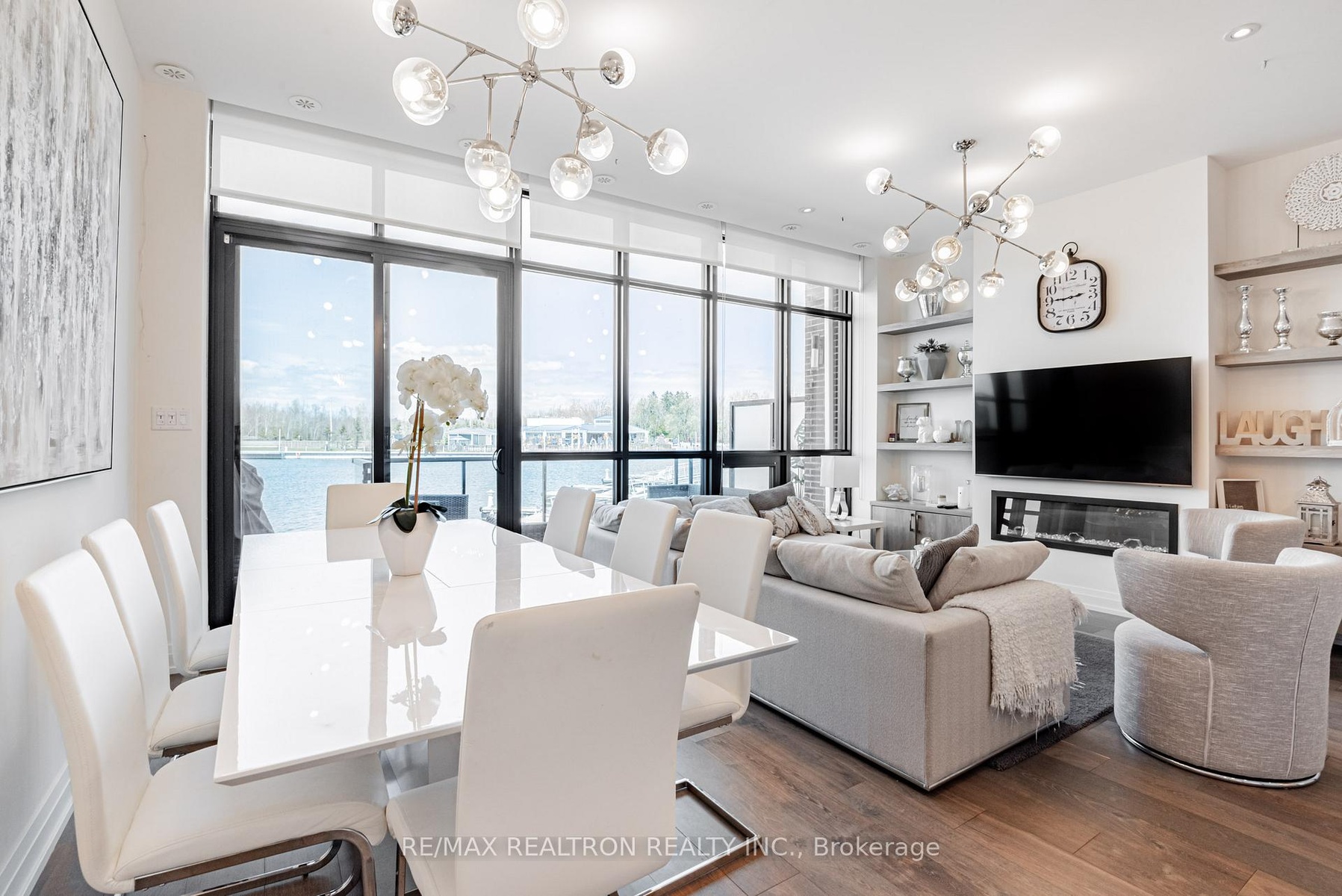 Marina Town With Premium Views! An exceptional opportunity to own in one of the most sought-after locations at Friday Harbour! This beautifully designed MT2 model townhome offers unobstructed views of the Beach Club, treed areas, and golf course, delivering the perfect blend of luxury and lifestyle. The interior is finished to an exceptional standard, featuring vintage solid sawn hardwood floors throughout, a sleek Paris kitchen with full-height upper cabinets, an extended centre island, flush-mounted fridge, upgraded exhaust fan, and elegant roller blinds throughout. Enjoy the custom designer fireplace, rough-in for CAT6 and ceiling speakers, and two outdoor spaces a main floor terrace and an upper balcony overlooking serene, open views. Ready for year-round enjoyment this is resort living at its finest! ***EXTRAS*** Lifestyle investment: Lake Club Monthly $262.47, Annual Resort Fee $3,300.00 and Basic Monthly Fee $288.82. Buyer to pay 2% plus hst FH association fee.