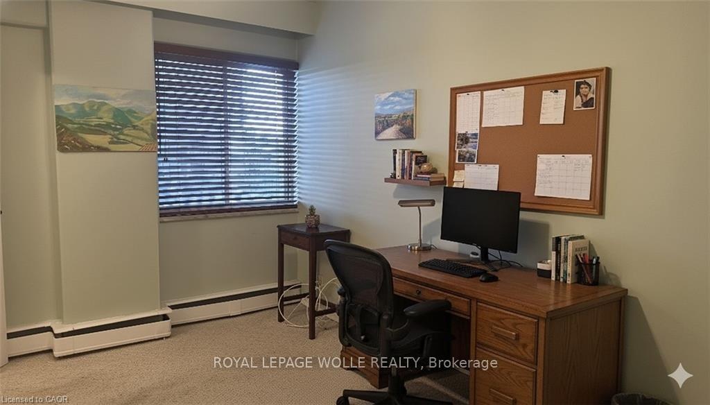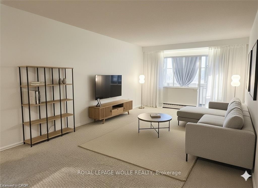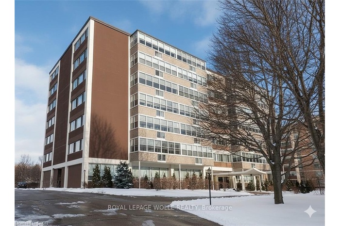 Bright and spacious 2-bedroom condo in the heart of Waterloo. This 6th-floor corner unit features an open layout with plenty of natural light. The large semi-enclosed sunroom is ideal for relaxing or use as an office. The kitchen opens to a generous dining area, and the primary bedroom includes built-in cabinetry and a closet. The second bedroom offers a walk-in closet for extra storage. The unit includes in-suite laundry for added convenience. Located directly across from Westmount Place Mall, this condo is steps from bus routes, the LRT, and just minutes from Uptown Waterloo. Close to shopping, transit, and universities, it's perfect for first-time buyers, investors, or downsizers. Condo fees include all utilities, heat, hydro, and water, making it a convenient, move-in-ready option. Great value and potential with some cosmetic upgrading. Interior photos are virtually staged.