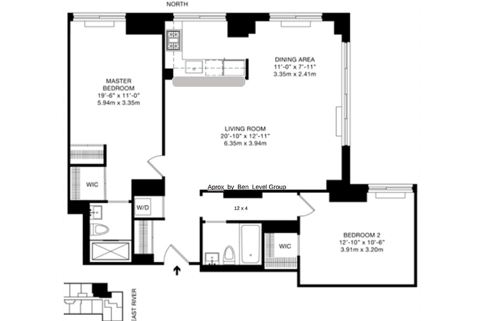 High end open layout split 2 bedroom with formal dining area and open Kitchen (bar-height counter).