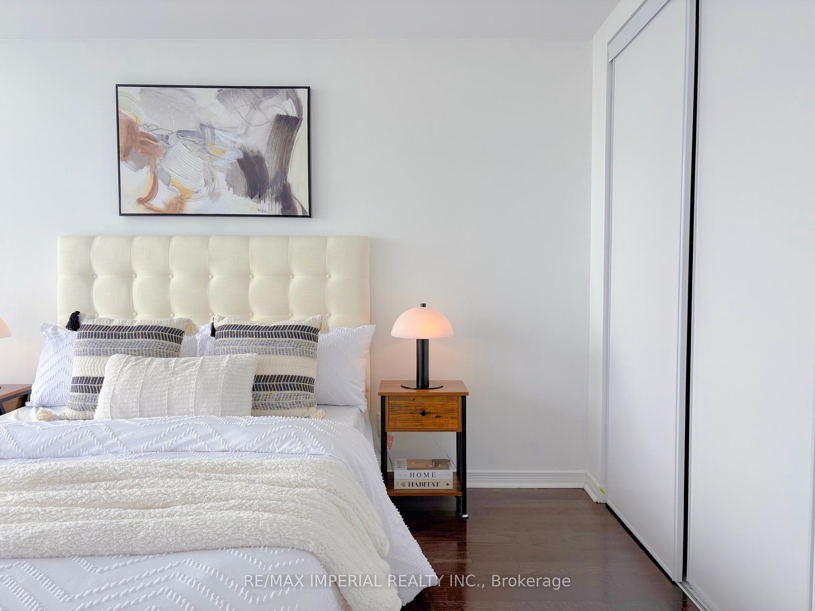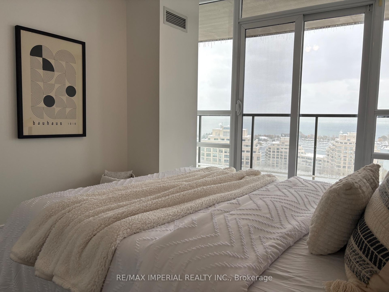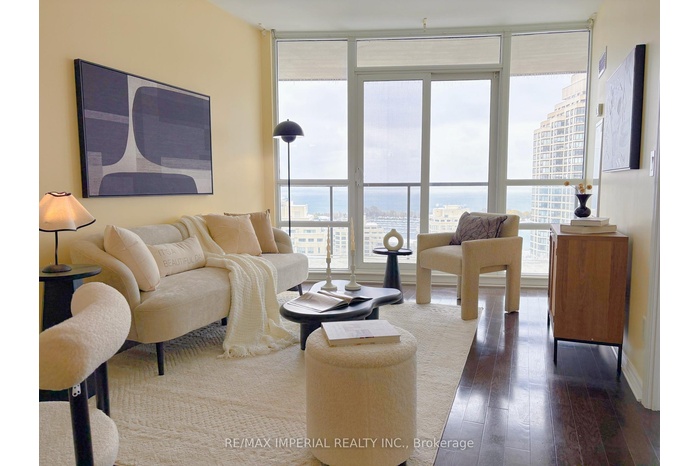 Live By The Lake! Experience stunning south-facing views with sunlight from morning to sunset. Enjoy breathtaking panoramas from East Toronto's downtown skyline to West Mississauga's city lights. Located in the most desirable area of Etobicoke's Lakeshore community, just steps to parks, Humber Bay, waterfront trails, restaurants, supermarkets, schools, TTC, and all essential amenities. This spacious 1+1 bedroom unit (~686 sq.ft.) features an open-concept layout, hardwood floors, and a modern kitchen with upgraded countertops. The den offers flexible space-perfect as a home office or second bedroom. Both the primary bedroom and living room walk out to a large balcony, ideal for relaxing or outdoor storage. The walk-in closet provides excellent storage capacity. Enjoy resort-style living with 24-hour concierge, two full gyms, an indoor pool, and a rooftop garden with BBQ area.