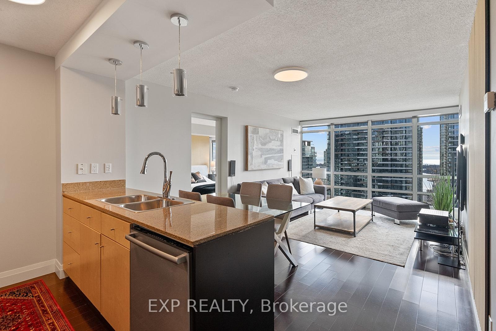 FURNISHED MID-LONG Term Rental! Live Exceptionally in the Heart of Toronto!Experience luxury and convenience in this executive 2-bedroom + den suite perfectly situated on the vibrant Front Street, just east of Spadina. This sun-soaked, south-facing unit offers a smart split-bedroom layout and breathtaking lake views from every room. Second Bedroom to be set up as an office OR a 2nd Bedroom, which ever you prefer!Designed for modern city living, the home features an upgraded kitchen, two full bathrooms, a parking space, and a locker.Enjoy resort-style amenities including a pool, fitness centre, recreation room, 24-hour concierge, and more.Live life to the fullest in one of Toronto's most desirable downtown locations!