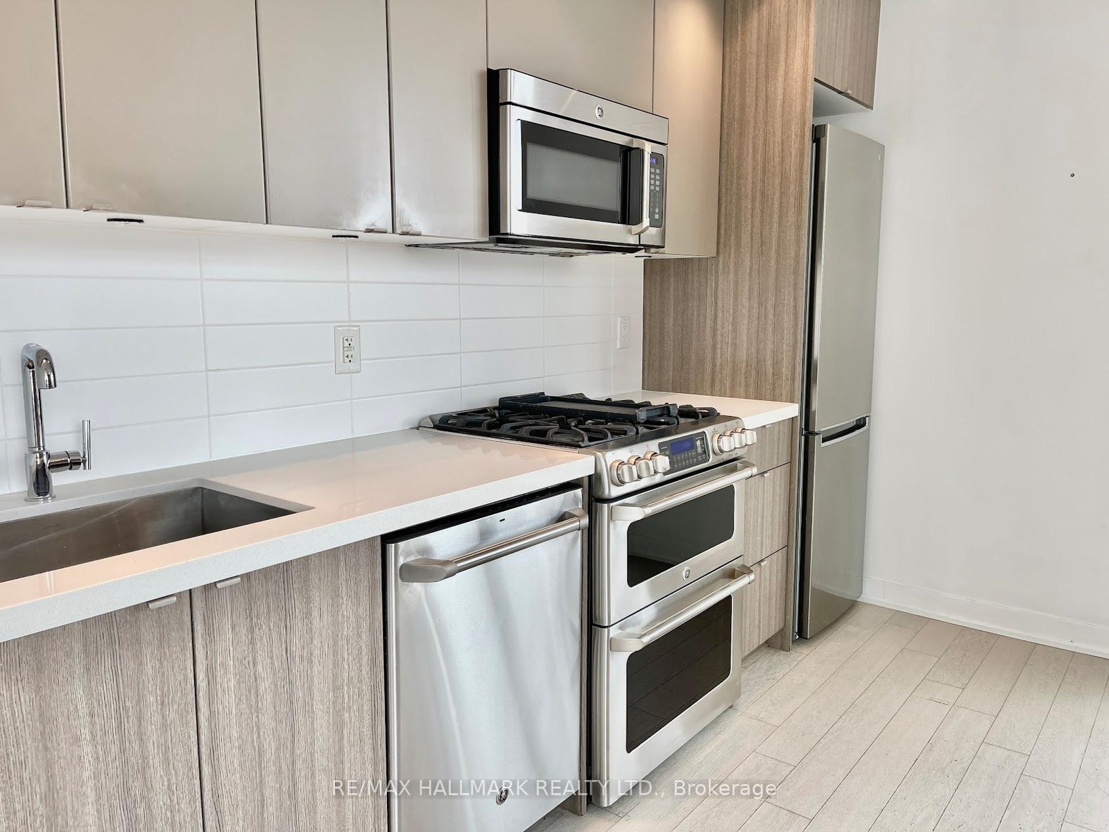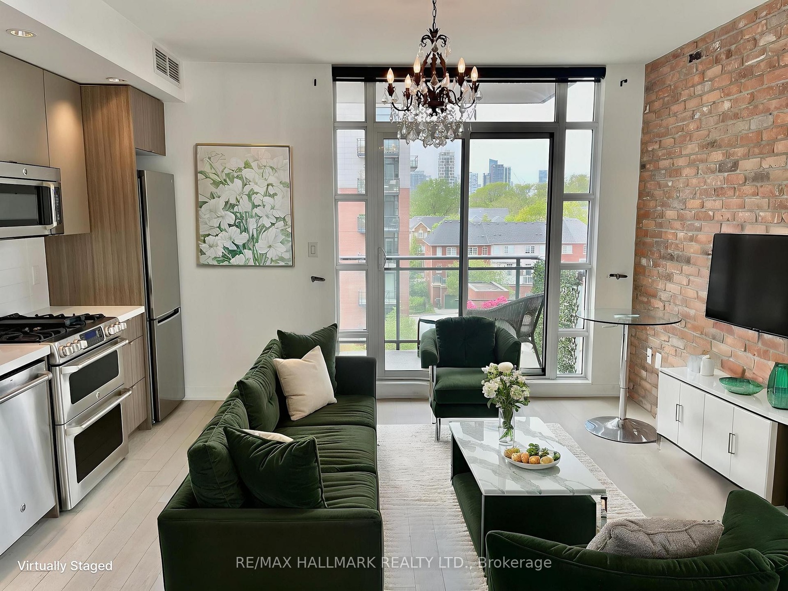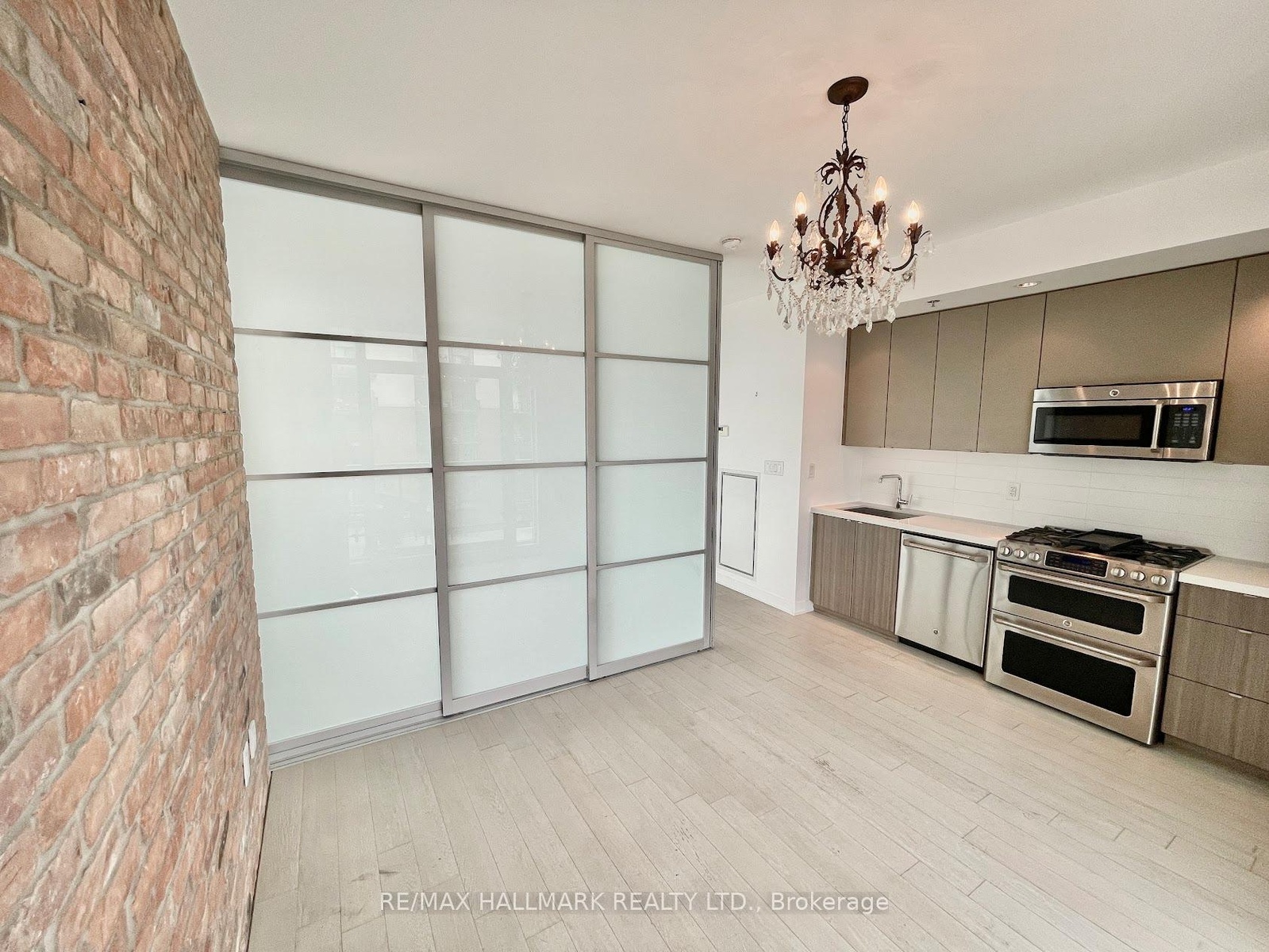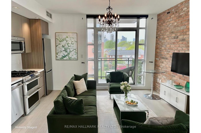 Experience loft living at Showcase Lofts in the heart of Leslieville. This sleek 1-bedroom suite blends exposed brick charm with a clean, modern open-concept layout. The kitchen features full-size stainless steel appliances, stone counters, and a gas cooktop-perfect for anyone who loves to cook. Hardwood floors run throughout, and the large bedroom window fills the space with natural light. You'll also find a spacious closet, in-suite laundry, a locker, and parking included. Enjoy a generous balcony overlooking the quiet courtyard-ideal for morning coffee or evening drinks. Step outside and you're moments from Queen Street's best cafés, restaurants, and transit. A stylish, move-in-ready home in one of Toronto's most vibrant neighborhoods. *Some photos have been virtually staged*