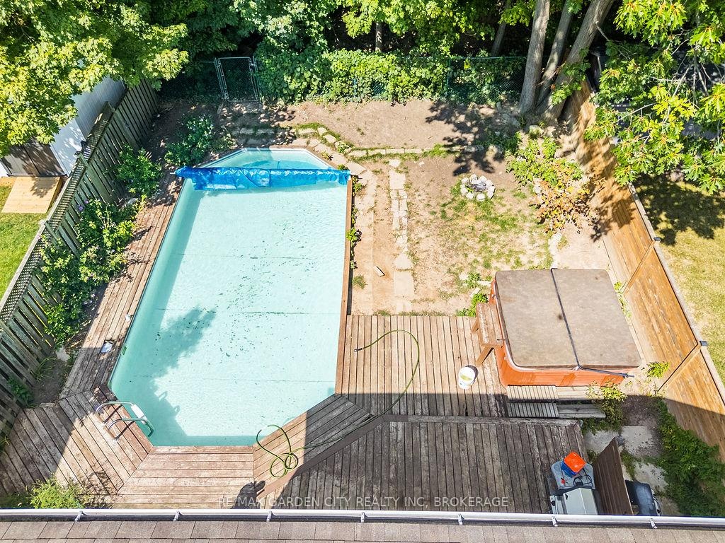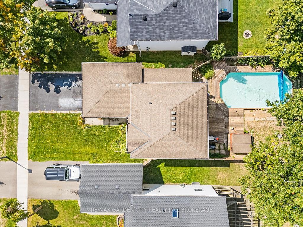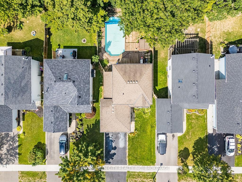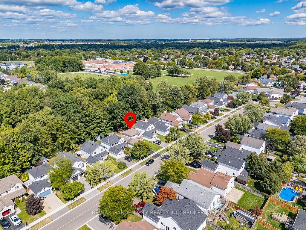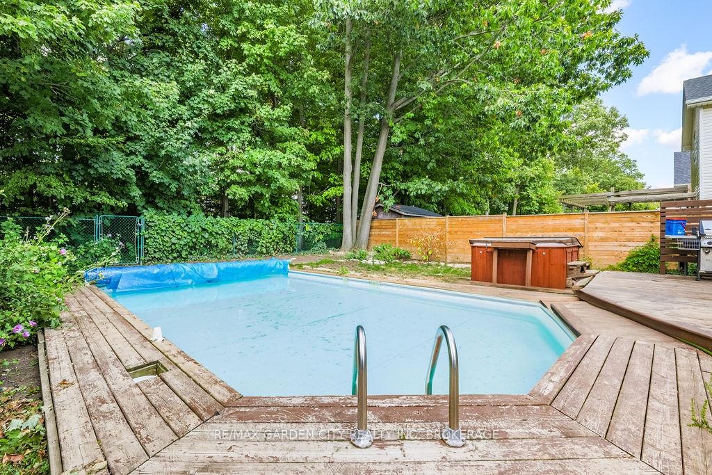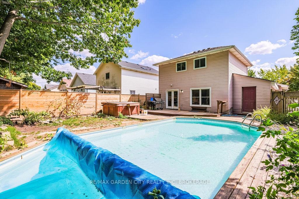 Welcome to this charming three-bedroom, one-and-a-half-bathroom two-storey home located in the quiet town of Caledonia. Nestled on a private lot backing onto a school and wooded area, this property provides a rare sense of privacy with no rear neighbours. The main level features a bright eat-in kitchen with white cabinetry and granite countertops, opening into a spacious living and dining area highlighted by a cozy gas fireplace and French doors that lead to the backyard. Upstairs, the primary bedroom offers a large closet, complemented by two additional bedrooms and a four-piece bathroom. The finished basement extends the living space with laminate flooring and a second gas fireplace, creating a comfortable setting for relaxation, gatherings, or a home office. Outdoors, enjoy your own retreat with a 15x30 chlorine pool, hot tub, and forested views that set the tone for entertaining or quiet evenings at home. A heated double-car garage adds practicality with inside entry, backyard access, a gas heater, and a bonus storage or workshop room behind the garage, providing excellent space for projects year-round. Located within walking distance to schools, parks, shopping, and community amenities, this home offers a blend of comfort, functionality, and lifestyle in a sought-after neighbourhood.