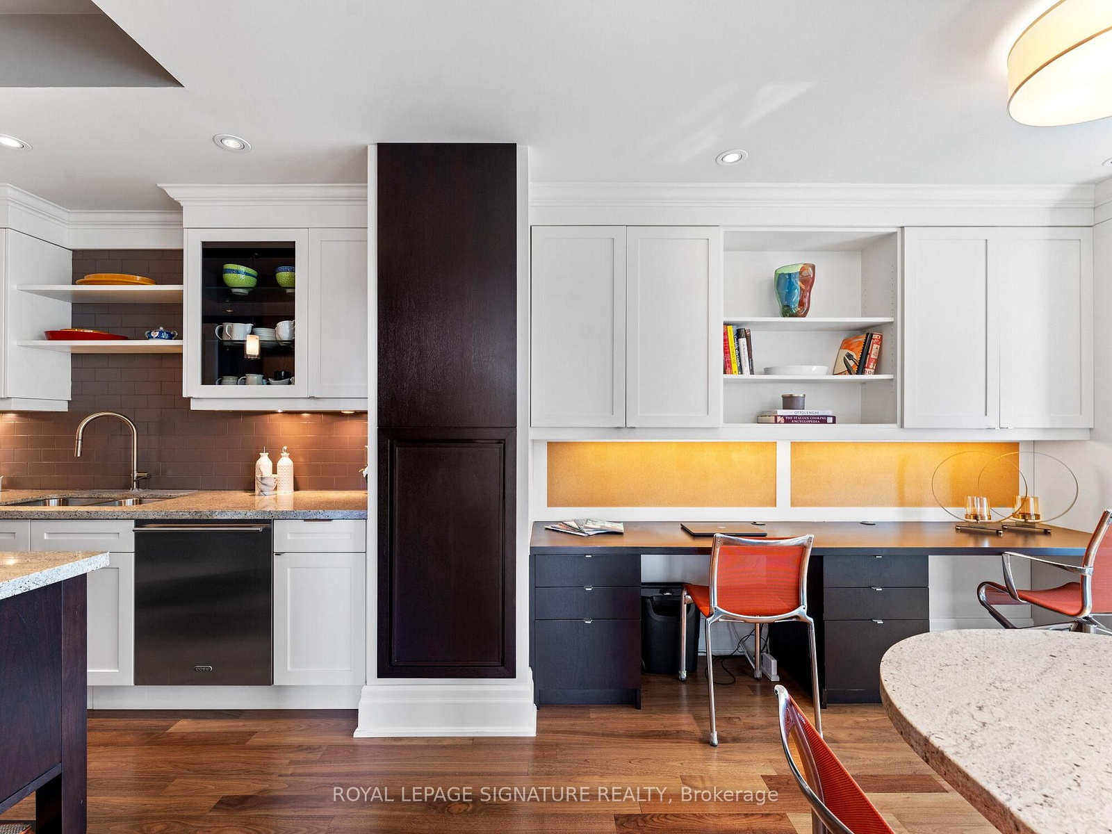 Welcome home to The Avenue, an exclusive address in one of Toronto's most prestigious and architecturally refined buildings. This stunning 2-bedroom + den corner suite is a masterclass in luxury and sophistication, fully designed from floor to ceiling by a prominent Toronto interior designer with an eye for timeless elegance and modern comfort. Step off your private elevator into a light-filled home offering sweeping, views of the city. With floor-to-ceiling windows and a private balcony, refined finishes and elegant details create a calm,sophisticated atmosphere above the city below. The custom Downsview kitchen is both striking and functional, equipped with top-of-the-line Wolf and Sub-Zero appliances. The open layout connects effortlessly to the breakfast nook and dining room, creating a warm and inviting flow throughout the living space. Walnut hardwood floors, with a fireplace made of birdseye maple.The spacious living room features a sleek gas fireplace encased in custom woodwork, and elegant finishes, ideal for hosting guests or enjoying quiet nights at home. Every corner of this suite has been thoughtfully curated, with luxurious materials, designer lighting, and custom built-ins that elevate the everyday. This is more than a residence it's a refined lifestyle in one of Toronto's most coveted buildings. A rare opportunity to own a one-of-a-kind home where luxury, location, and design come together flawlessly. Enjoy five-star concierge and valet service, along with world-class amenities. Ideally located just minutes from Yorkville,Forest Hill, and Yonge & St. Clair. This residence includes two premium parking spaces, aspacious locker, high-end built-in speakers, designer light fixtures, and top-tier appliances every detail thoughtfully upgraded for comfort and style.