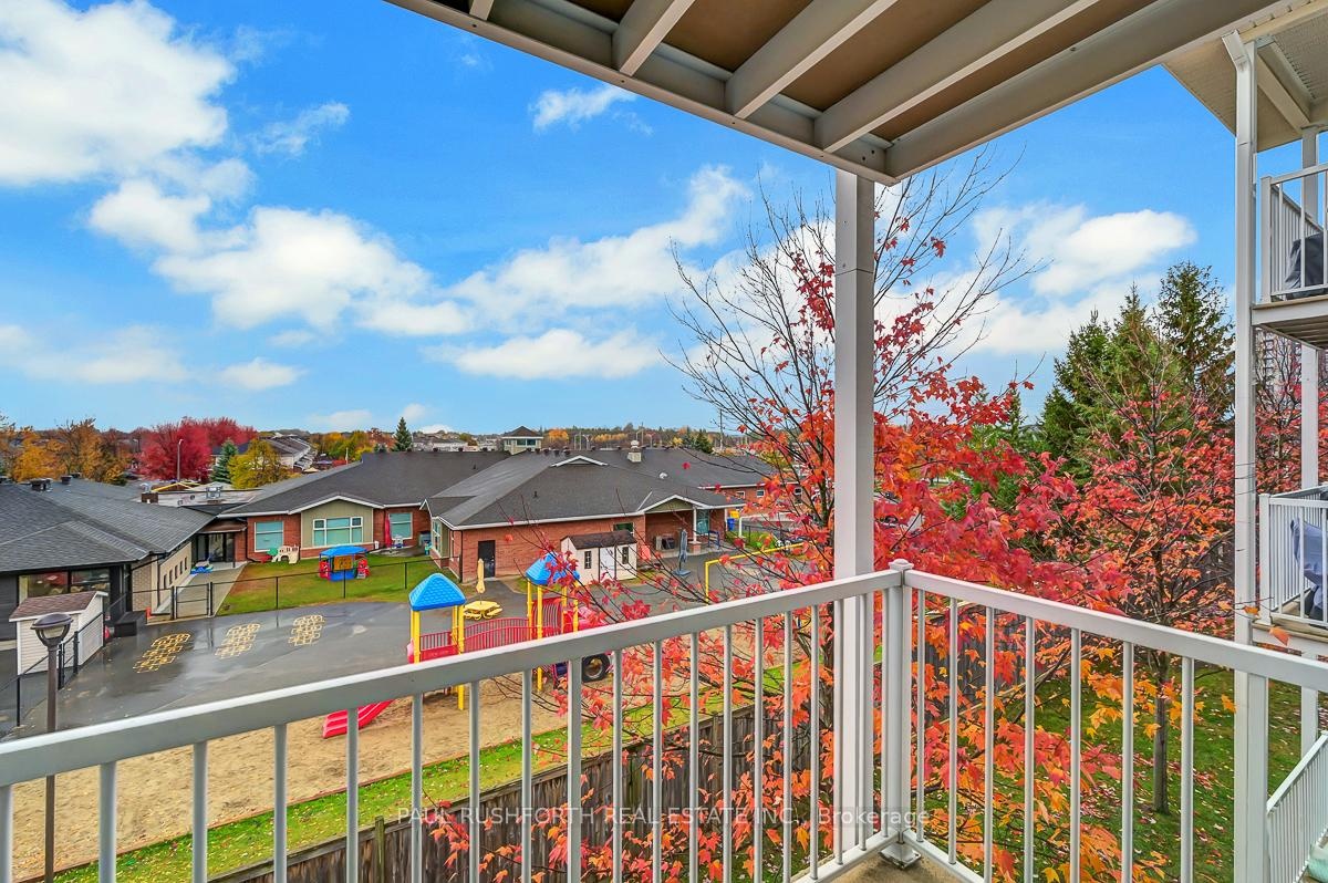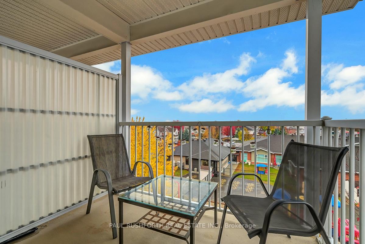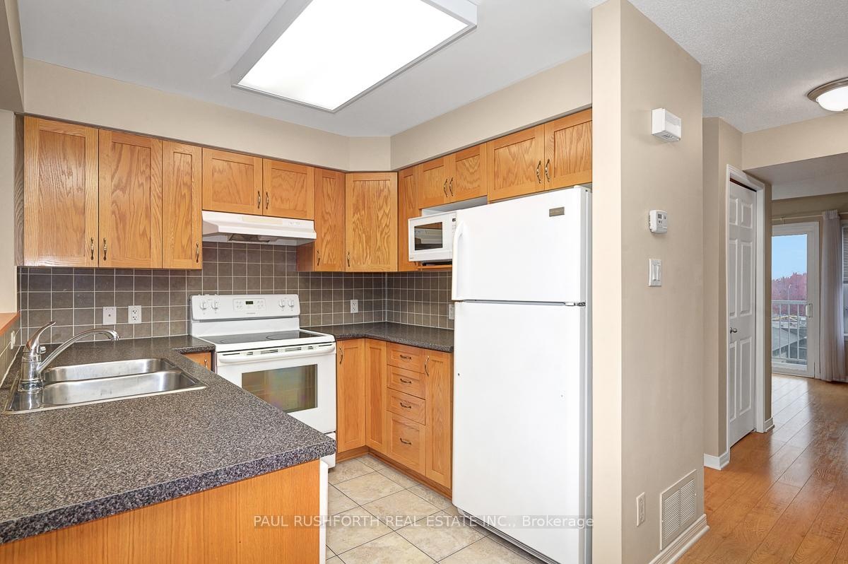 Welcome to this beautifully maintained upper unit offering 1,350 sq ft of bright, open living space! The inviting layout features a spacious living/dining area with large windows that flood the home with natural light, and a stylish kitchen complete with ample counter space and a convenient breakfast bar perfect for entertaining. A main floor den provides a quiet retreat or ideal home office. Upstairs, you'll find two generous bedrooms and a spa inspired cheater ensuite with a soaker tub and oversized shower. Enjoy your morning coffee on either of the two east facing balconies overlooking a peaceful natural setting. Ideally located just steps from shopping, parks, and transit. Includes air conditioning and one surfaced parking space. Move in ready and packed with value this one truly shines! Some photos have been virtually staged.