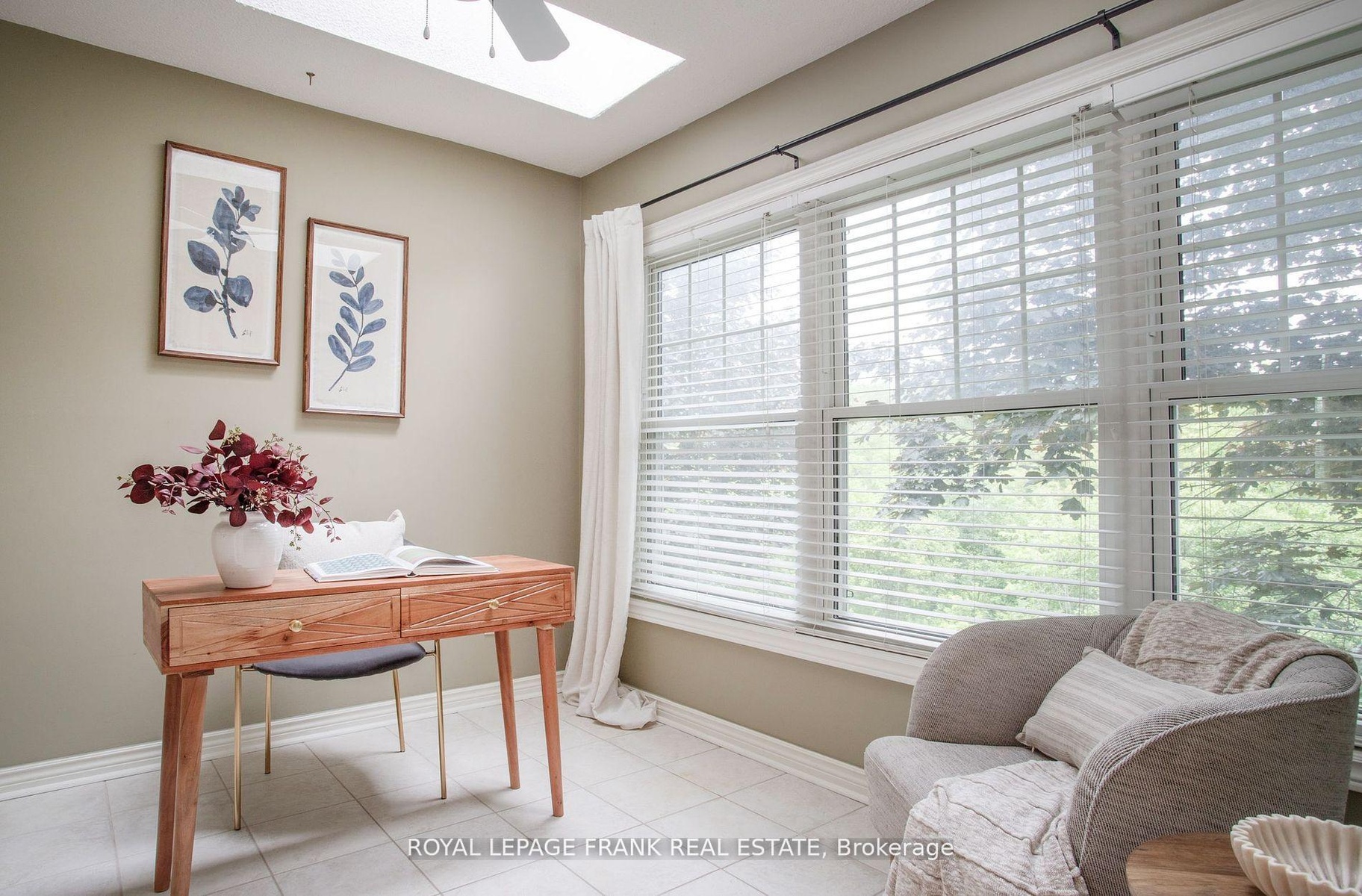 Welcome to the largest and most desirable unit in Parkwood Village. A spacious 1,790 Sq Ft, two storey condo townhouse offering unmatched privacy and tranquility. With no neighbours above and a premium location backing onto mature trees and greenspace, this home is truly unique. Inside, enjoy a well-maintained layout that blends classic charm with modern comfort. Updates include new second floor flooring and a newer furnace. The primary bedroom features a juliette balcony, a large walk-in closet, and a 4-piece ensuite with jacuzzi-style tub and walk-in shower. A loft space overlooking the kitchen is perfect for a home office or cozy family room. An additional spacious bedroom and convenient in-suite laundry complete the upper level. Excellent parking and access to scenic nature trails and tennis courts round out this peaceful, park-like setting. A rare opportunity to own the most spacious and private unit in this sought-after community - comfort, style, and serenity await.