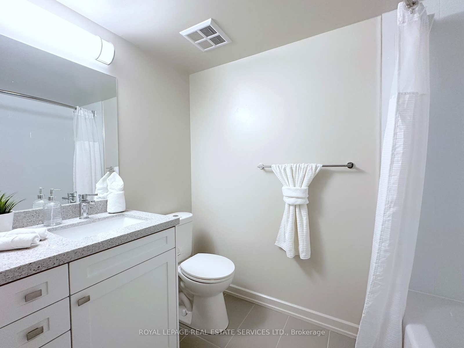 Welcome to The Brookbanks, a mature, well established building. This beautifully maintained 2-bedroom suite is freshly painted and move-in ready! Thoughtfully designed home features hardwood floors throughout, a private balcony with walkouts from both the primary bedroom and the living room. The modern kitchen is a true highlight, complete with stone countertops, sleek white cabinetry, stainless steel appliances, and recessed pot lighting. The primary bedroom offers a large closet and a private 4-piece ensuite, while the second bedroom is perfect for a home office, guest room, or cozy reading nook. Ideally located near the DVP, Hwy 401, and major transit routes, you'll have easy access to everything the city has to offer - from upscale shopping and dining at Shops at Don Mills to scenic walking trails at Brookbanks and Don River Park. Parking available to rent. Tenant to pay hydro.