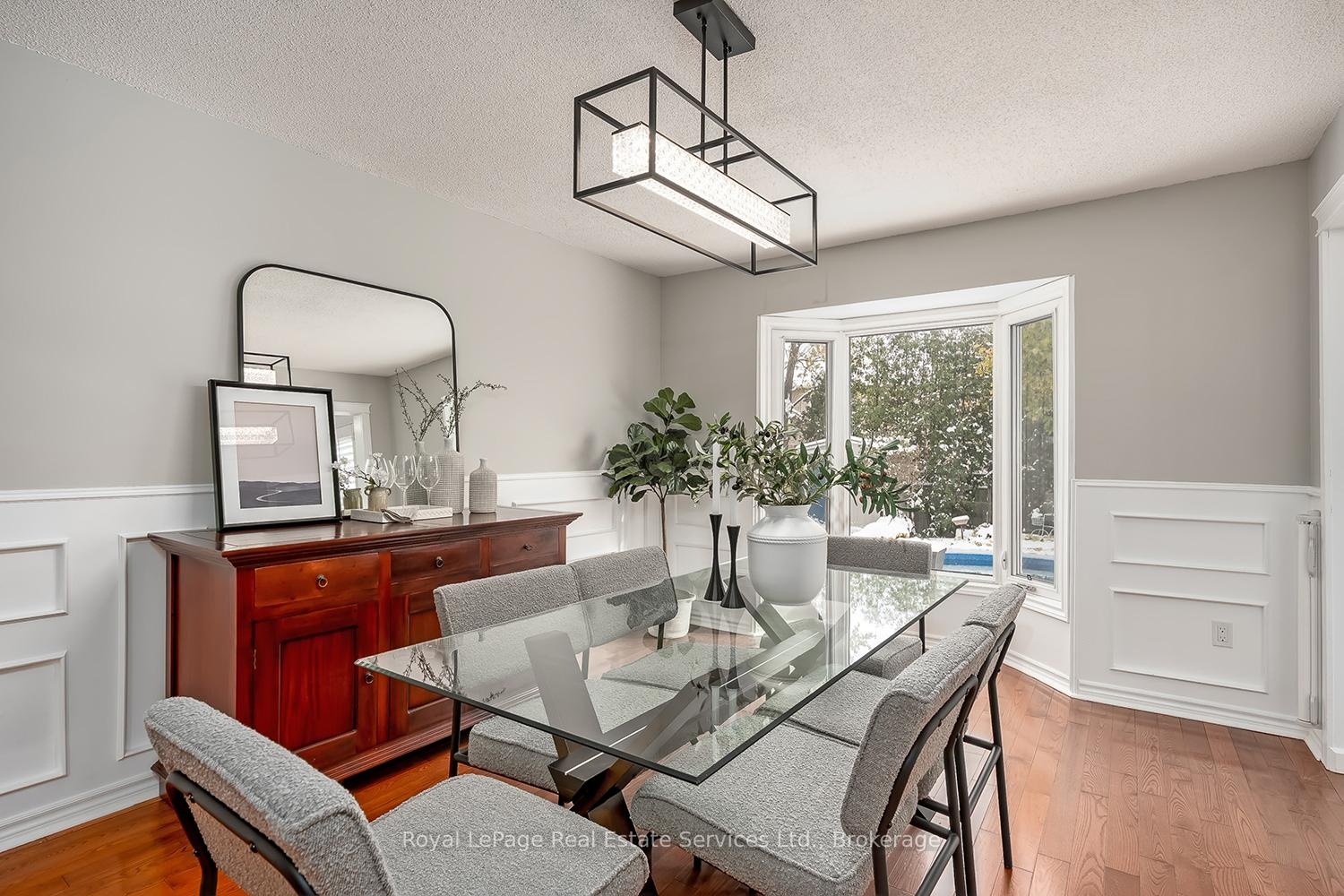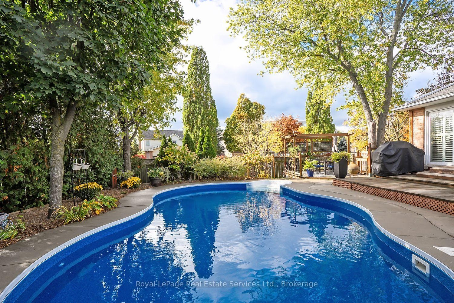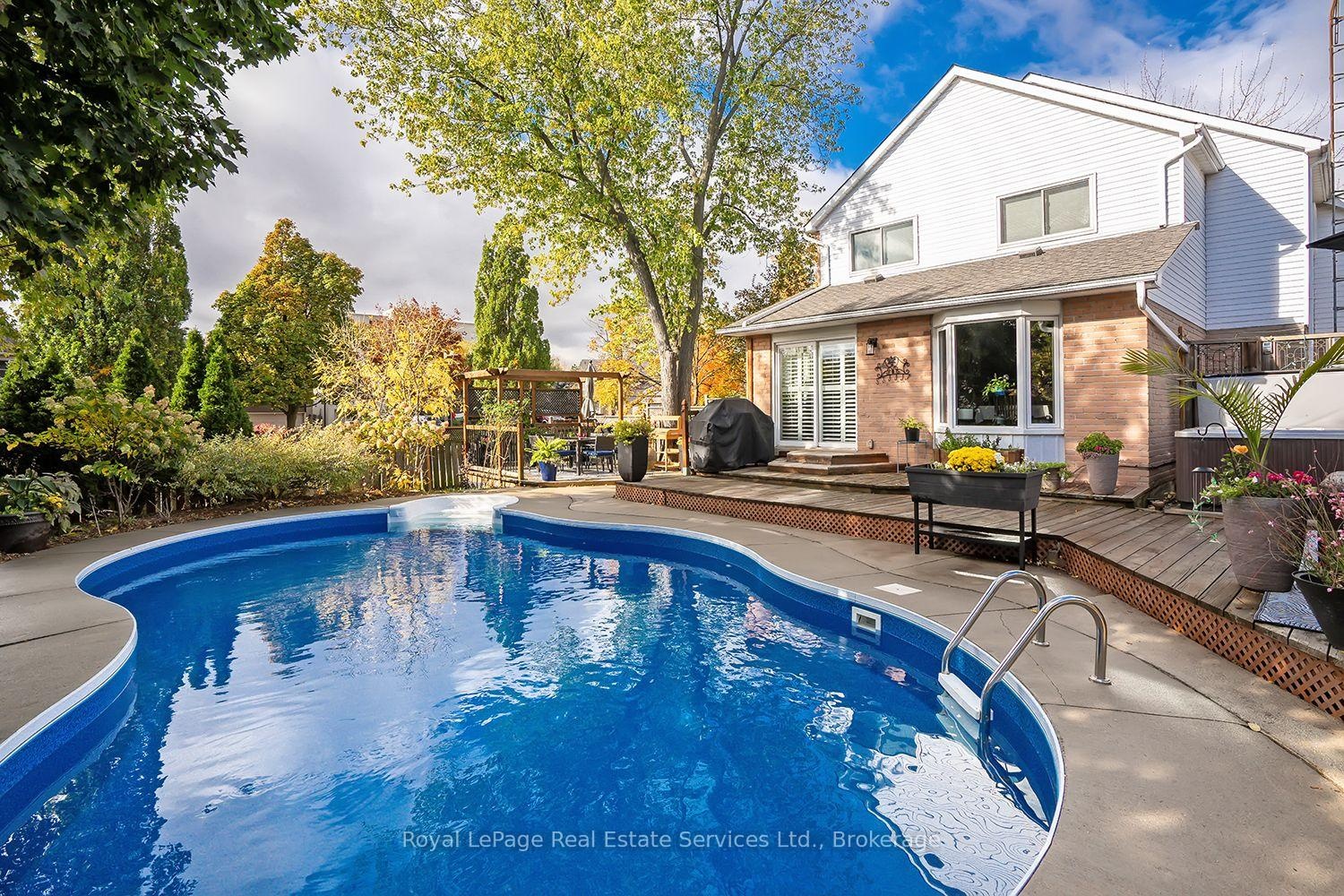 Wow! Fantastic opportunity to live in Sought after Glen Abbey! This Beautifully maintained Upgraded Detached Home w Backyard Oasis Awaits it's New Owner. This 3+1 Bed, 4 Bath Update Home w Finished Basement sits on a Mature Corner Lot. The main floor offers all the principle rooms w a spacious living room, sep. dining rm. w Bay window, Reno'd Eat-in Kitchen w direct access to back patio, Reno'd 2pc & a cozy Family Rm. w Gas F/P & custom Barn Beam Mantle. The 2nd floor offers an Oversized Primary Suite w Reno'd 4pc. Ensuite w custom sink area w B/I's, free standing soaker tub & custom Sep. Glass Shower, W/I closet & B/I closet system. 2 other good sized bedrooms w B/I wardrobes & a Reno'd 4pc. main bath w Double sinks & Glass Shower. The finished basement includes a spacious Rec. rm w a place for a home office also has plumbing for wet bar., 4th bedroom or sep. office space, currently used as a home gym, laundry rm., & 2 pc bath which can be converted to a 3pc. if desired. Enjoy the Private Backyard Oasis w in-ground kidney shaped pool, Hot Tub w extensive deck & multiple seating areas surrounded by perennial gardens & mature trees. Some features include Newer broadloom on Stairs (Nov.25'), Updated Light fixtures, Trim, Baseboards, Carpet free (except stairs), Renovated 4 Baths & Kitchen, Replaced windows, Roof '17, A/C '21, the list goes on. Walk to Monastery Bakery, Trails, Parks, Public Transit, Abbey Park School, Amenities & min. to Major HWY. Don't miss this amazing opportunity.