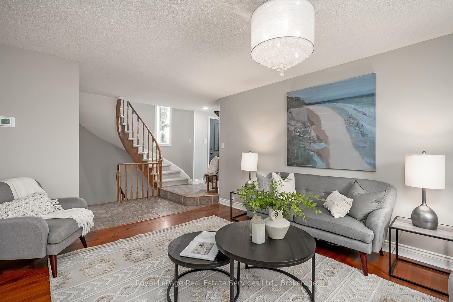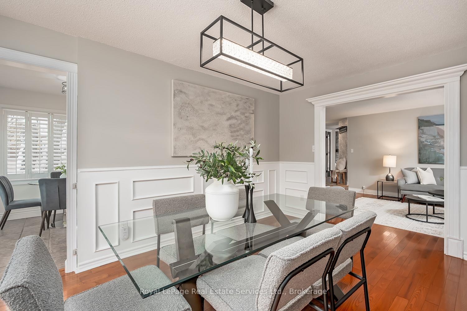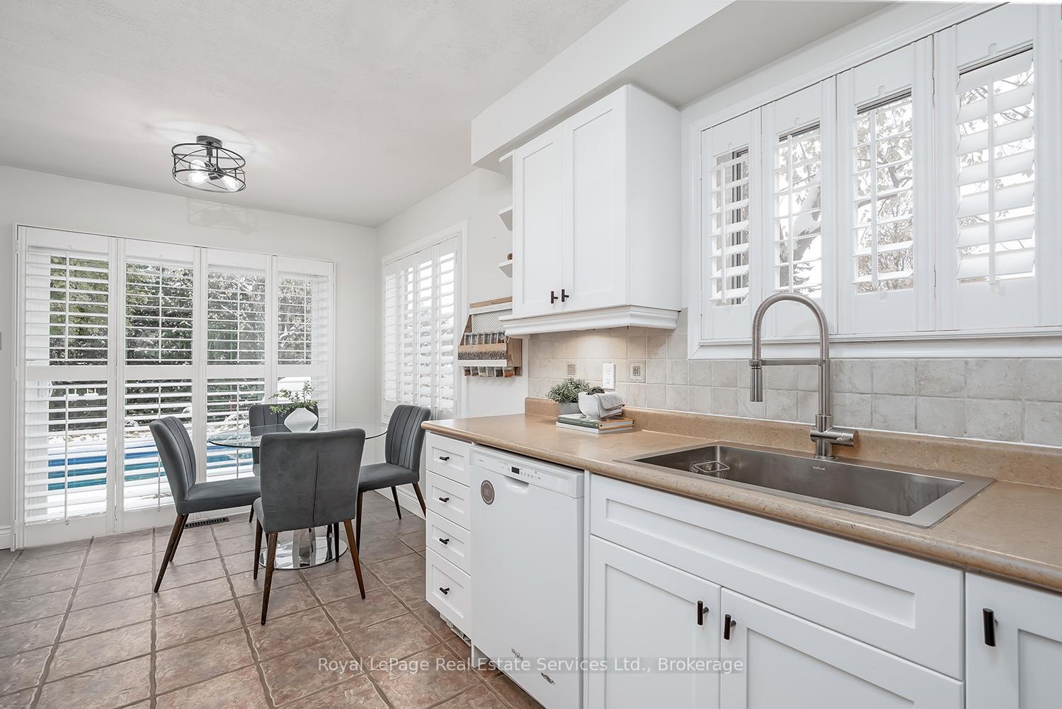 Wow! Fantastic opportunity to live in Sought after Glen Abbey! This Beautifully maintained Upgraded Detached Home w Backyard Oasis Awaits it's New Owner. This 3+1 Bed, 4 Bath Update Home w Finished Basement sits on a Mature Corner Lot. The main floor offers all the principle rooms w a spacious living room, sep. dining rm. w Bay window, Reno'd Eat-in Kitchen w direct access to back patio, Reno'd 2pc & a cozy Family Rm. w Gas F/P & custom Barn Beam Mantle. The 2nd floor offers an Oversized Primary Suite w Reno'd 4pc. Ensuite w custom sink area w B/I's, free standing soaker tub & custom Sep. Glass Shower, W/I closet & B/I closet system. 2 other good sized bedrooms w B/I wardrobes & a Reno'd 4pc. main bath w Double sinks & Glass Shower. The finished basement includes a spacious Rec. rm w a place for a home office also has plumbing for wet bar., 4th bedroom or sep. office space, currently used as a home gym, laundry rm., & 2 pc bath which can be converted to a 3pc. if desired. Enjoy the Private Backyard Oasis w in-ground kidney shaped pool, Hot Tub w extensive deck & multiple seating areas surrounded by perennial gardens & mature trees. Some features include Newer broadloom on Stairs (Nov.25'), Updated Light fixtures, Trim, Baseboards, Carpet free (except stairs), Renovated 4 Baths & Kitchen, Replaced windows, Roof '17, A/C '21, the list goes on. Walk to Monastery Bakery, Trails, Parks, Public Transit, Abbey Park School, Amenities & min. to Major HWY. Don't miss this amazing opportunity.