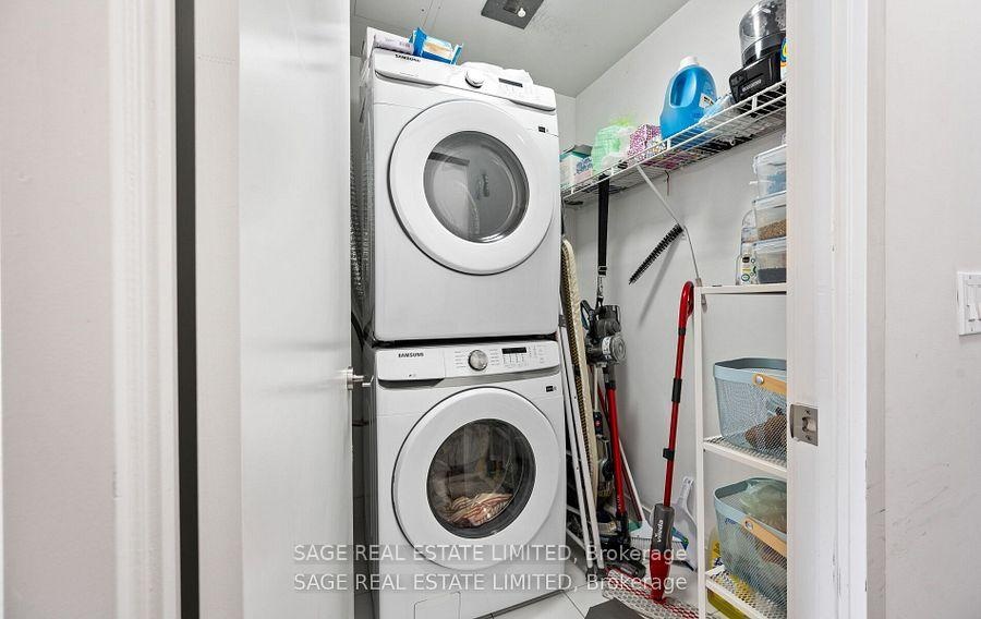 Experience modern urban living at The Carlaw in the heart of vibrant Leslieville! This stunning 2-bedroom, 1-bath suite by Streetcar Developments combines contemporary design with everyday functionality across 627 sq. ft. of well-planned space. Boasting 9-ft exposed concrete ceilings and floor-to-ceiling windows, the unit is flooded with natural light and showcases captivating city skyline views. The sleek, open-concept kitchen features stainless steel appliances, modern cabinetry, and upgraded flooring throughout, creating a sophisticated, move-in-ready vibe. The versatile second bedroom with sliding glass doors is perfect for guests or a home office, while the spacious laundry room provides rare in-suite storage convenience. Additional perks include a storage locker across the hall and optional monthly parking on site. Residents enjoy access to premium amenities such as a rooftop terrace, fitness center, party and theatre rooms, guest suites, and even a 30% resident discount at the acclaimed Crows Theatre next door. Located steps from Queen Street's best cafés, restaurants, and boutiques, and just minutes from TTC and Pape Station, this is urban living redefined - stylish, smart, and connected.